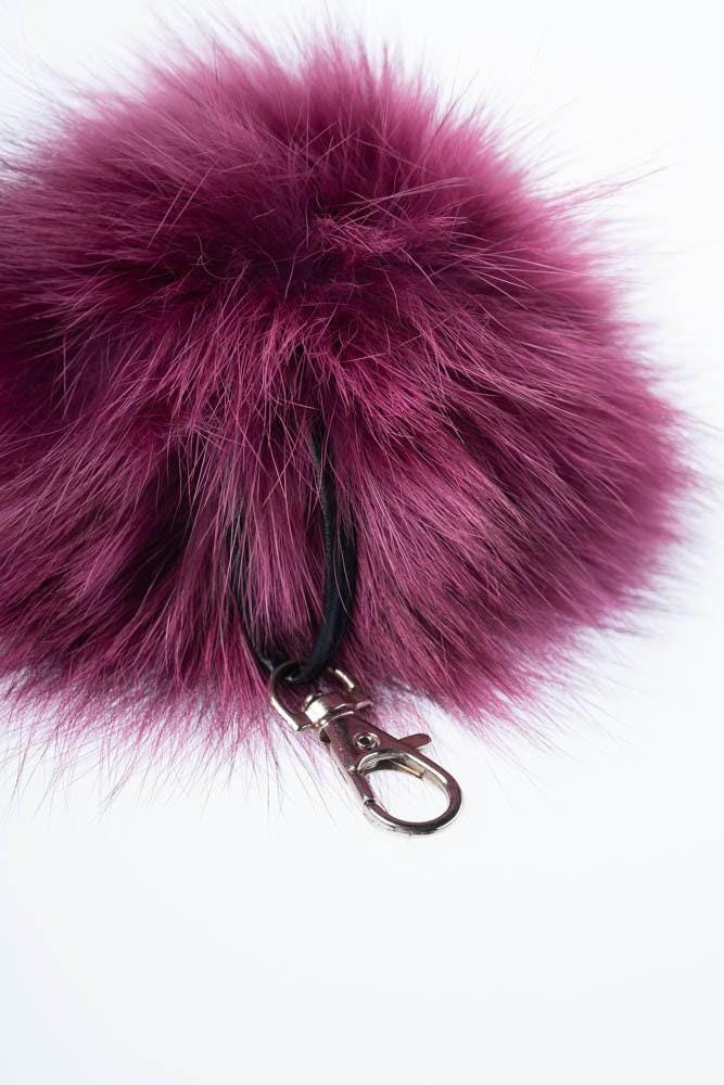 [1x Fuchsia Real Fox Fur Pom Pom Keychain]