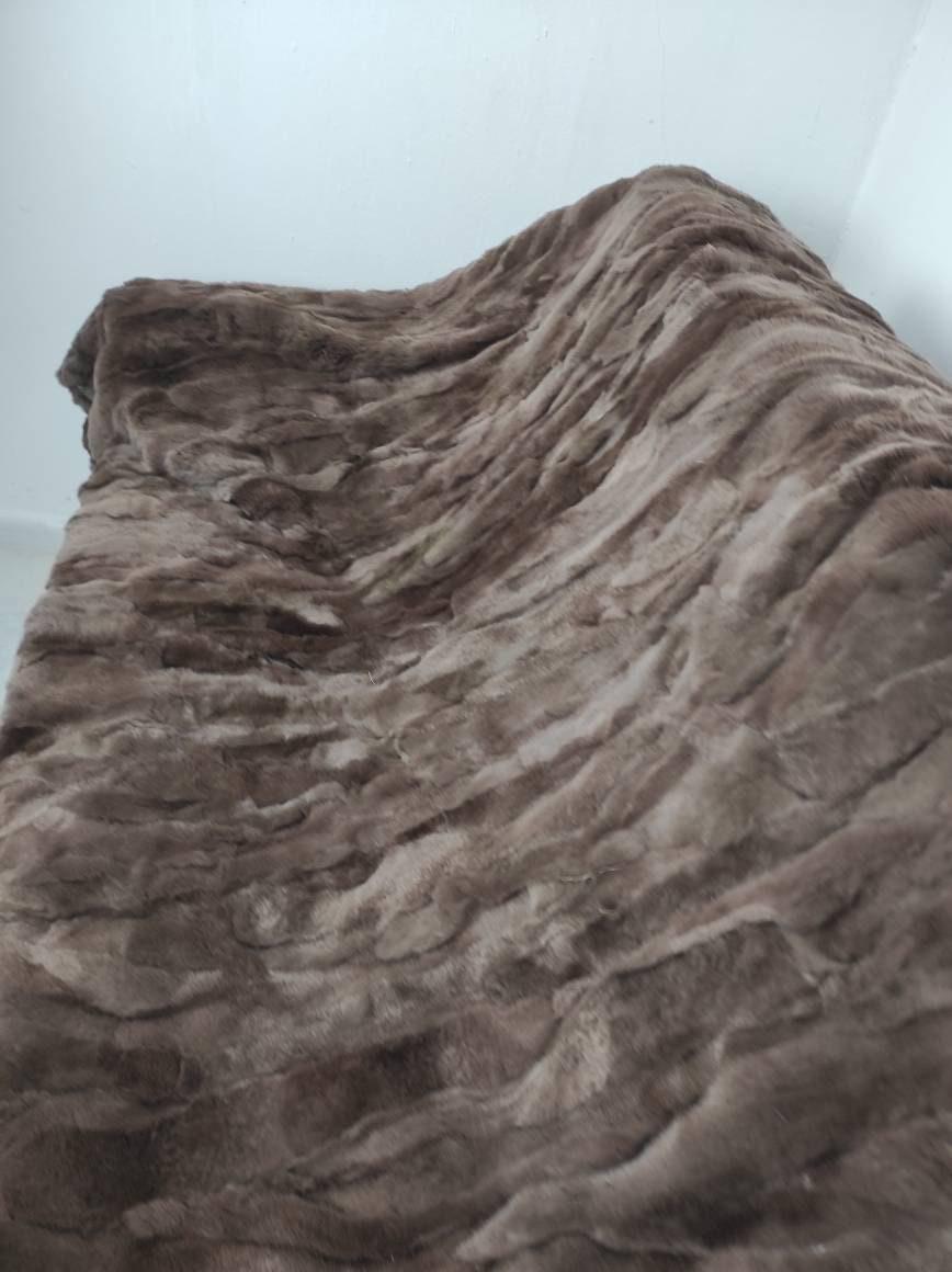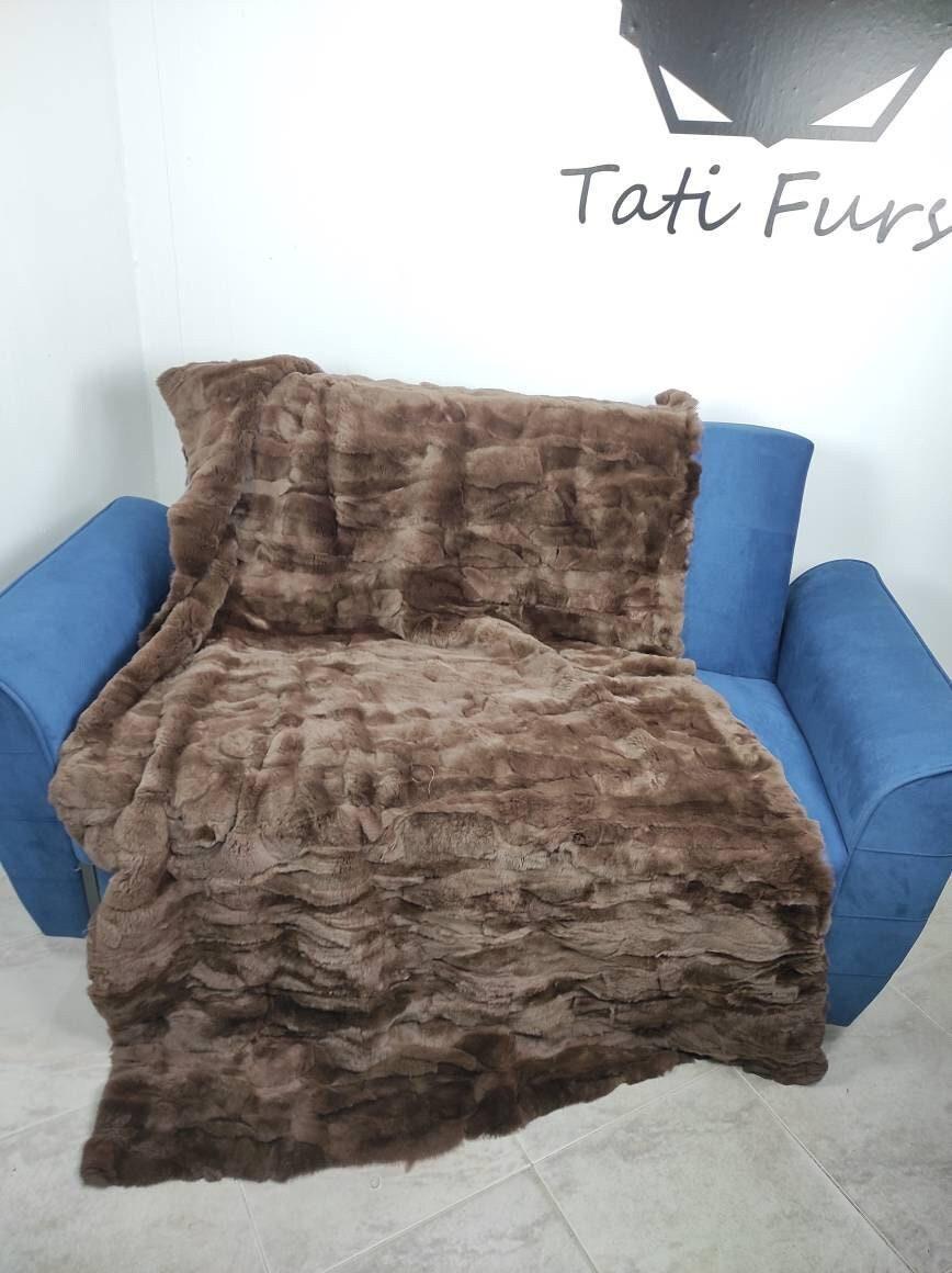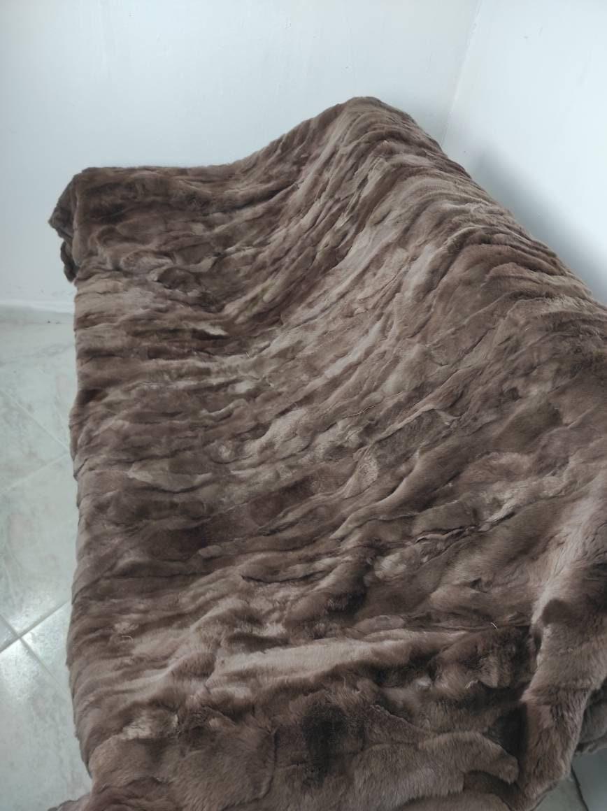 ● 1x Genuine Rex Rabbit Fur Blanket In Brown