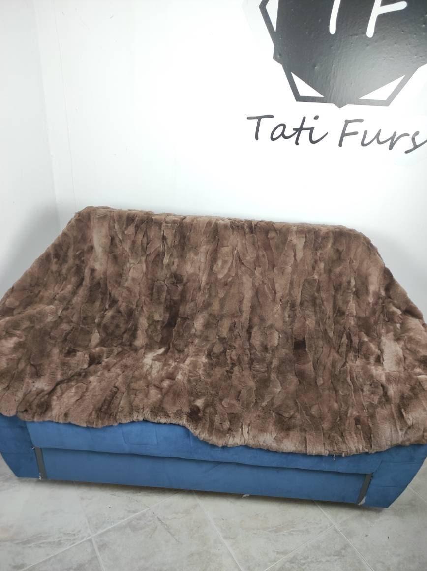 Create an opulent-looking space with our Genuine Rex Rabbit Fur Blanket In Brown .