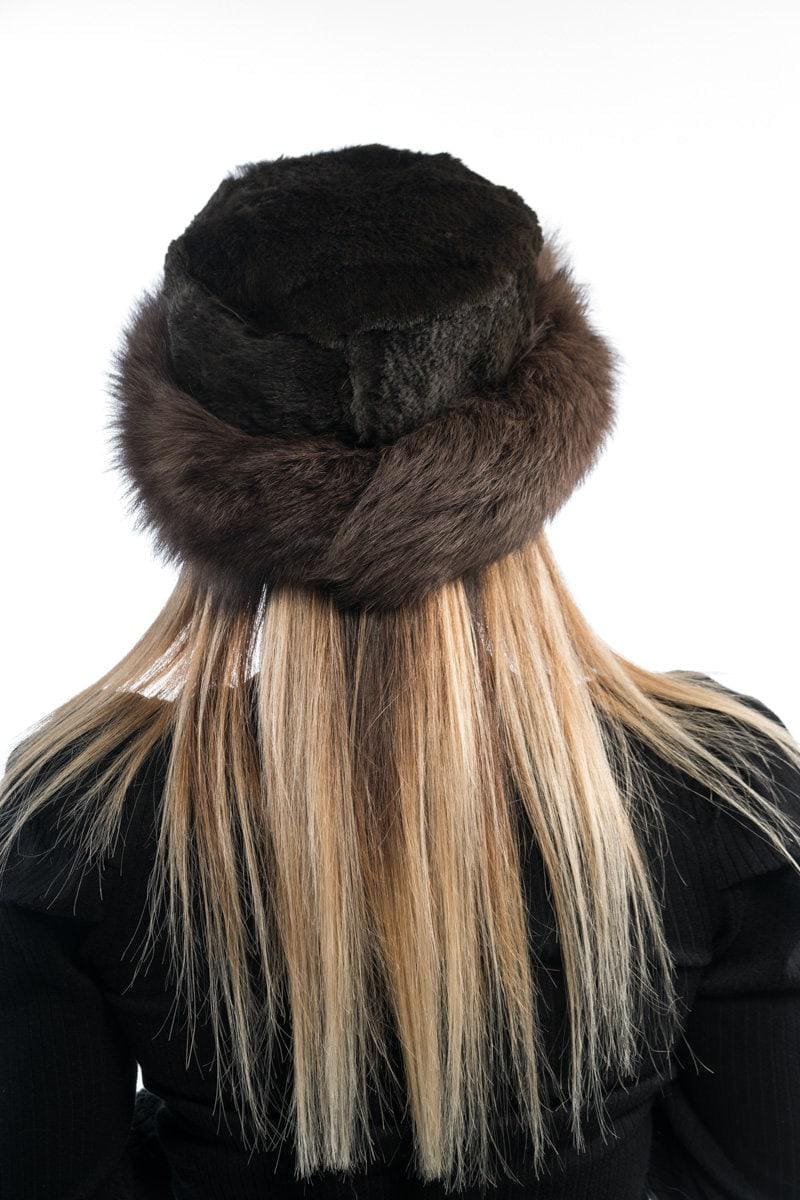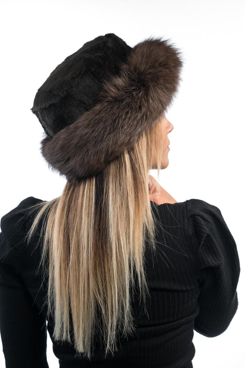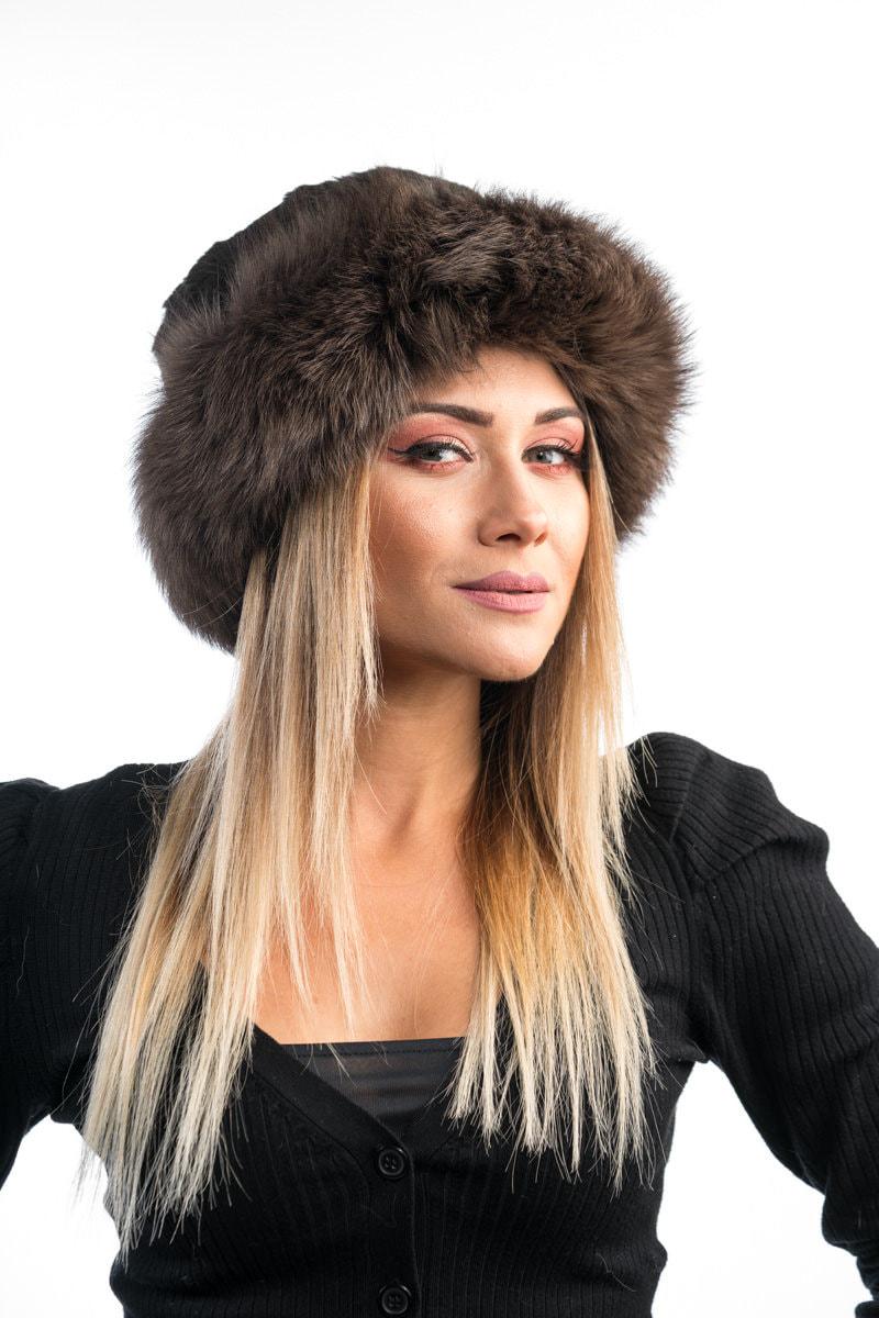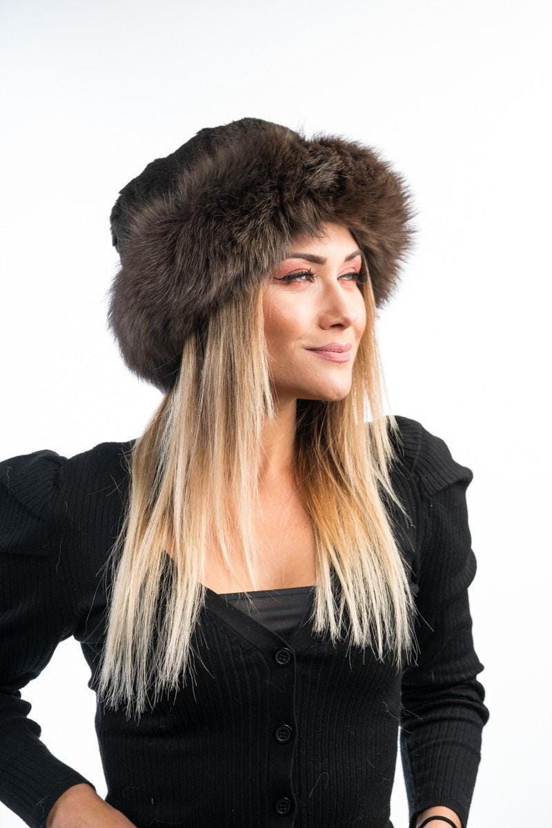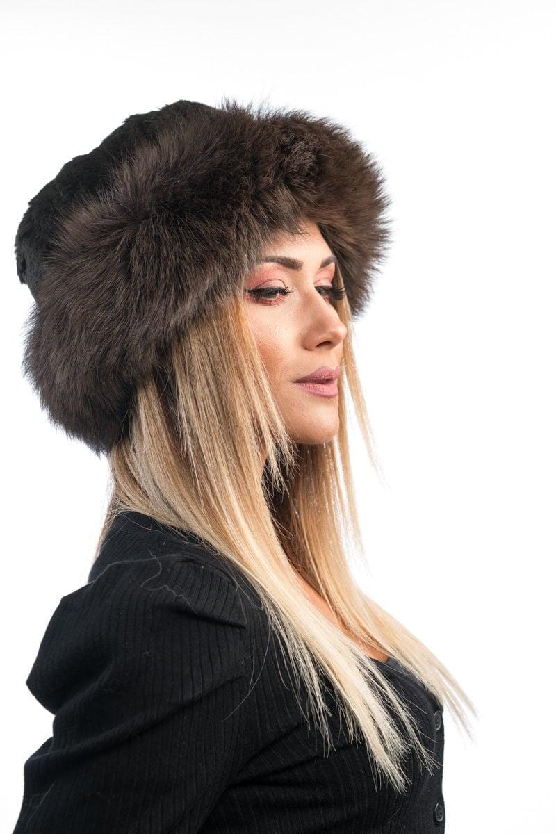 ● 1x Real Fox and Rabbit Fur Winter Hat in Brown