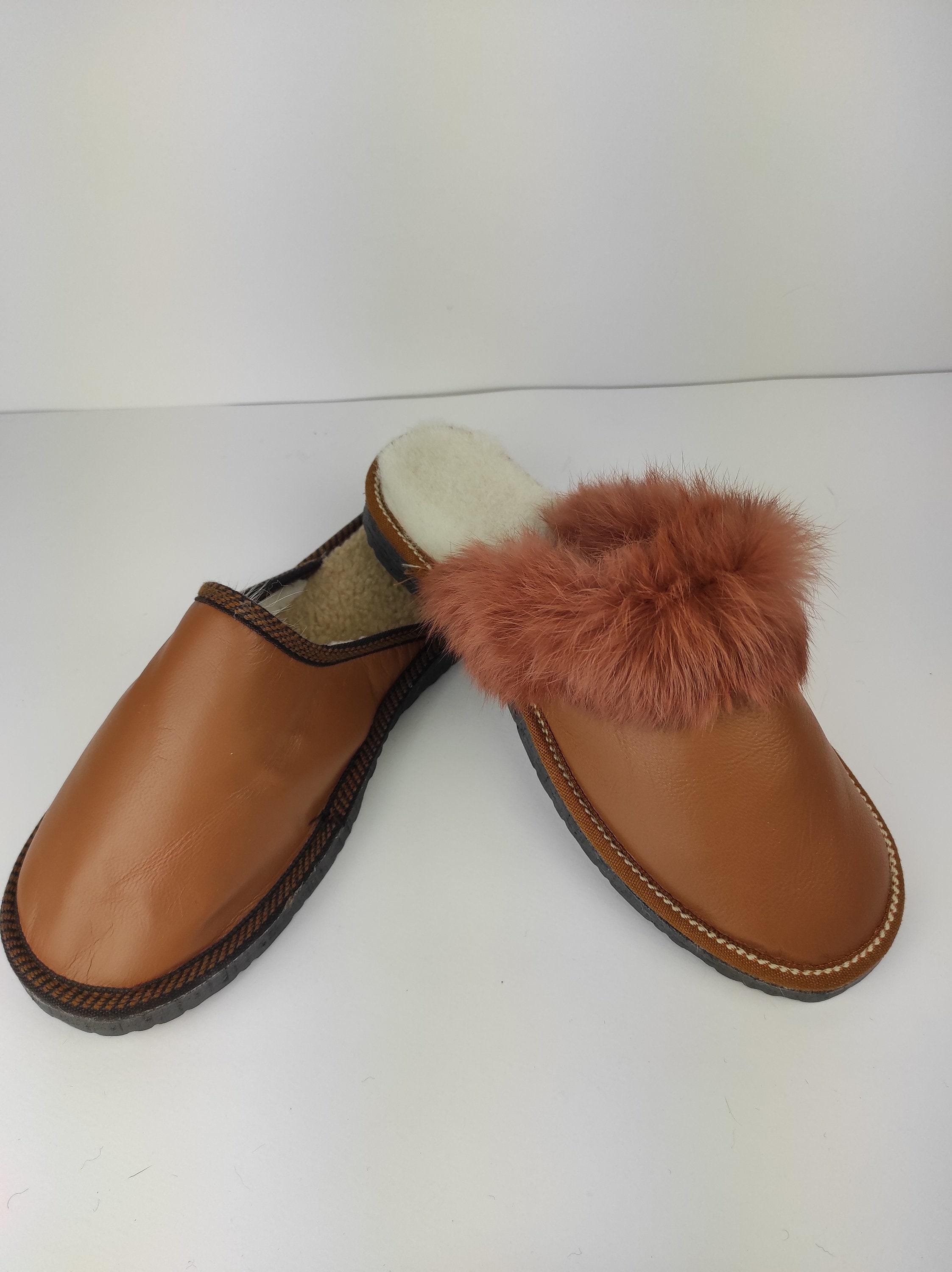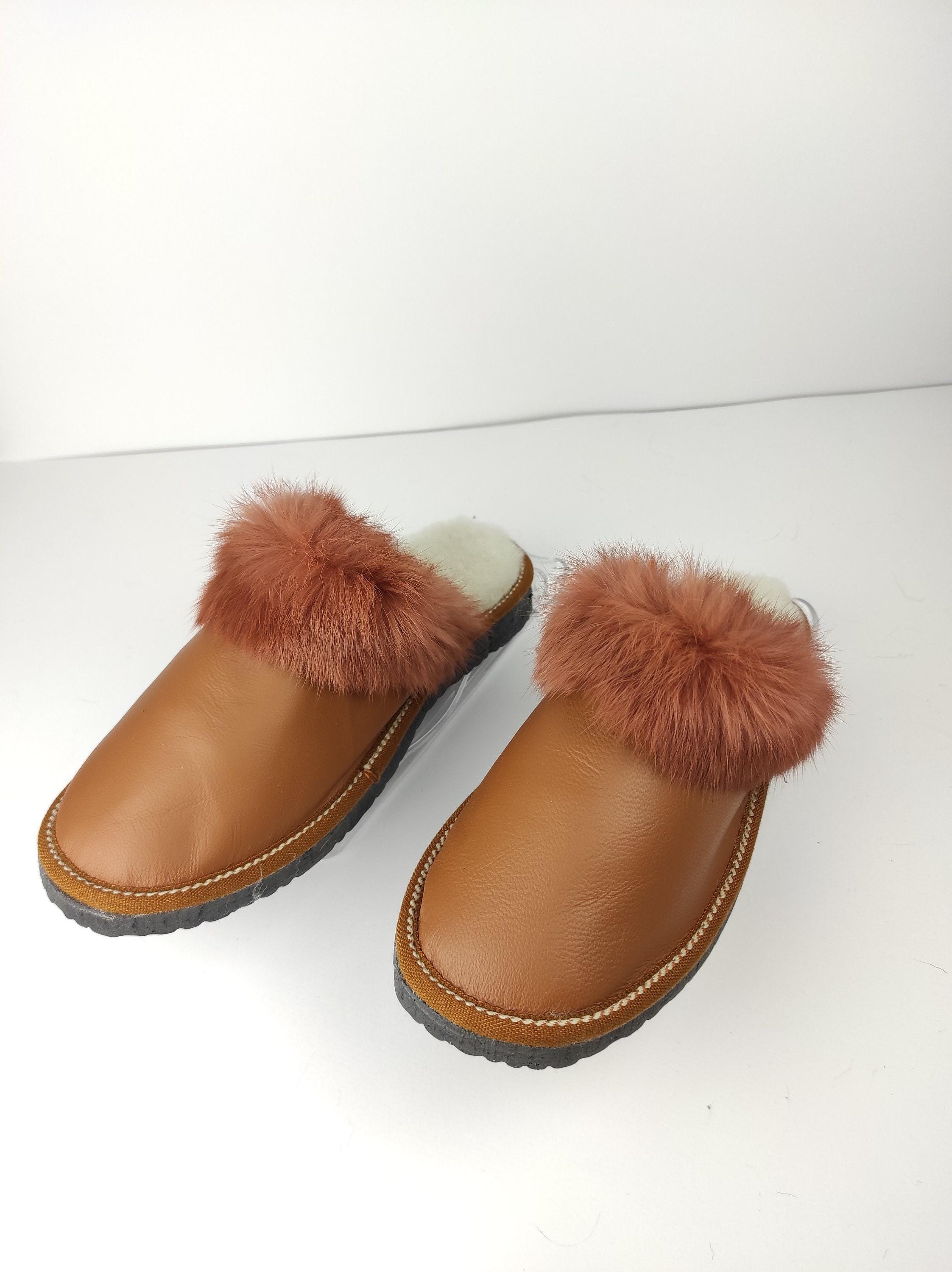 Brown fur sheepskin slippers for the fashionable cold-weather fit!