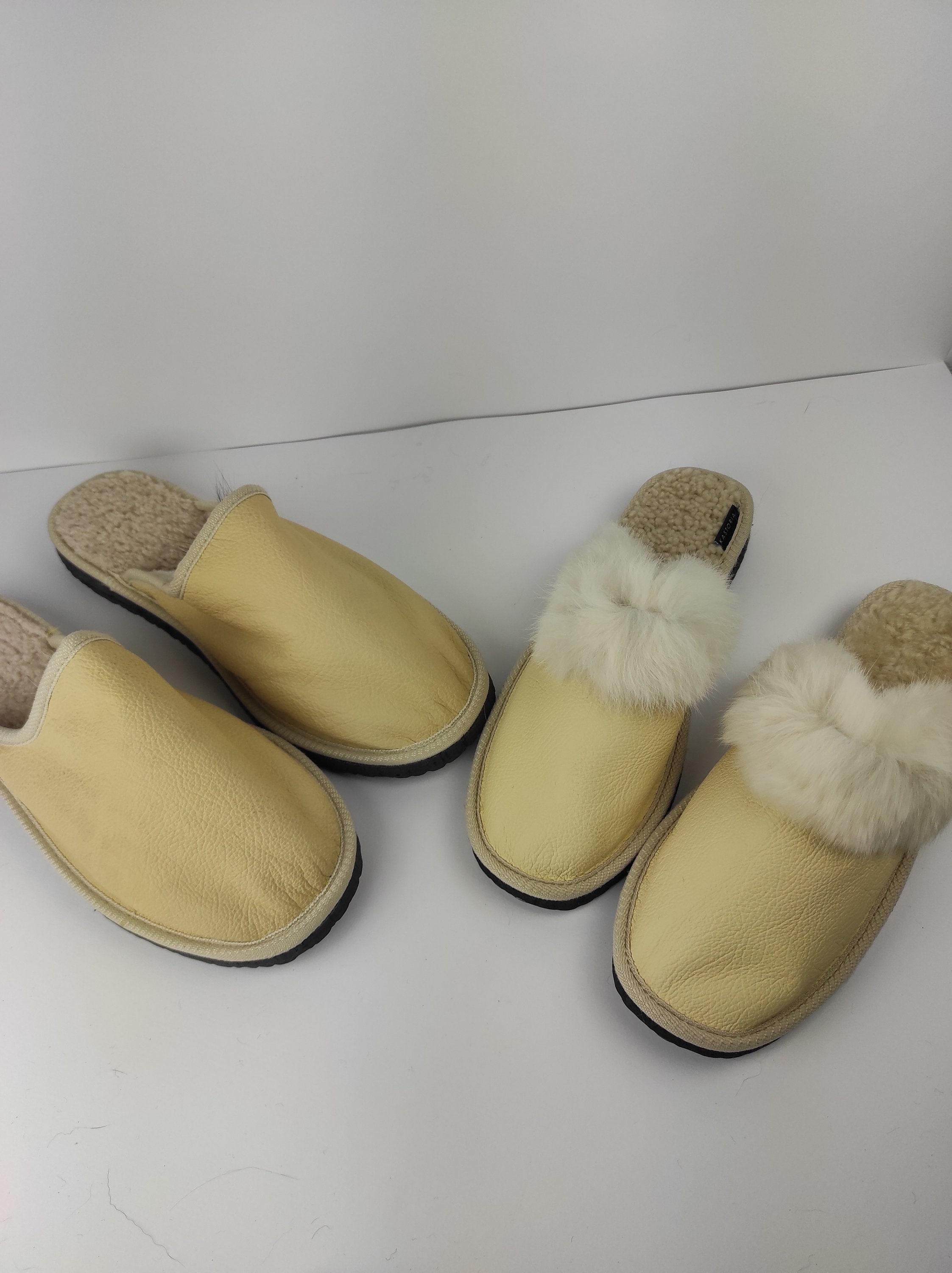 [2 Pairs of Real Fox Fur Beige Sheepskin Slippers]