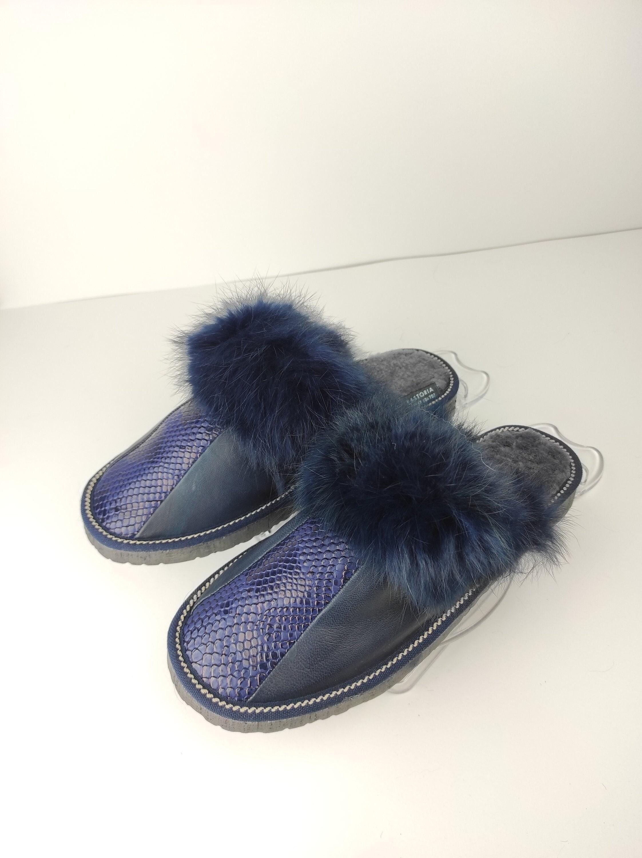 Blue fur sheepskin slippers for the fashionable cold-weather fit!