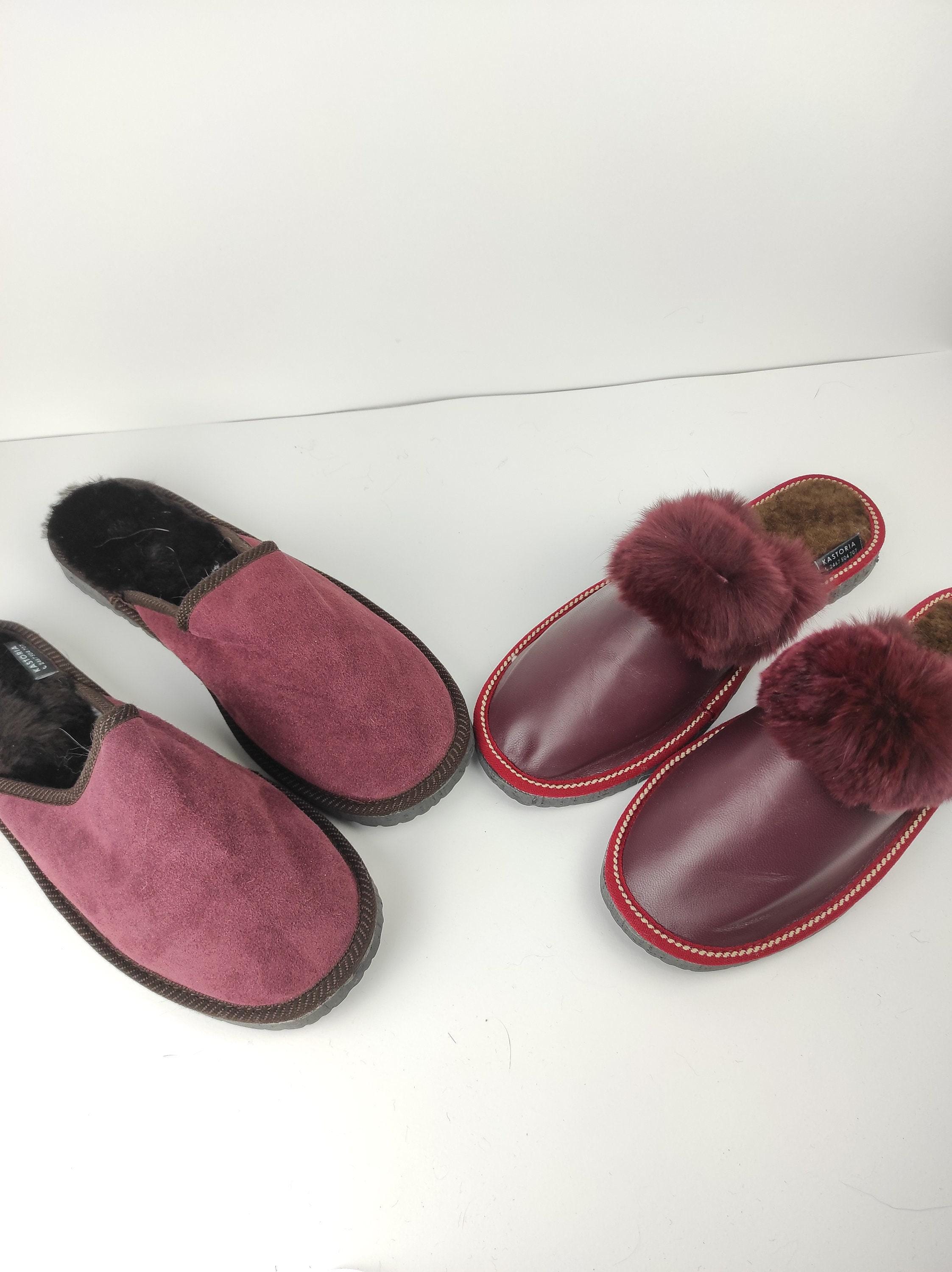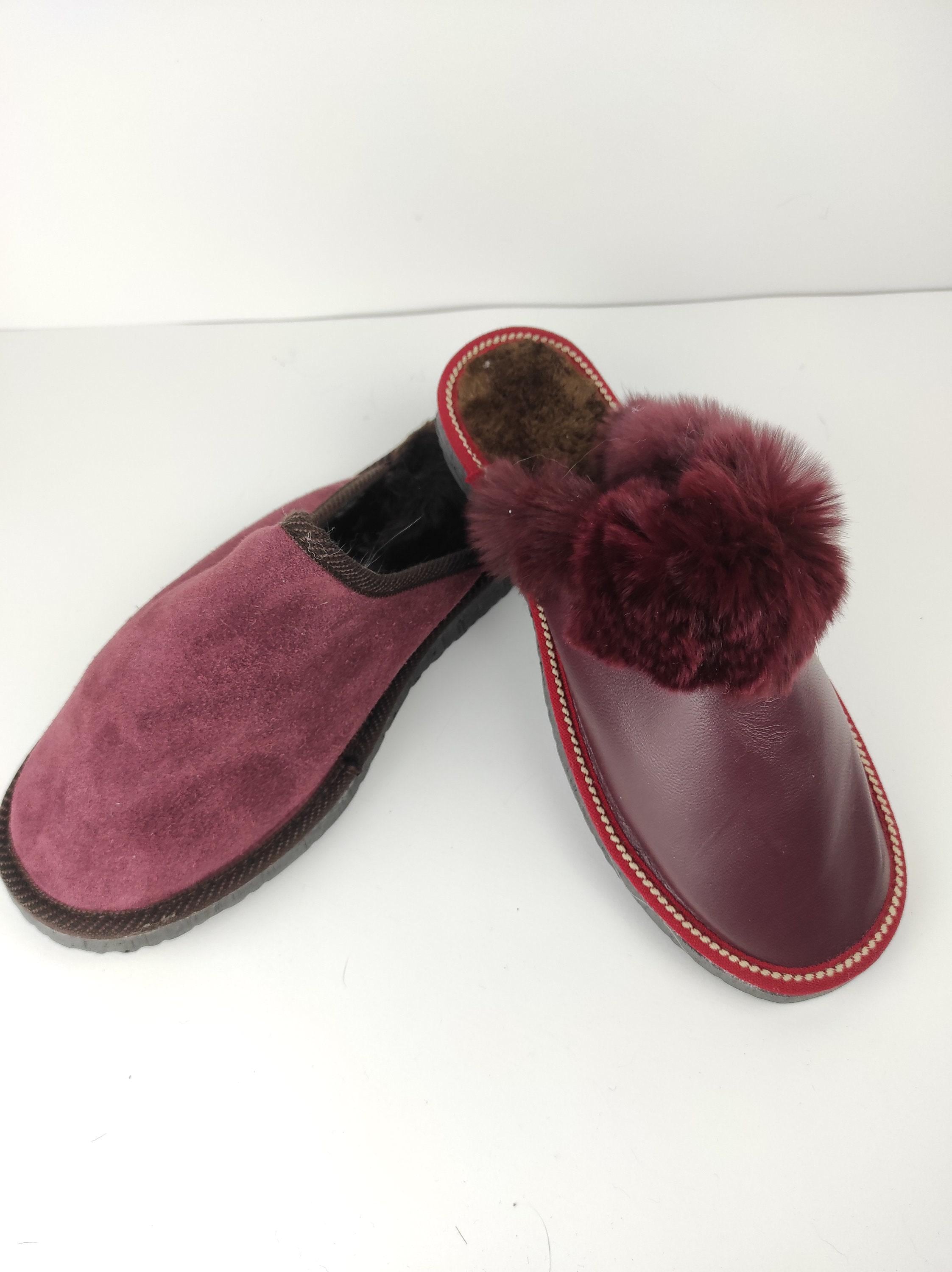 [2 Pairs of Real Fox Fur Bordeaux Sheepskin Slippers]
