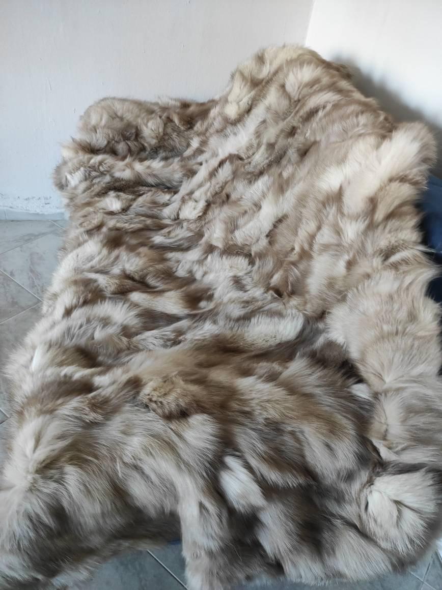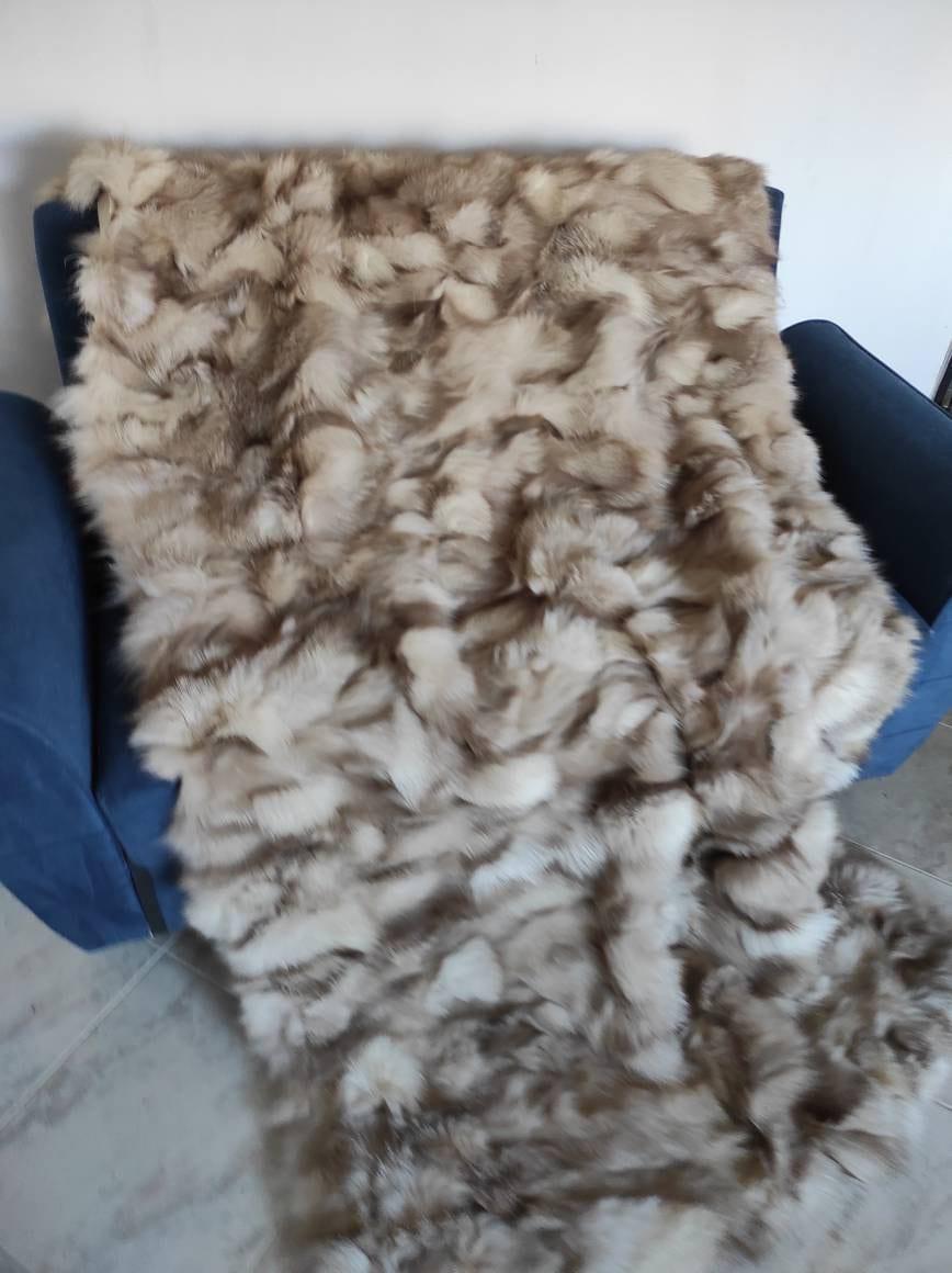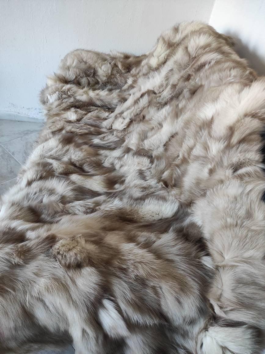 ● 1x Genuine Fox Fur Blanket In Natural Beige Colour