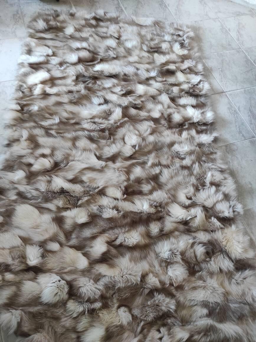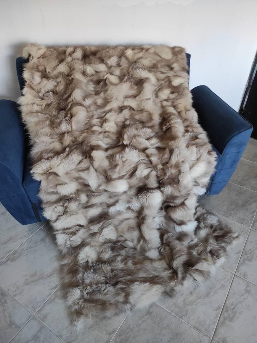 Handmade Real Fox Fur Blanket that can be used as a throw as well. Perfect for Bedspread or Sofa Cover.