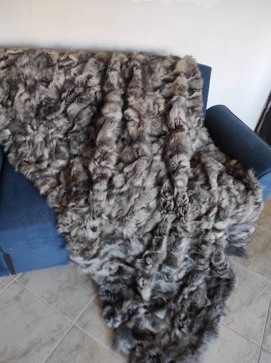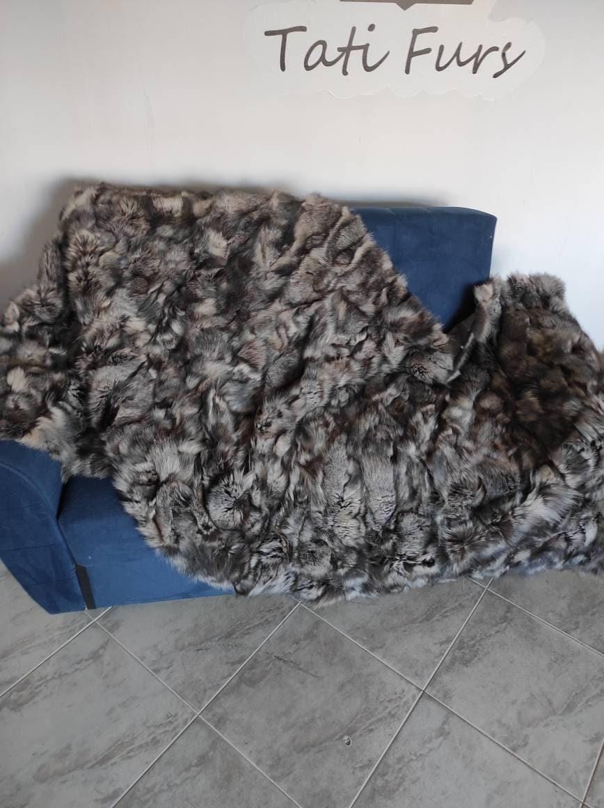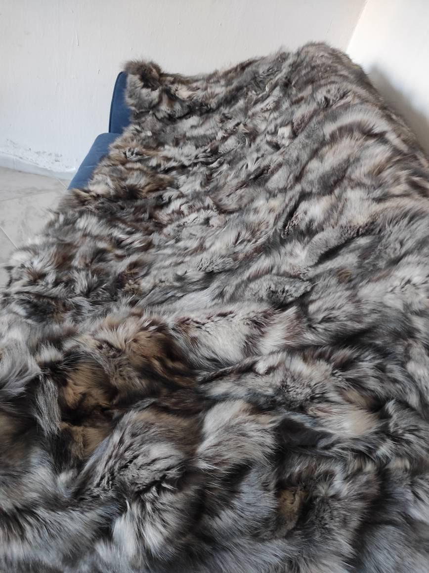 Lovingly crafted by hand, this silver real fox fur blanket throw was created with chilly days in mind.