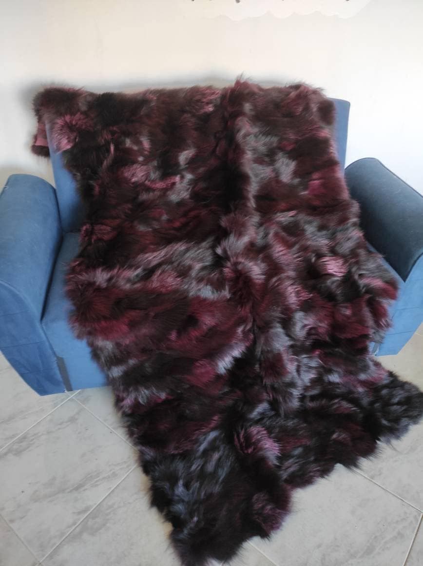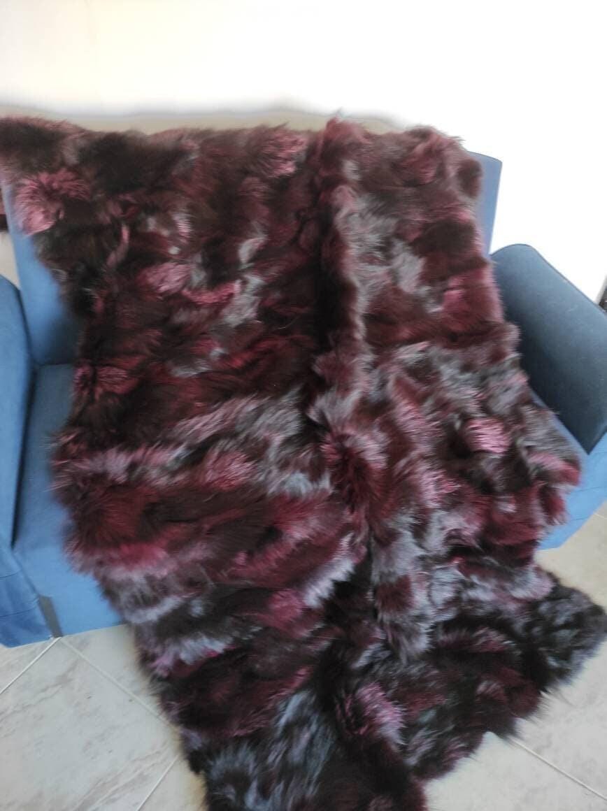 ● 1x Genuine Fox Fur Blanket In Dyed Colour