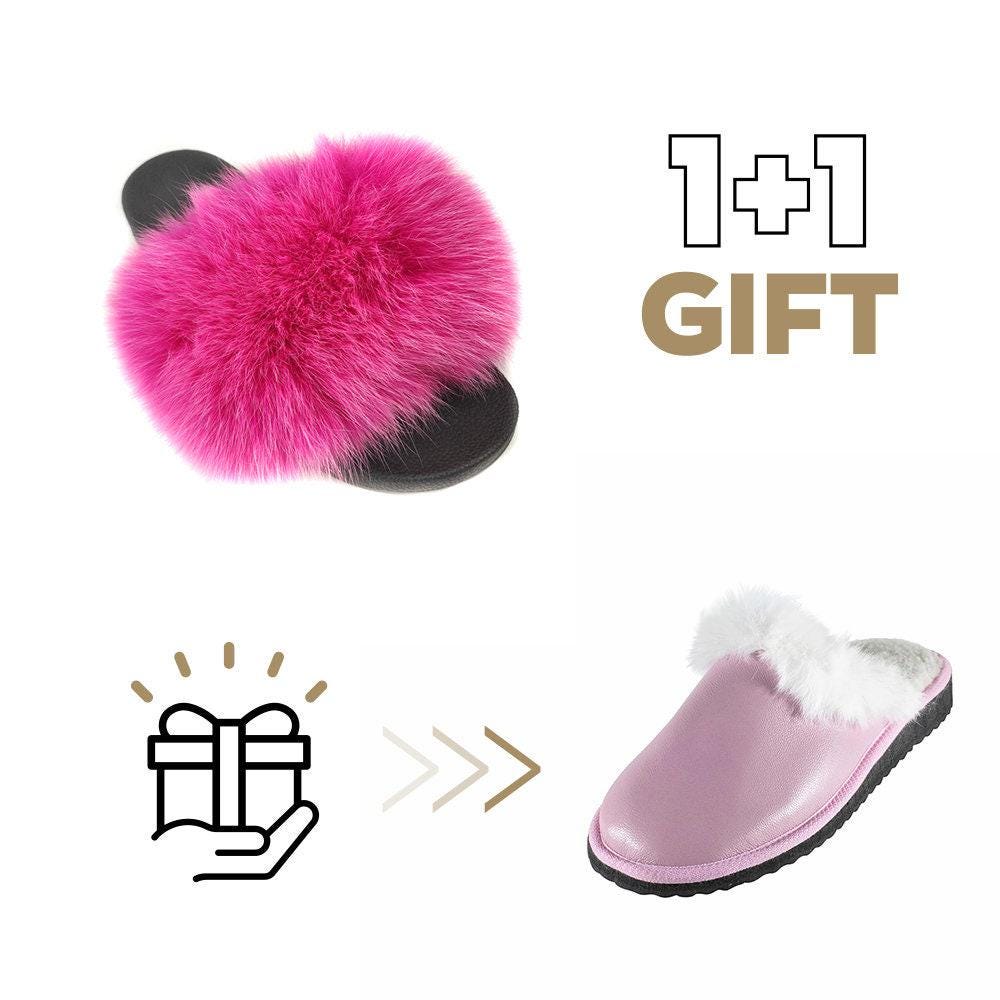 Buy one fur slide set and get one fur slipper set for free as a gift of the same color.