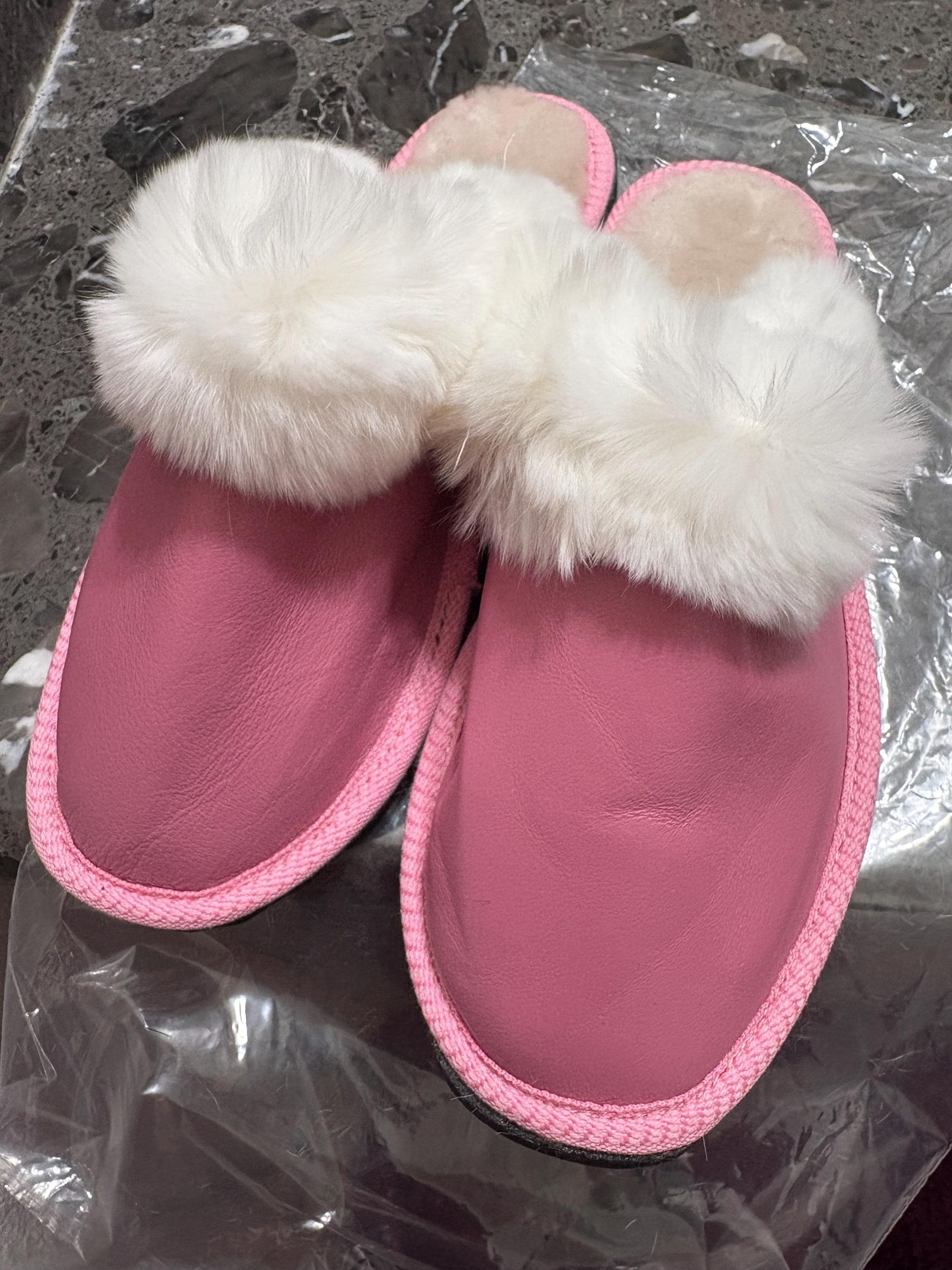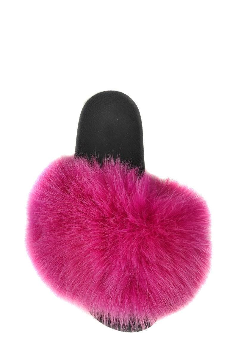 These super soft fur slides are made of real fox fur! It is in the color Pink . We dyed the fur and