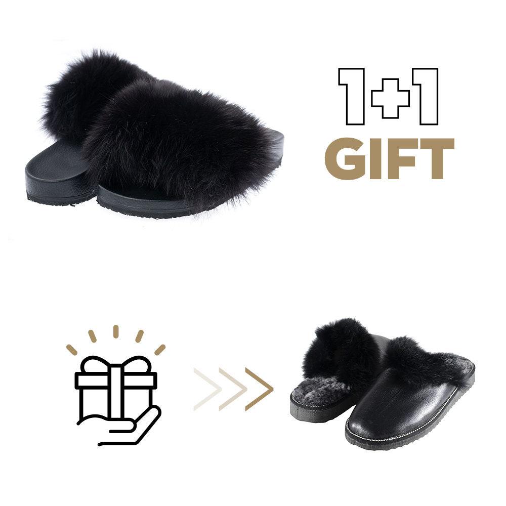 Buy one fur slide set and get one fur slipper set for free as a gift of the same color.
