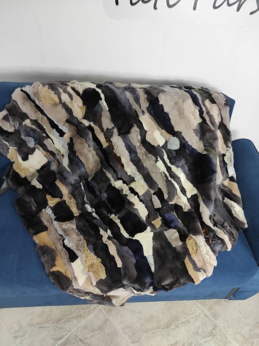 ● 1x Genuine Rex Rabbit Fur Blanket In Multi Colour