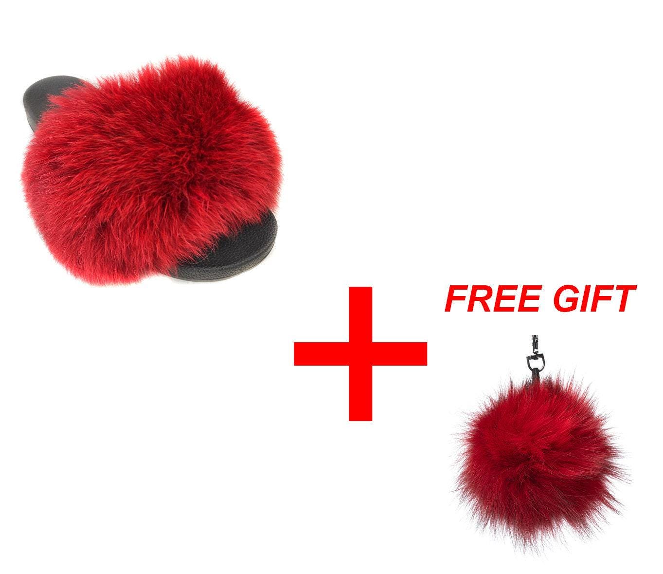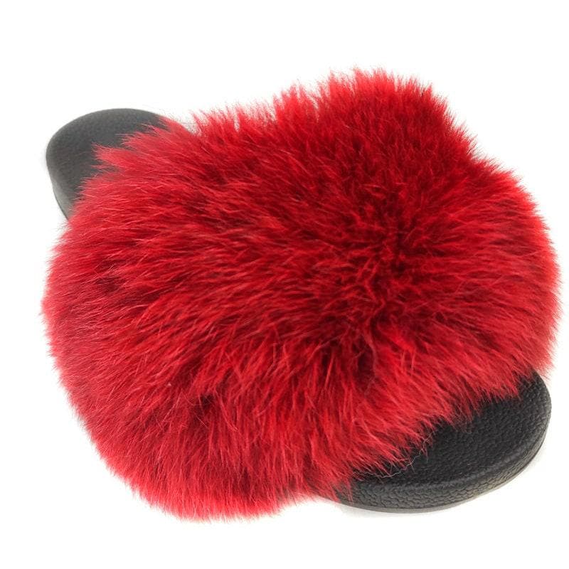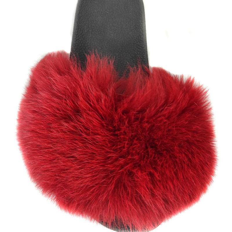 Our elegant Red Original Fox Fur Fuzzy Slides makes the perfect gift for the wife, the mom,