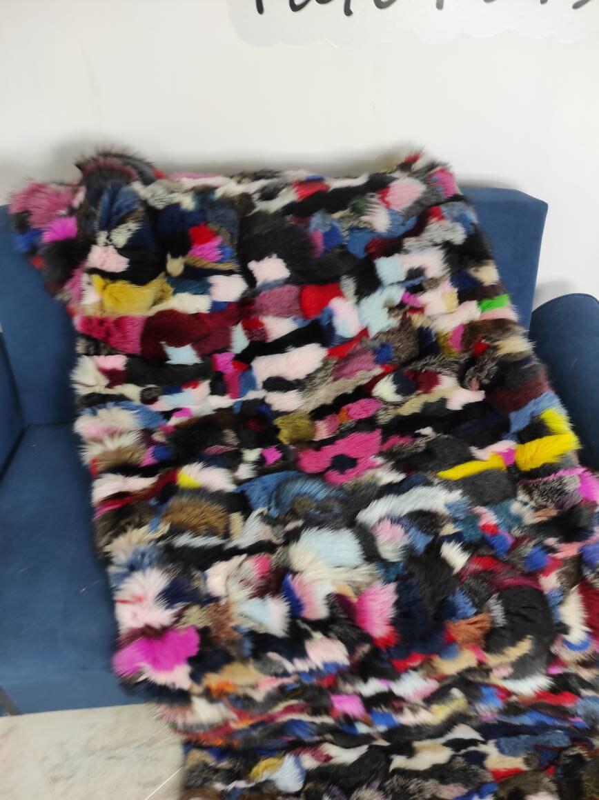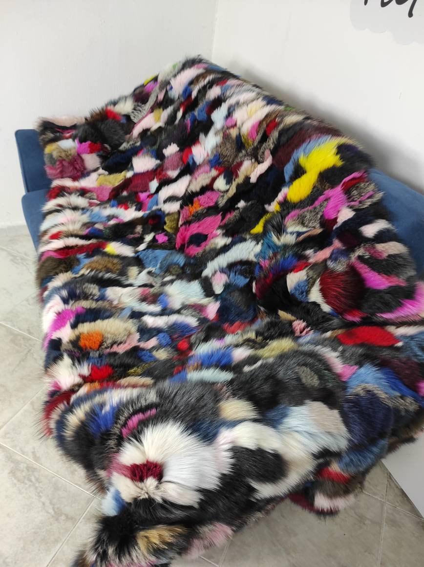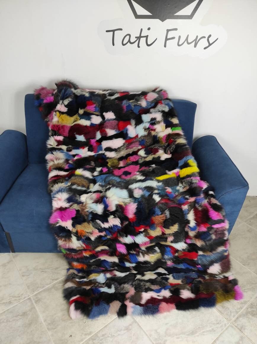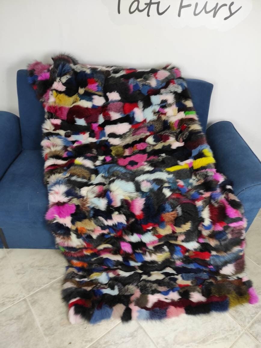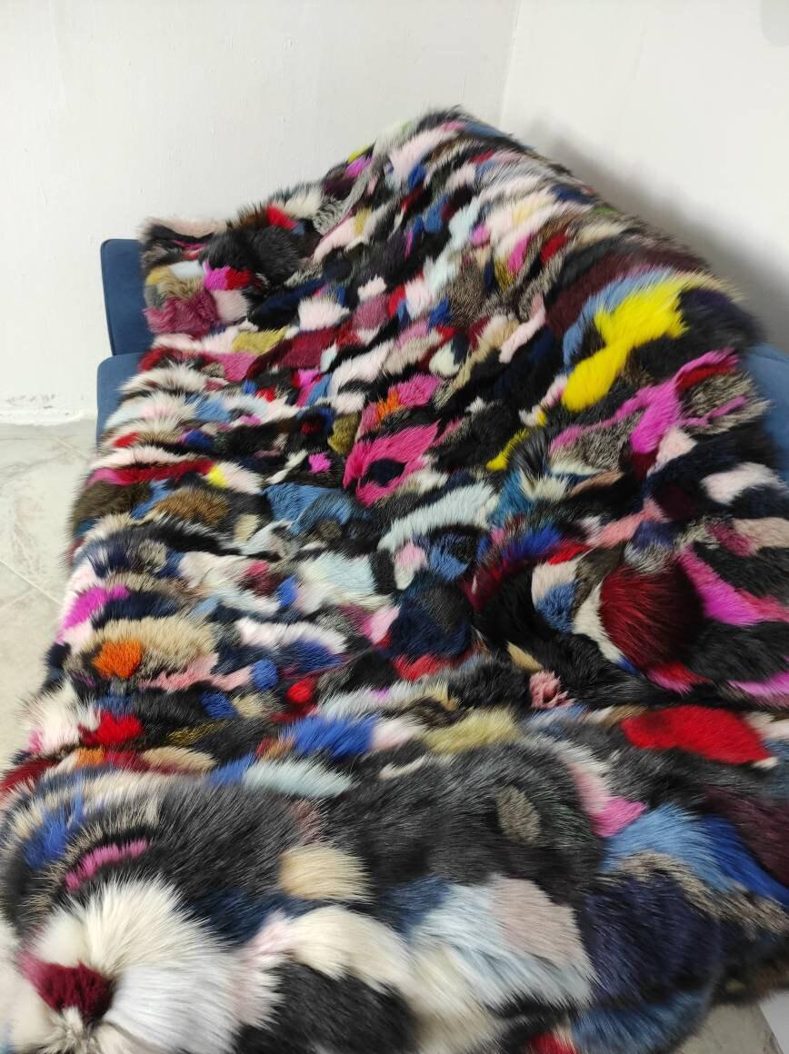 ● 1x Genuine Fox Fur Blanket In Multicolor