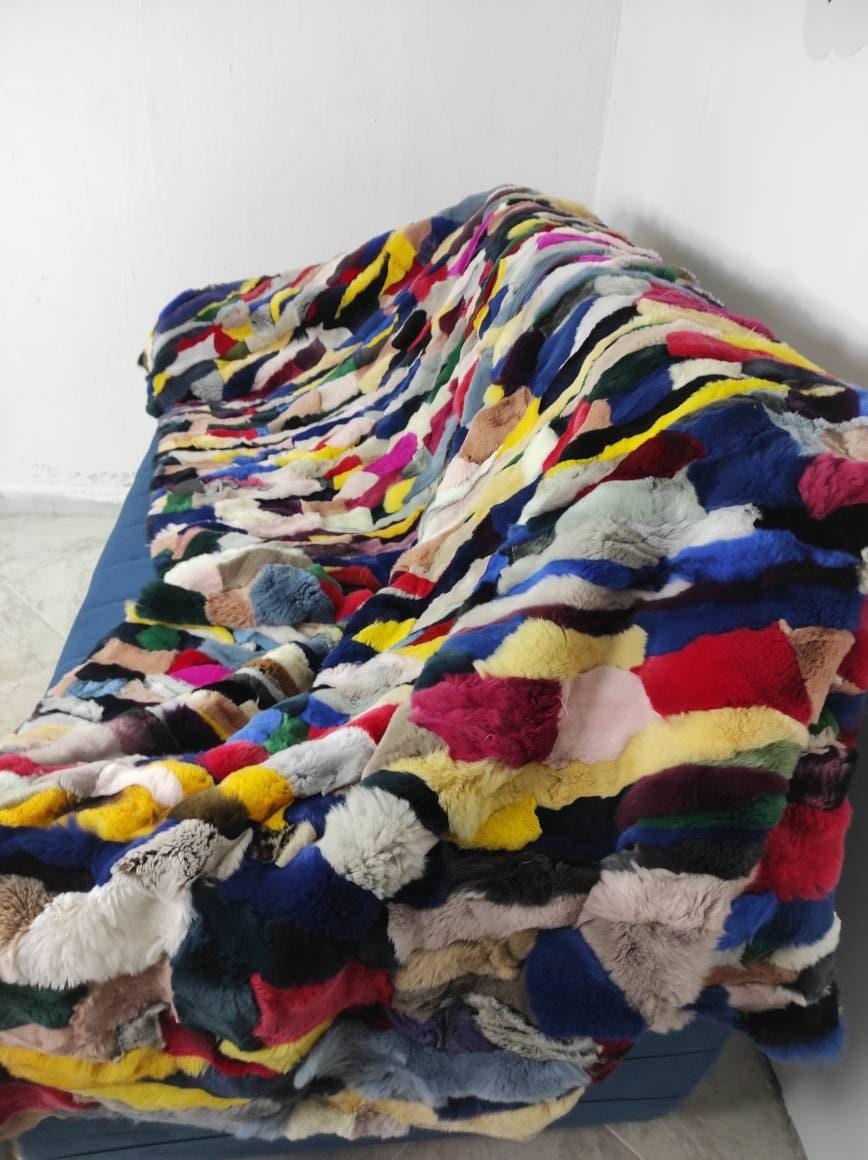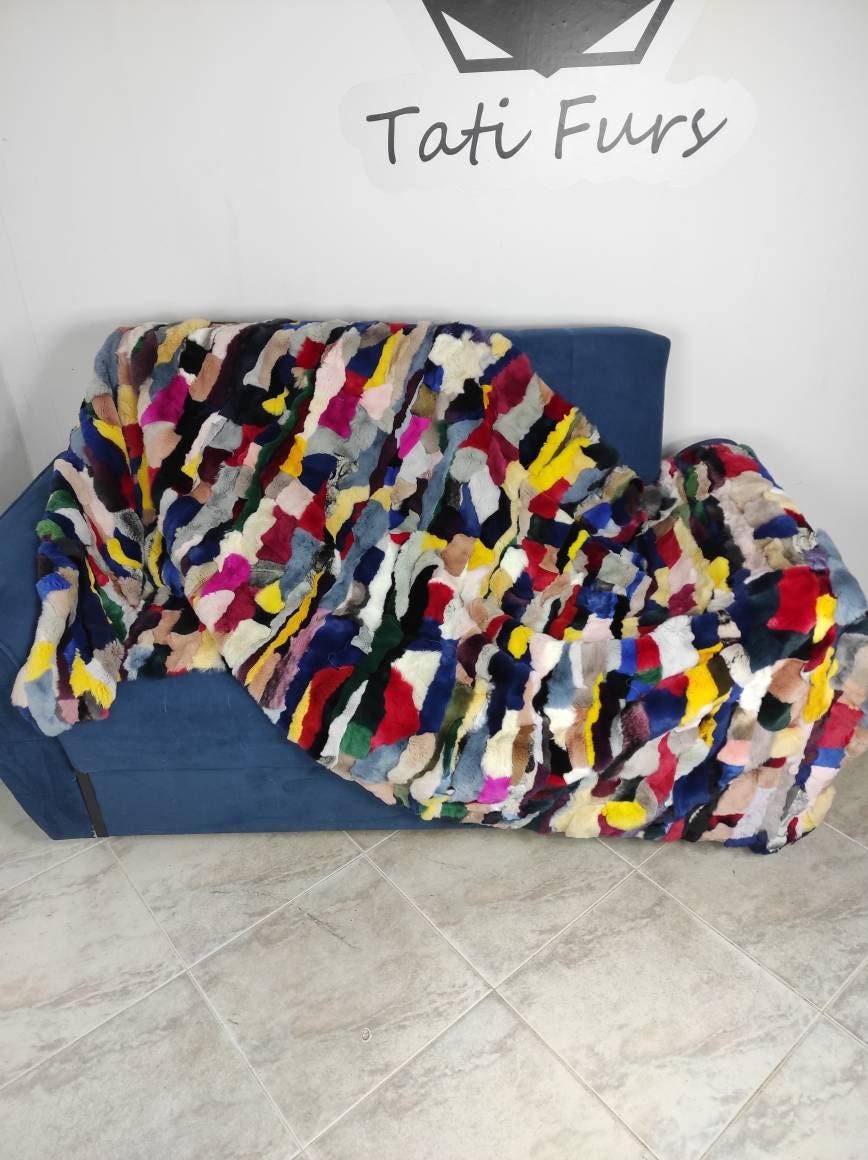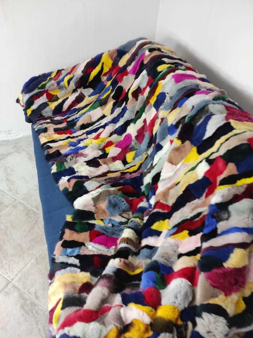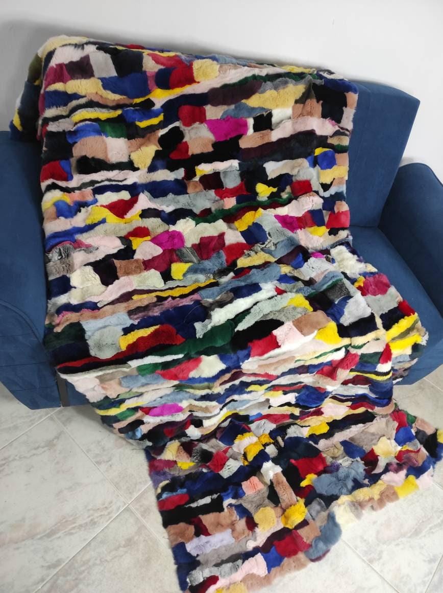 Real Colorful Rex Rabbit Fur Blanket Throw • Personalized Housewarming Gift Sofa Cover n Bedspread • Handmade Genuine Fur