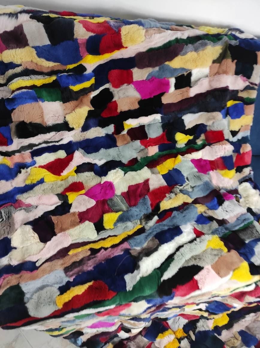 Create an opulent-looking space with our Genuine Rex Rabbit Fur Blanket In Multi Colour.