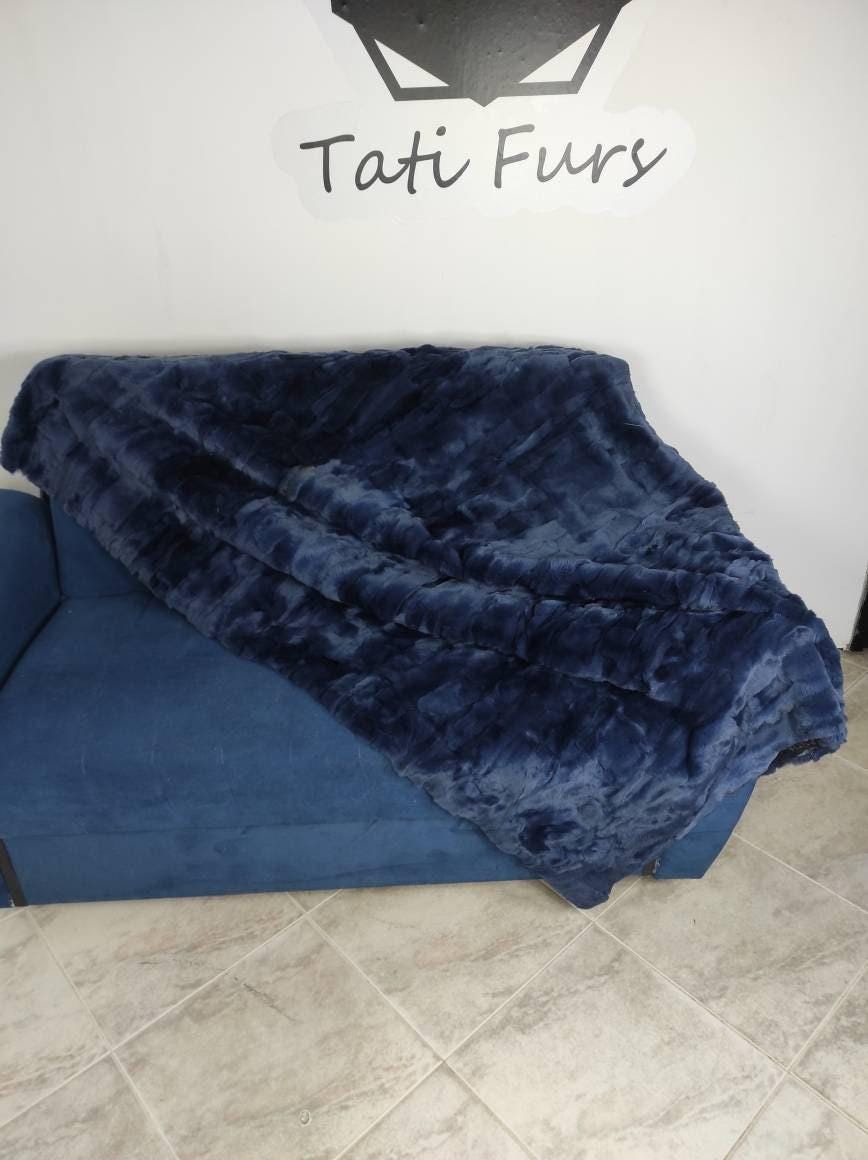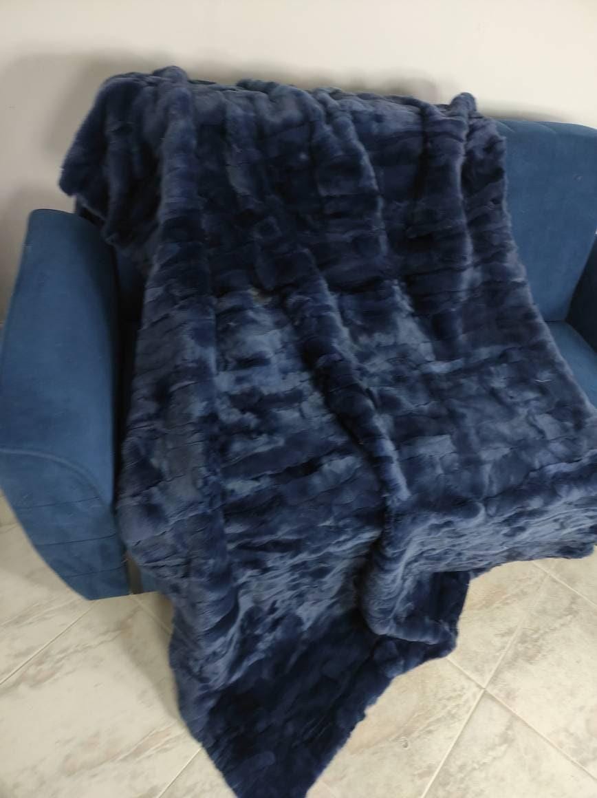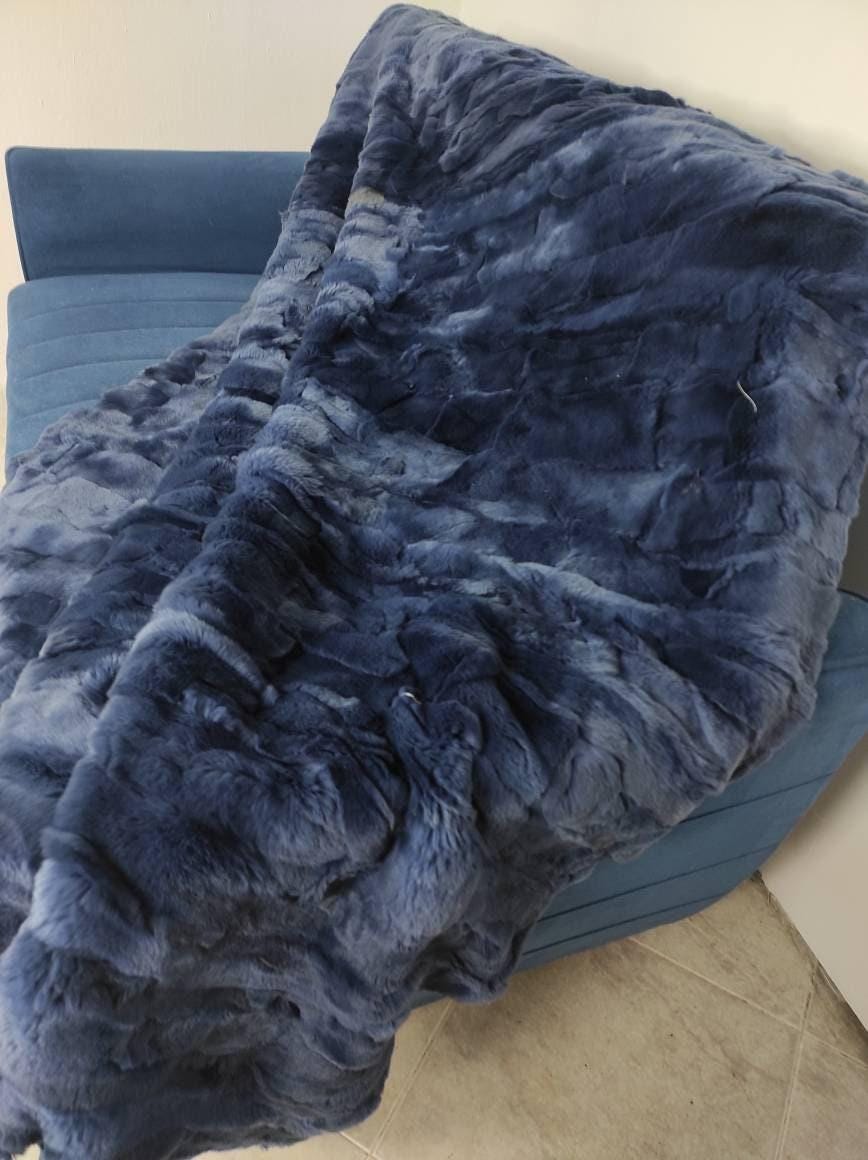 ● 1x Genuine Rex Rabbit Fur Blanket In Blue Colour