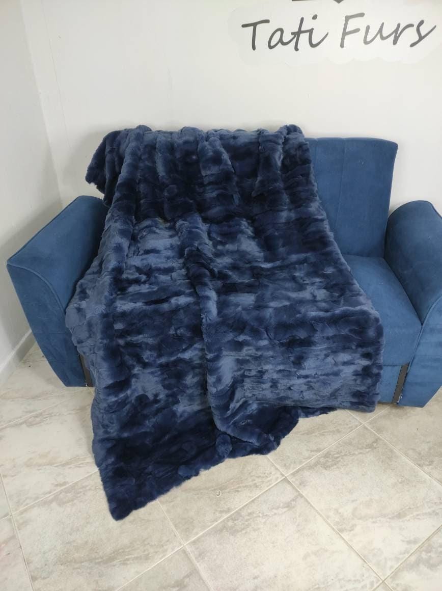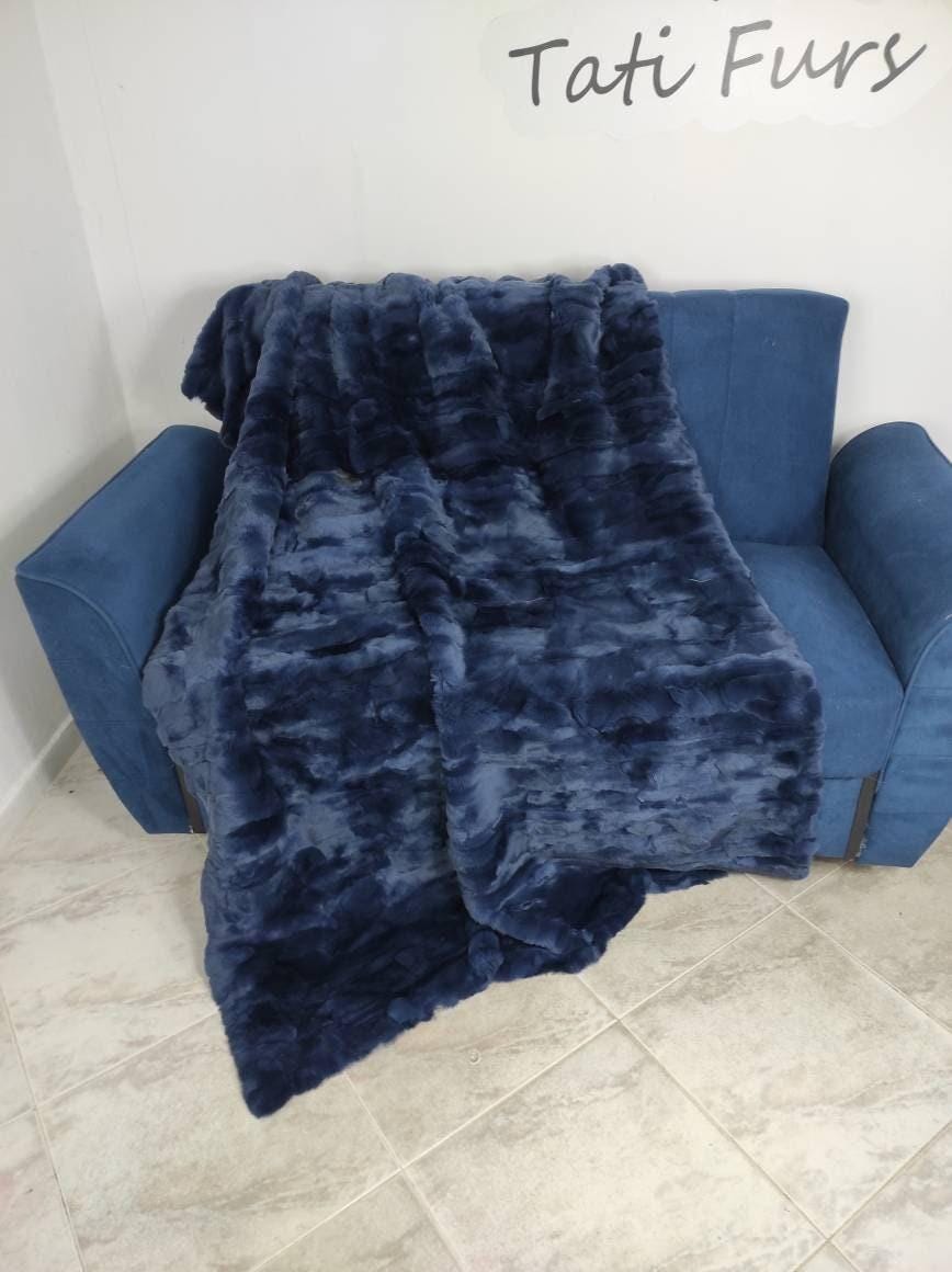Create an opulent-looking space with our Genuine Rex Rabbit Fur Blanket In Blue Colour.