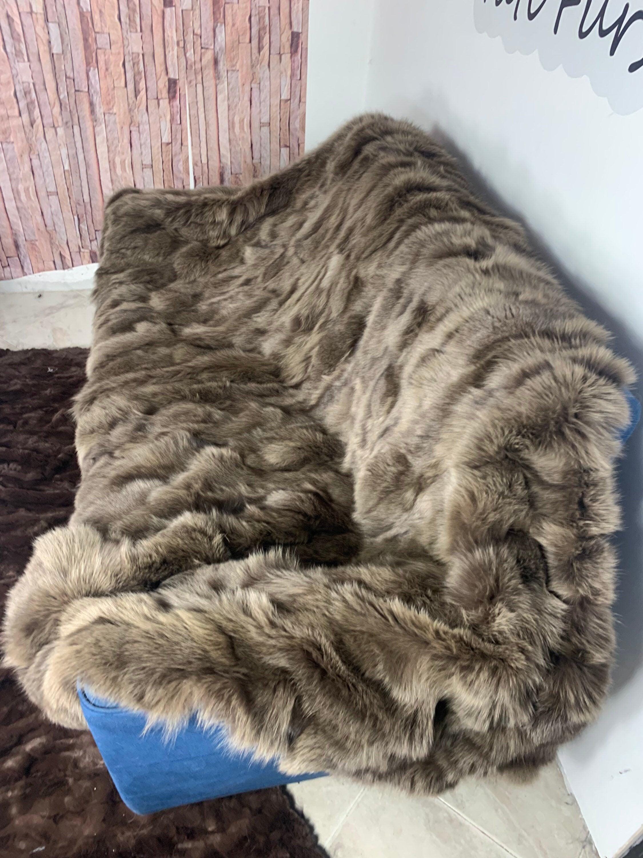 ● 1x Genuine Fox Fur Blanket In Brown Colour