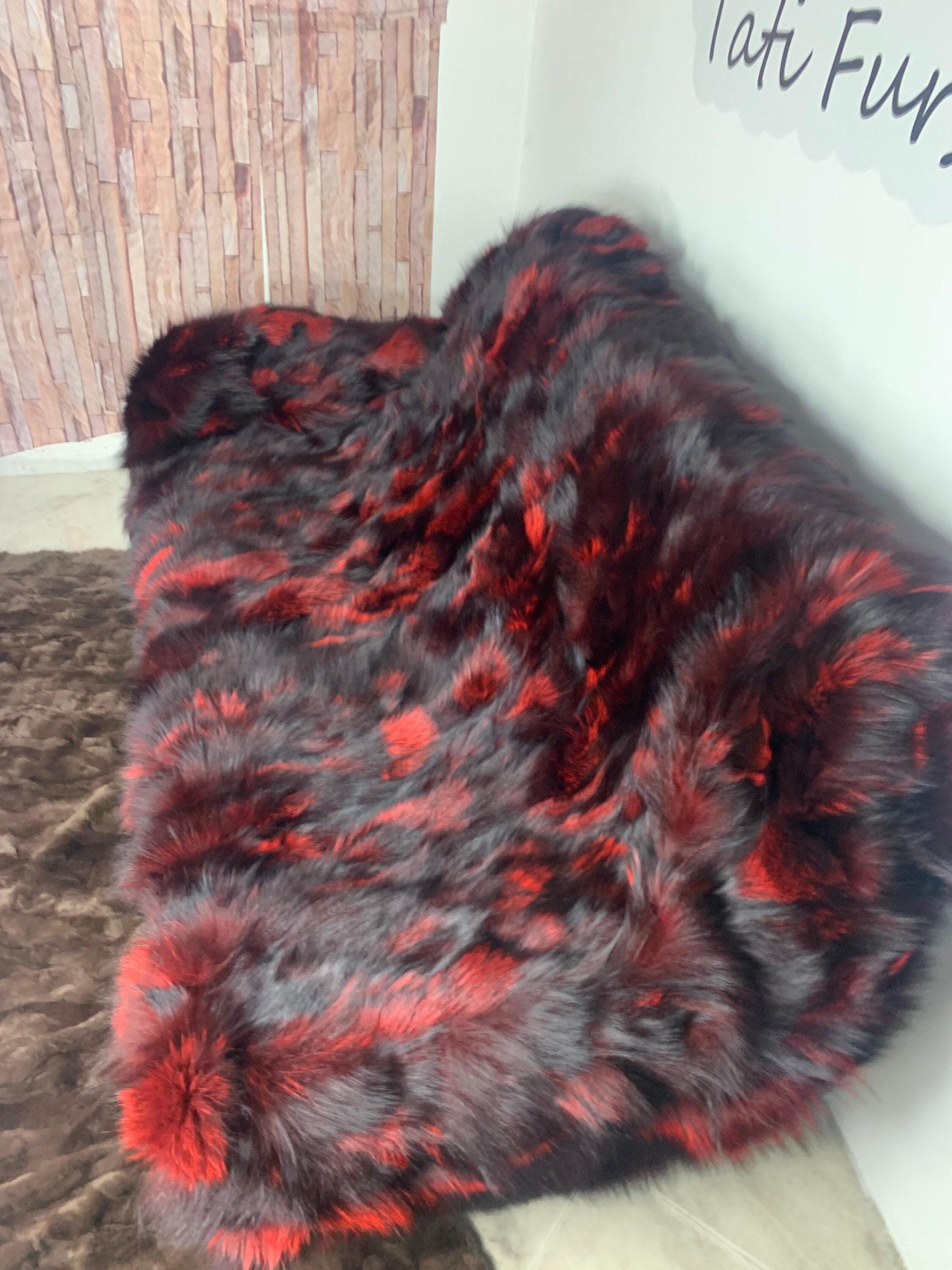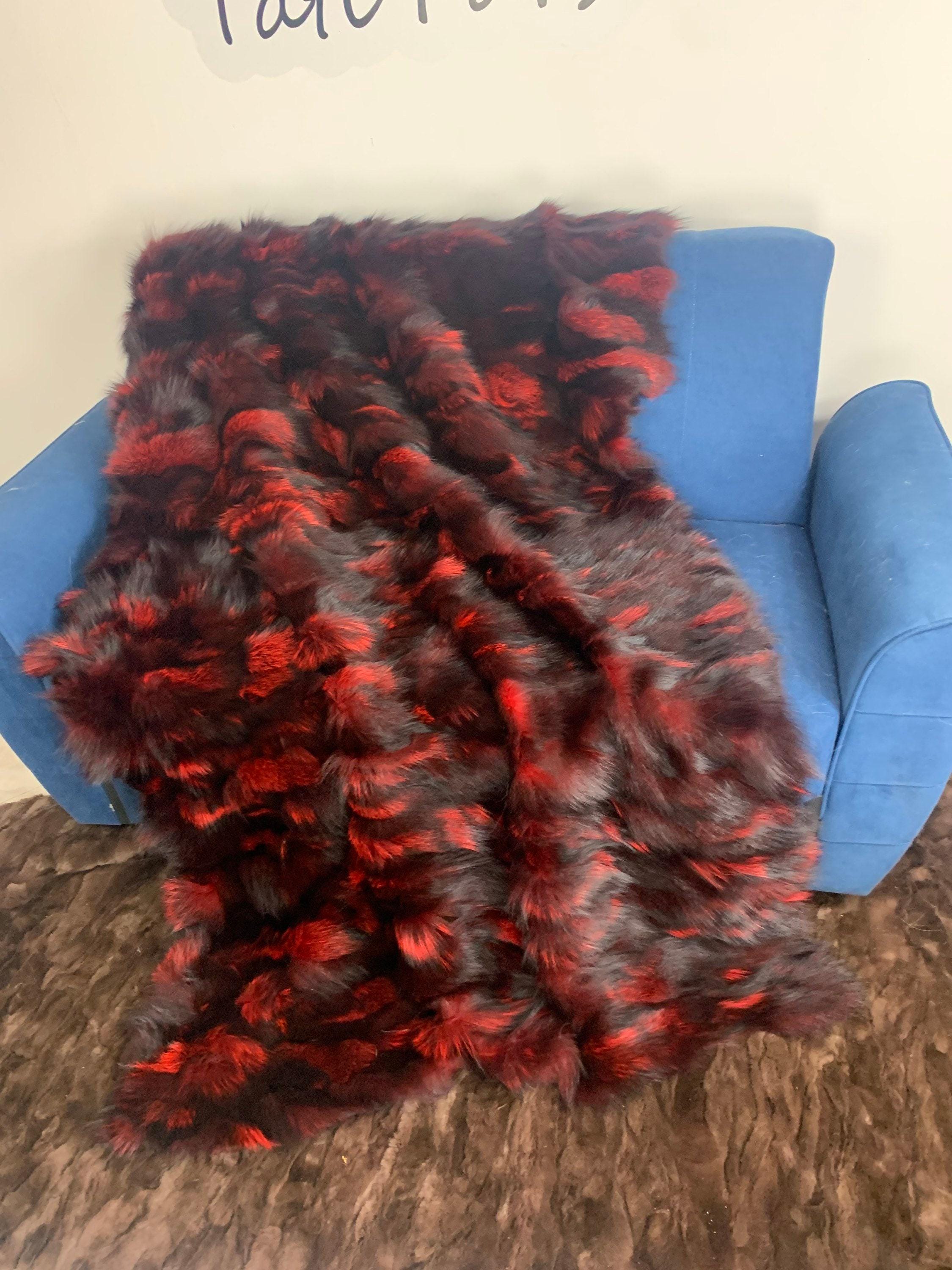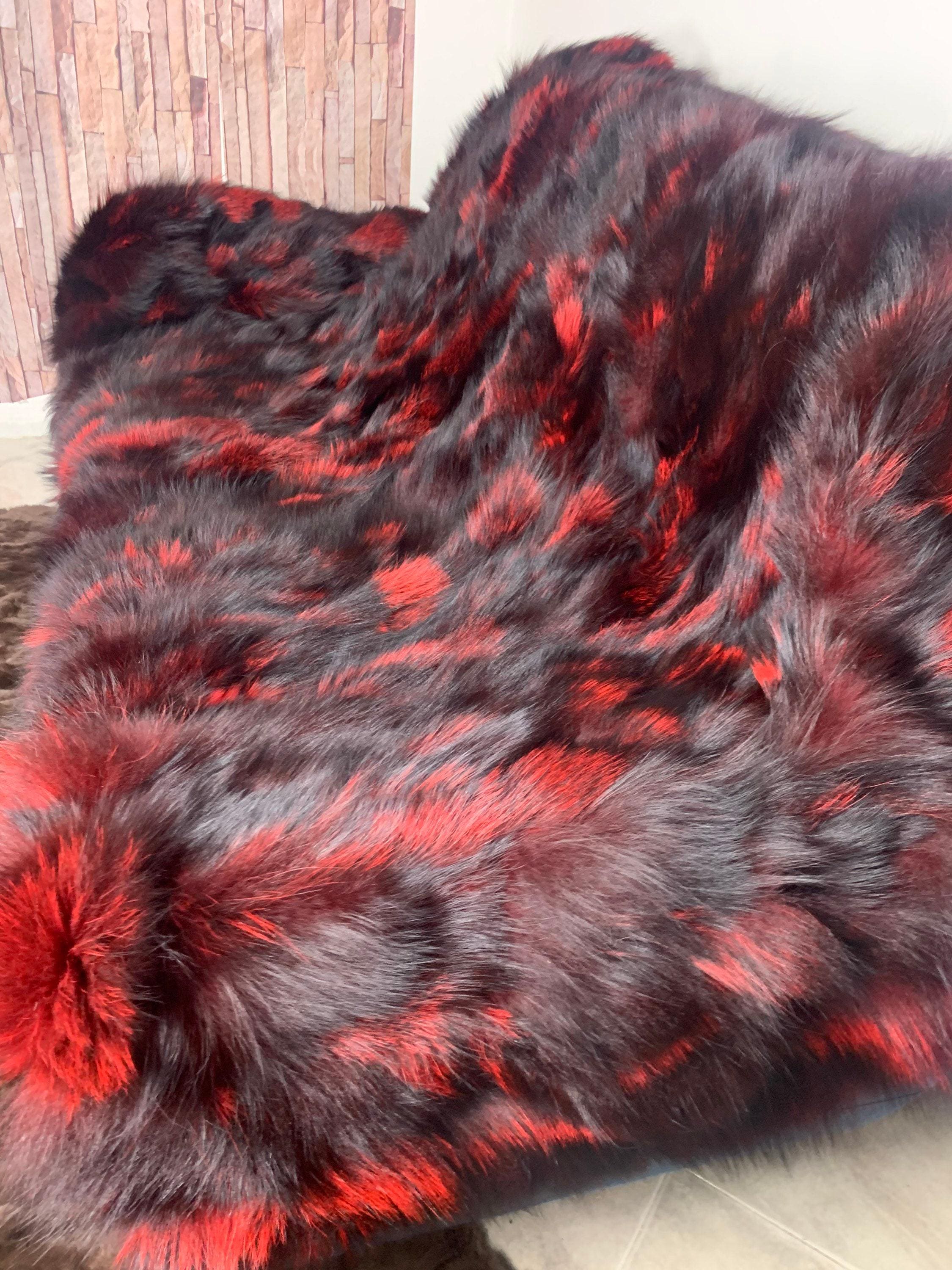 ● 1x Genuine Fox Fur Blanket In Red n Black Color