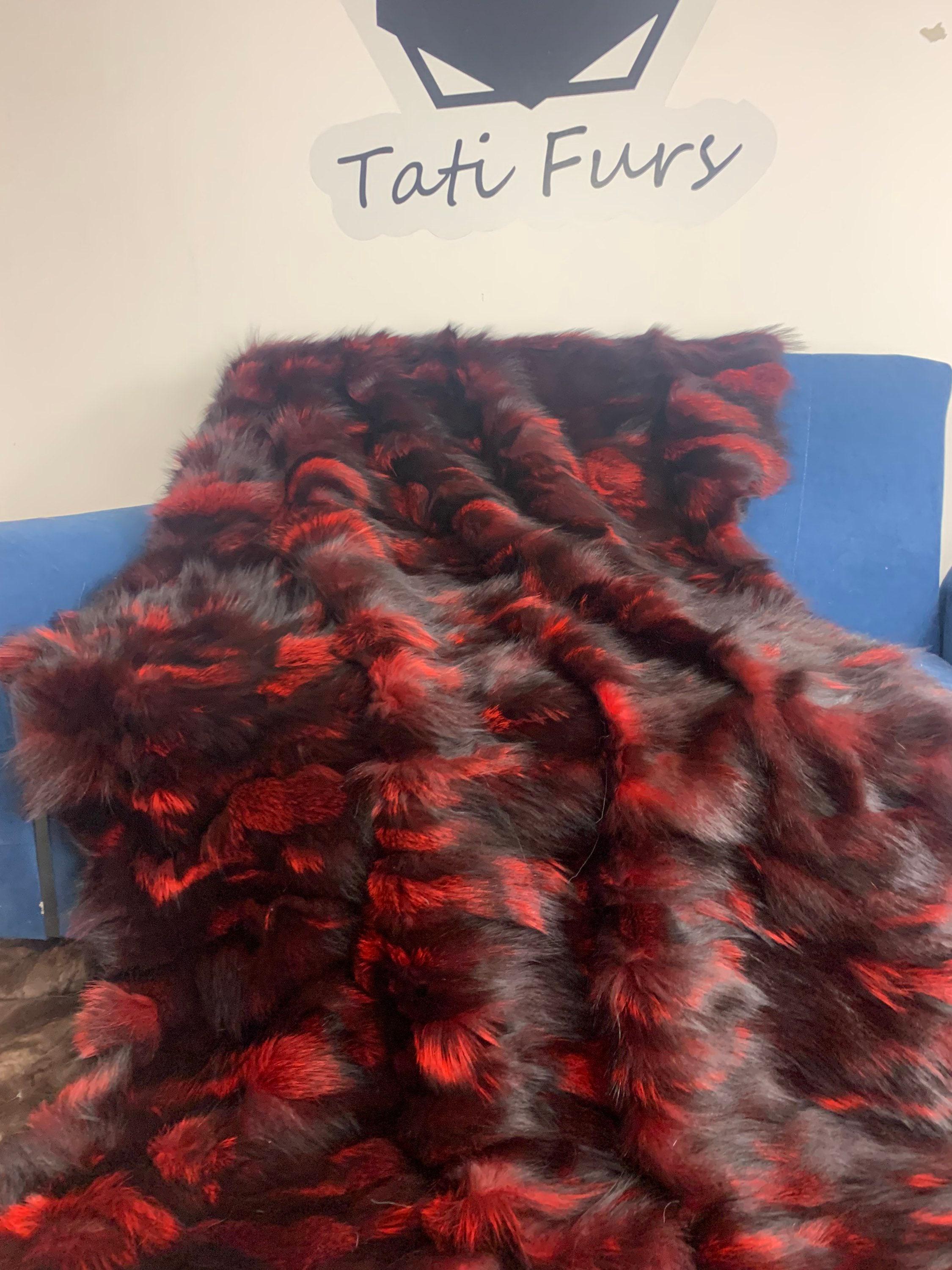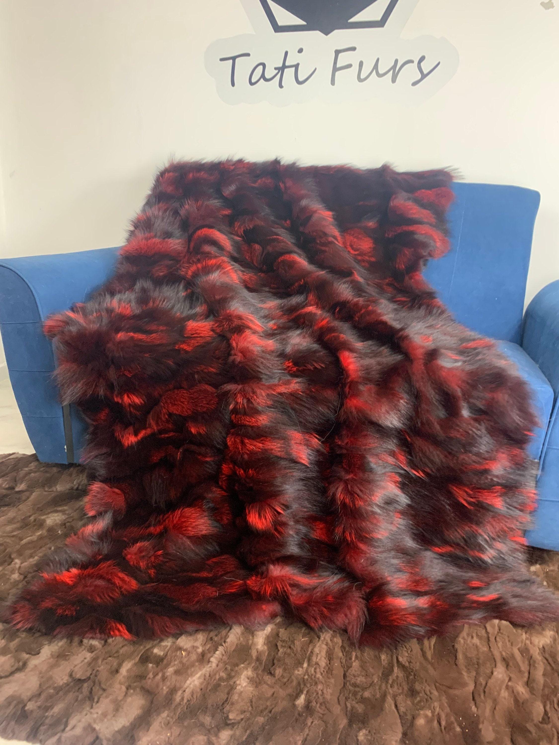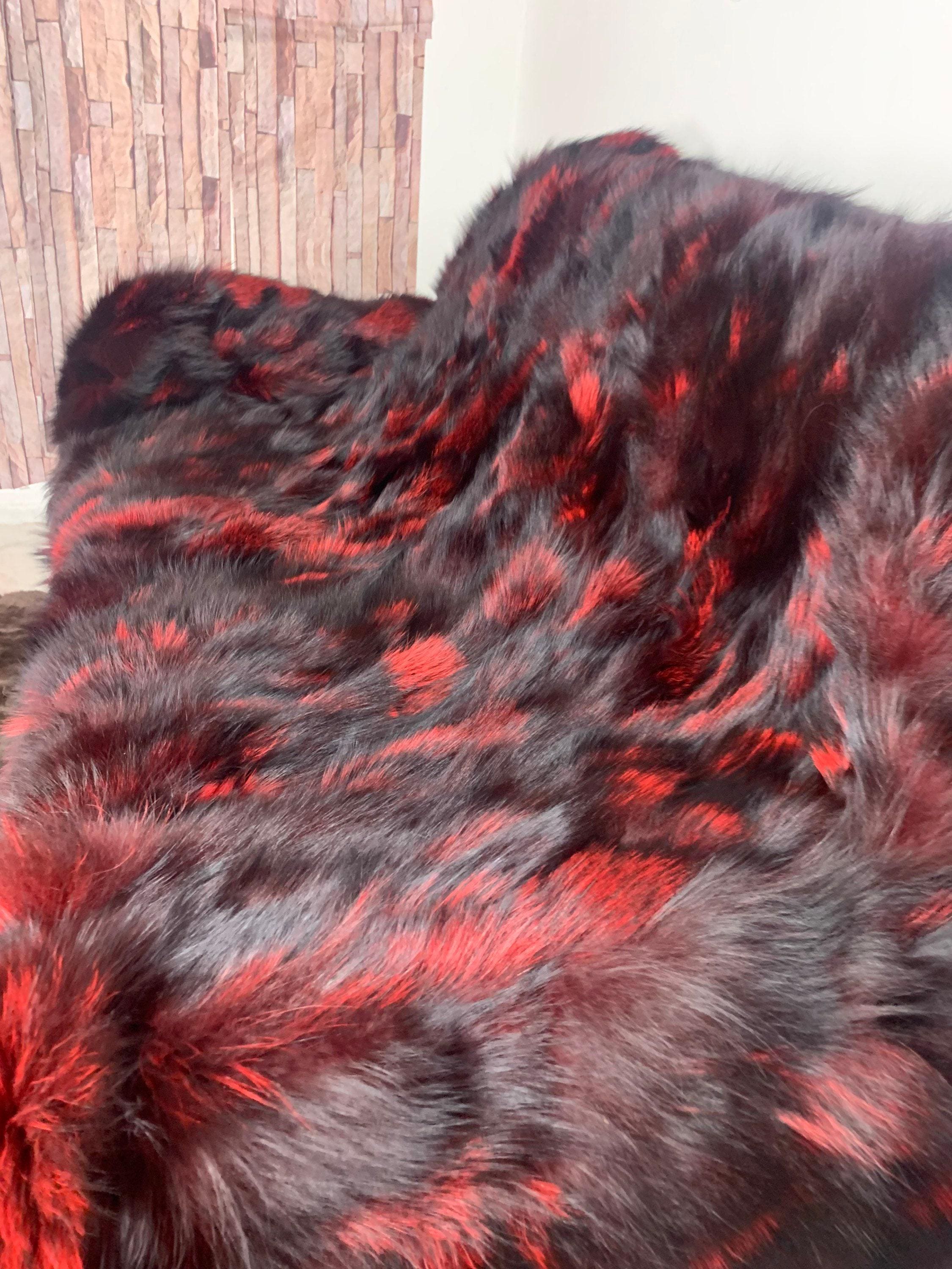 ● 1x Genuine Fox Fur Blanket In Red n Black Color
