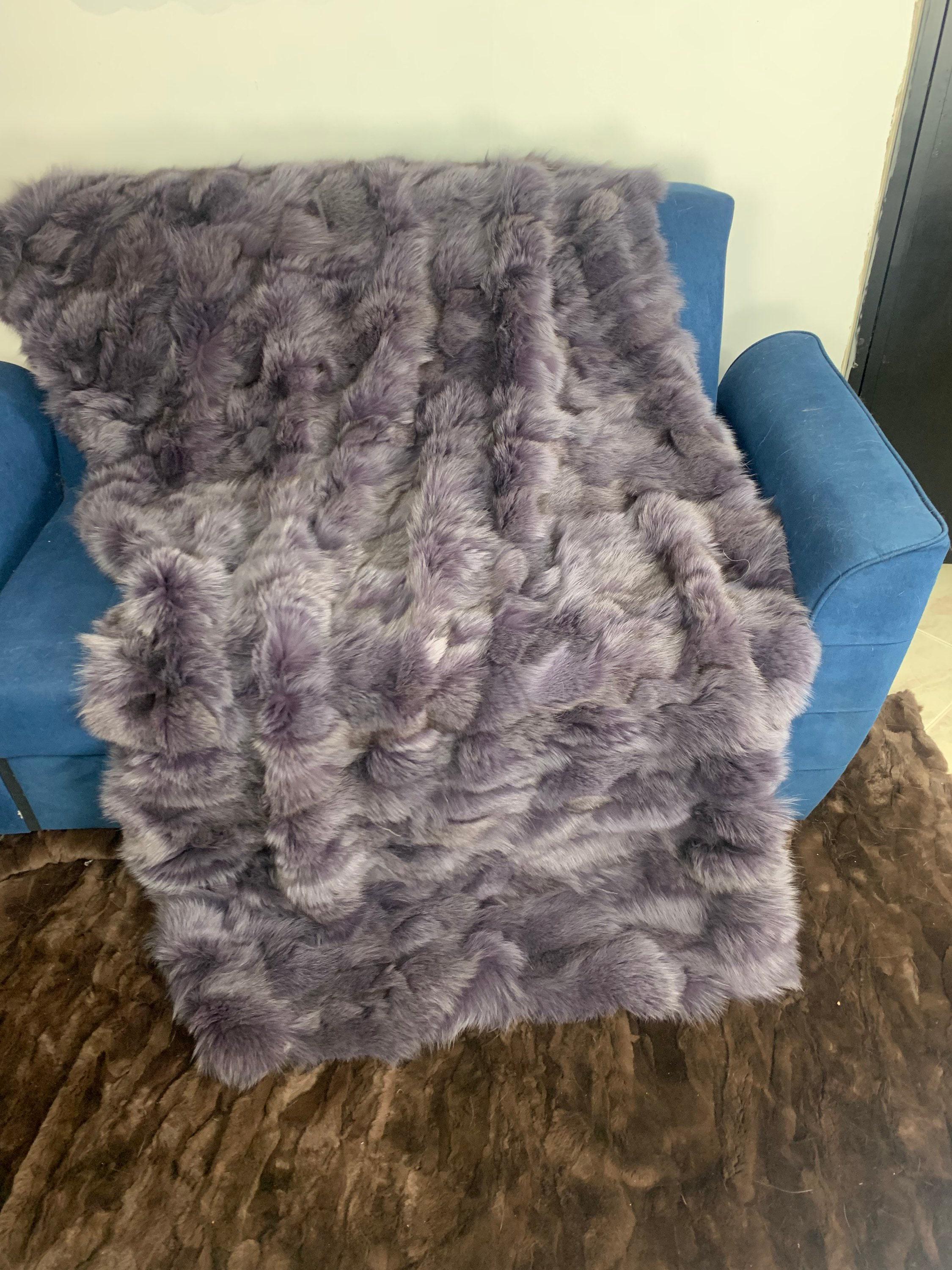 ● 1x Genuine Fox Fur Blanket In Purple Color