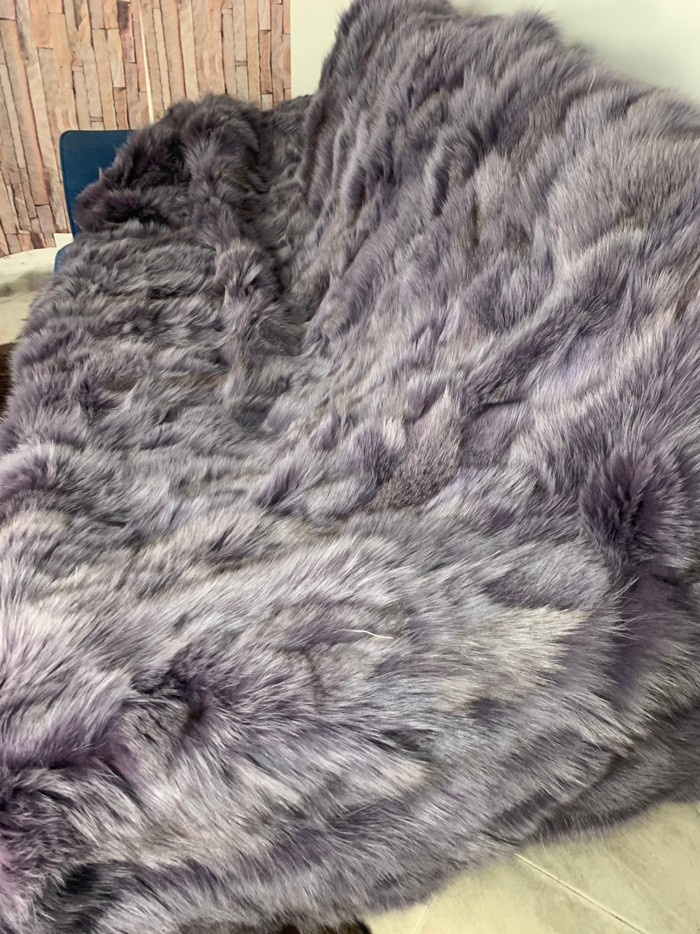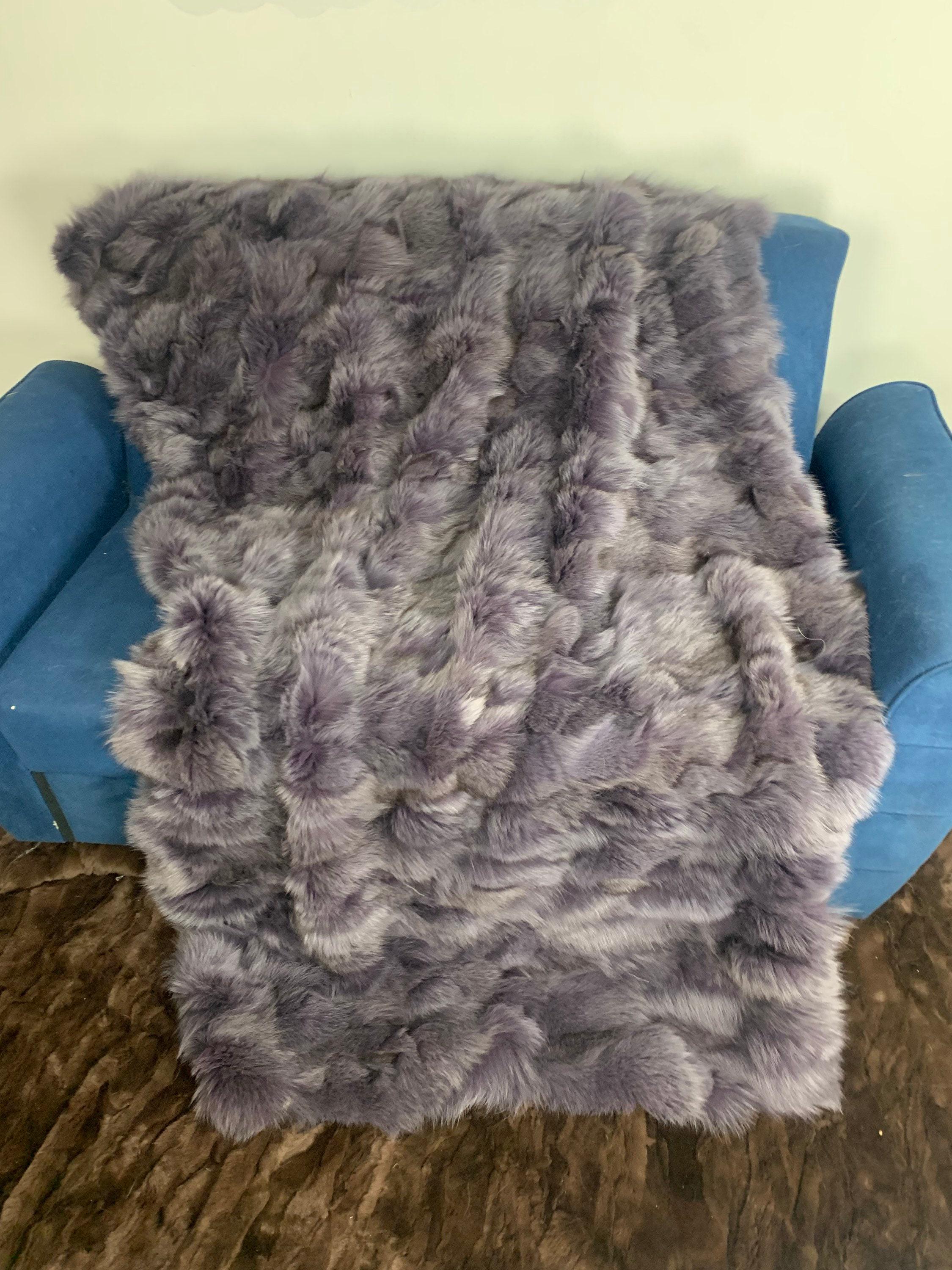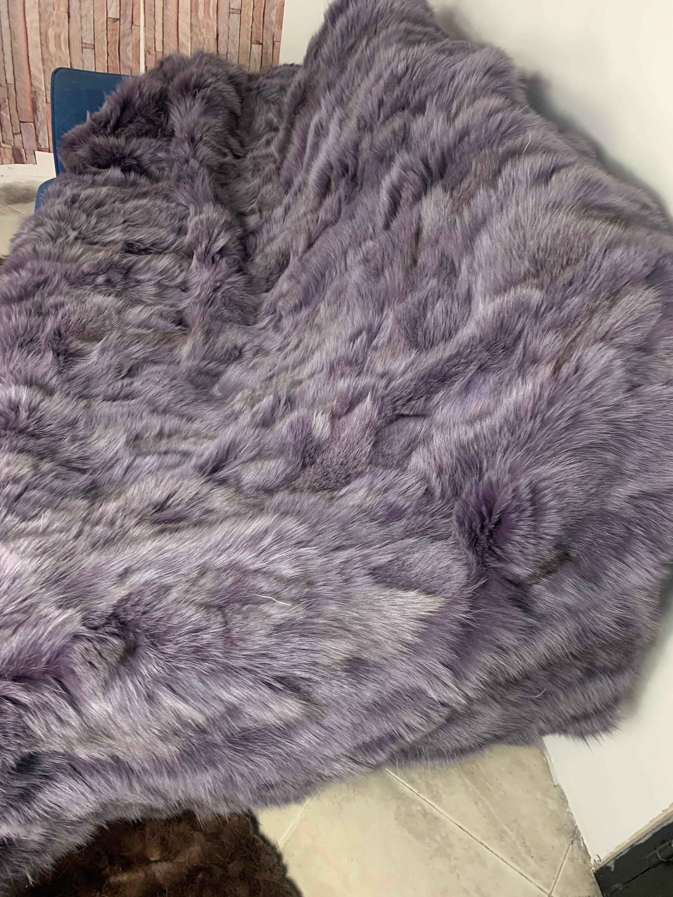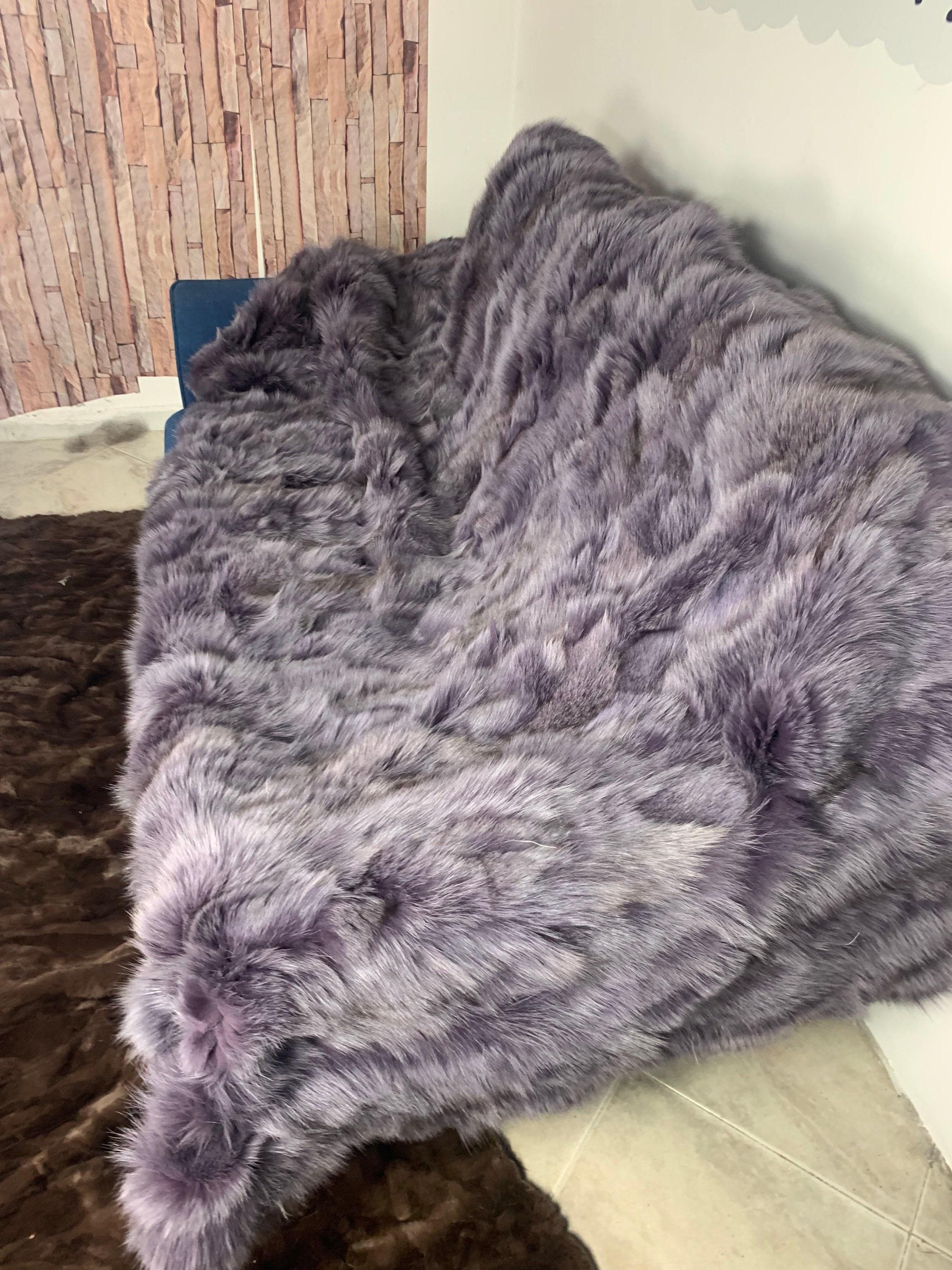 Create an opulent-looking space with our Genuine Fox Fur Blanket In Purple Color.