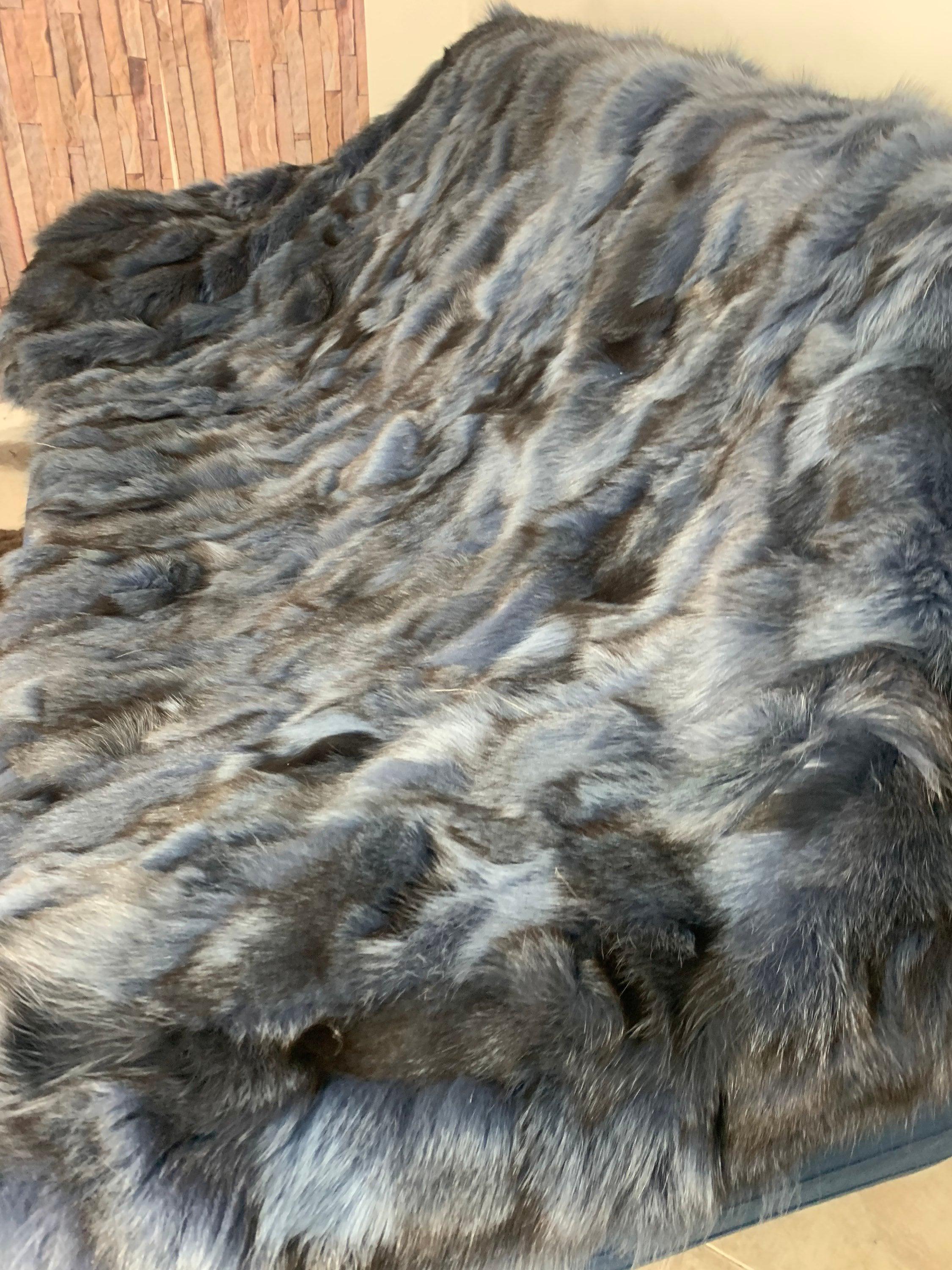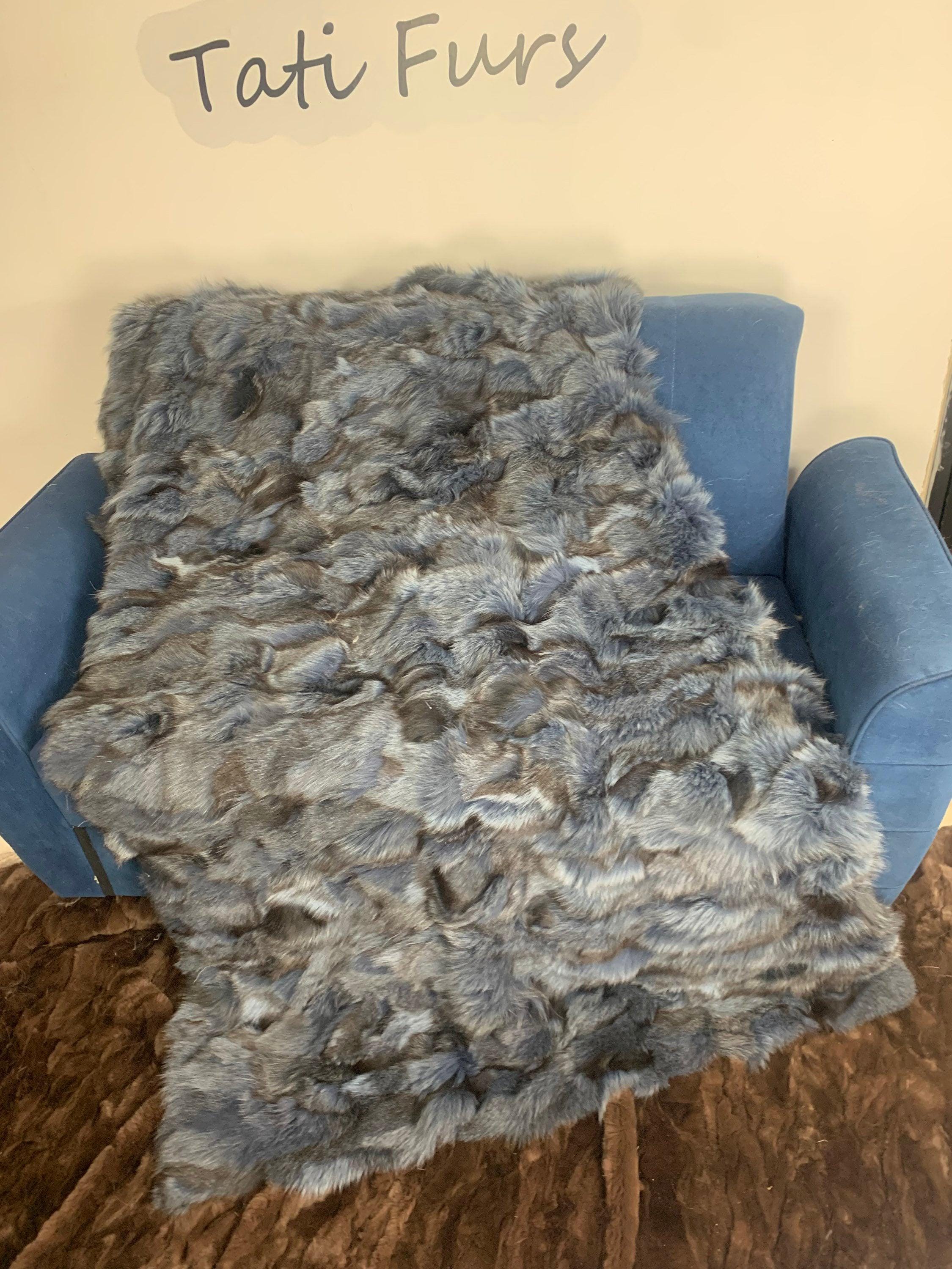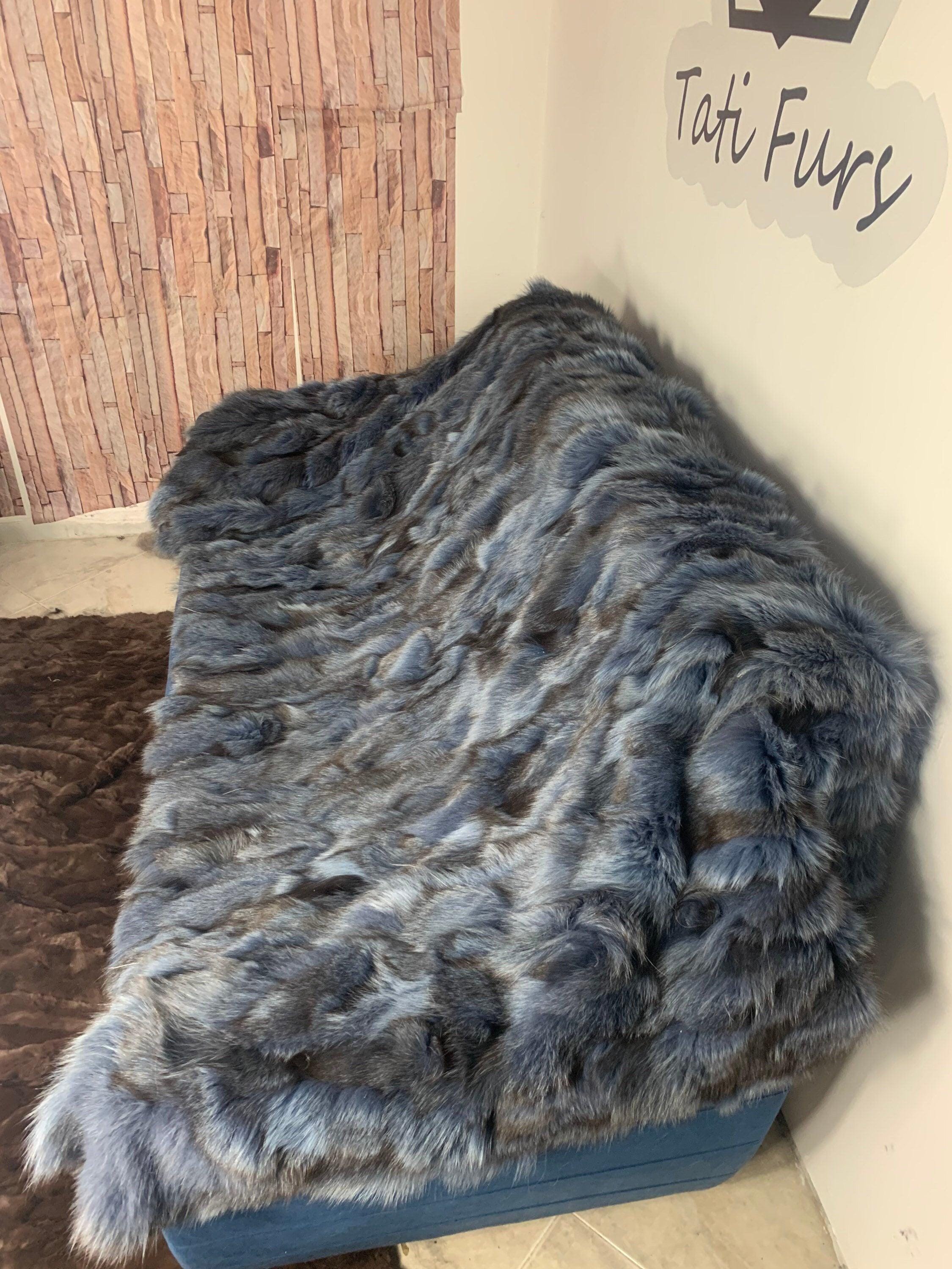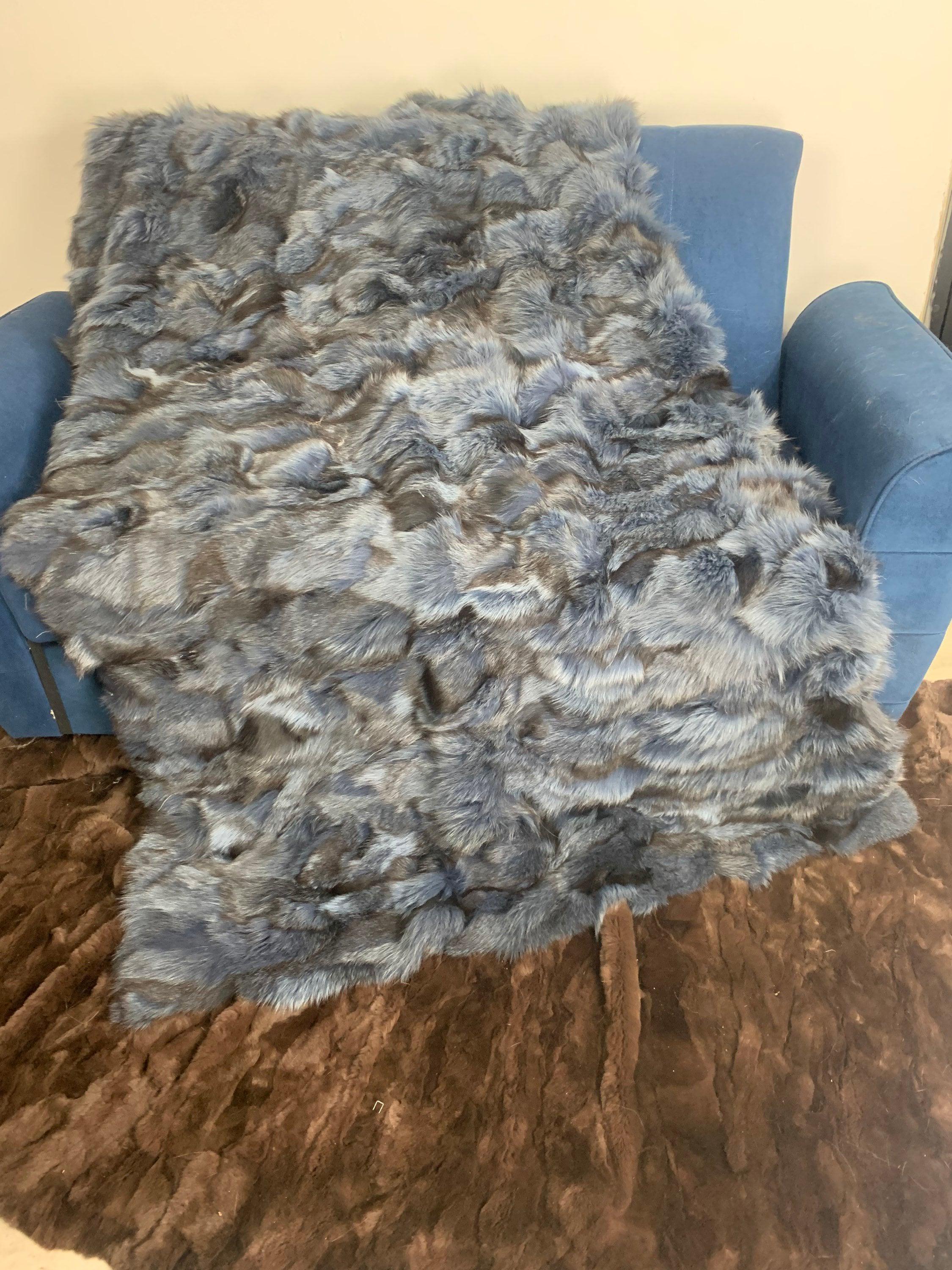 ● 1x Genuine Fox Fur Blanket In Blue Colour