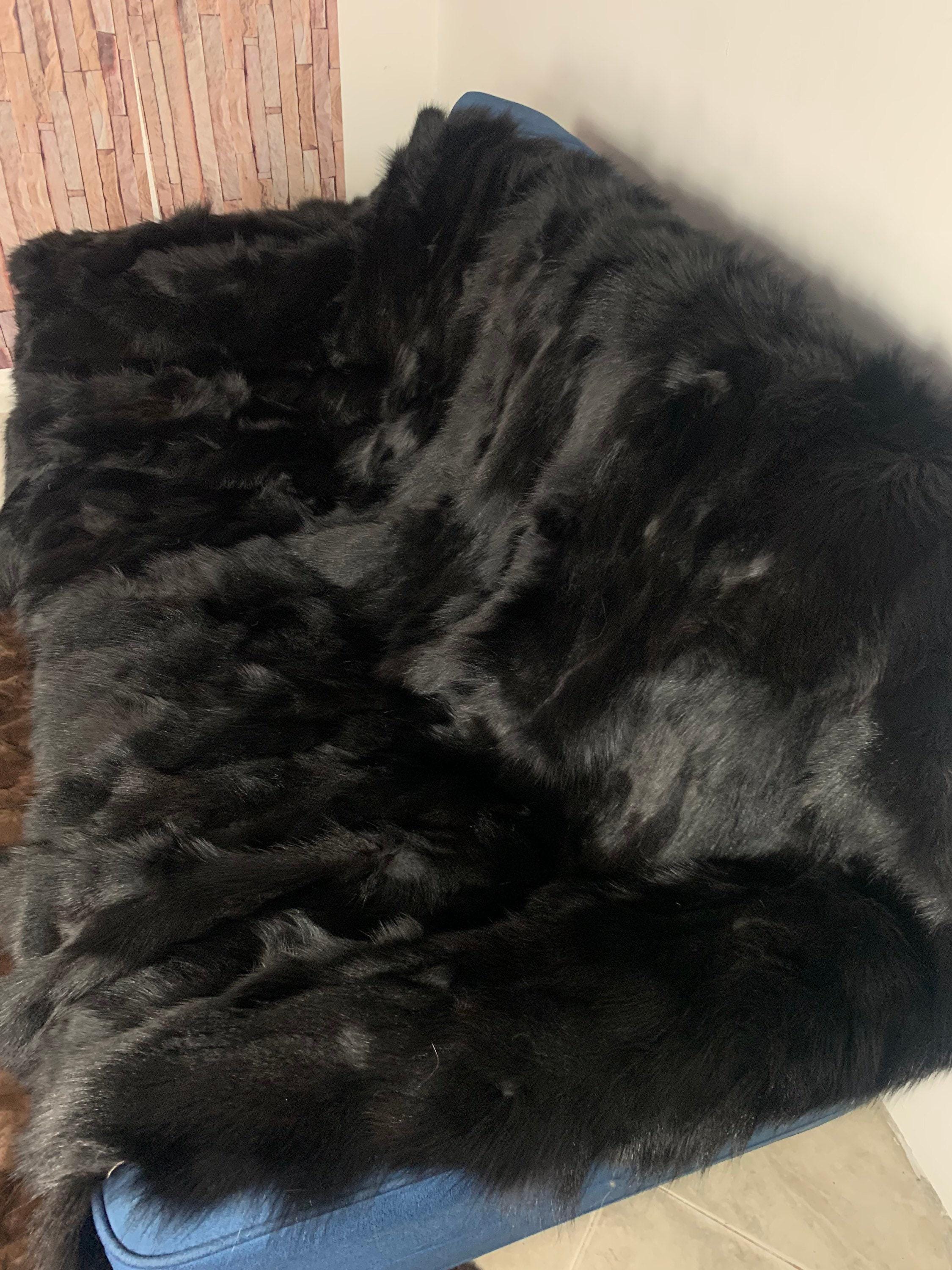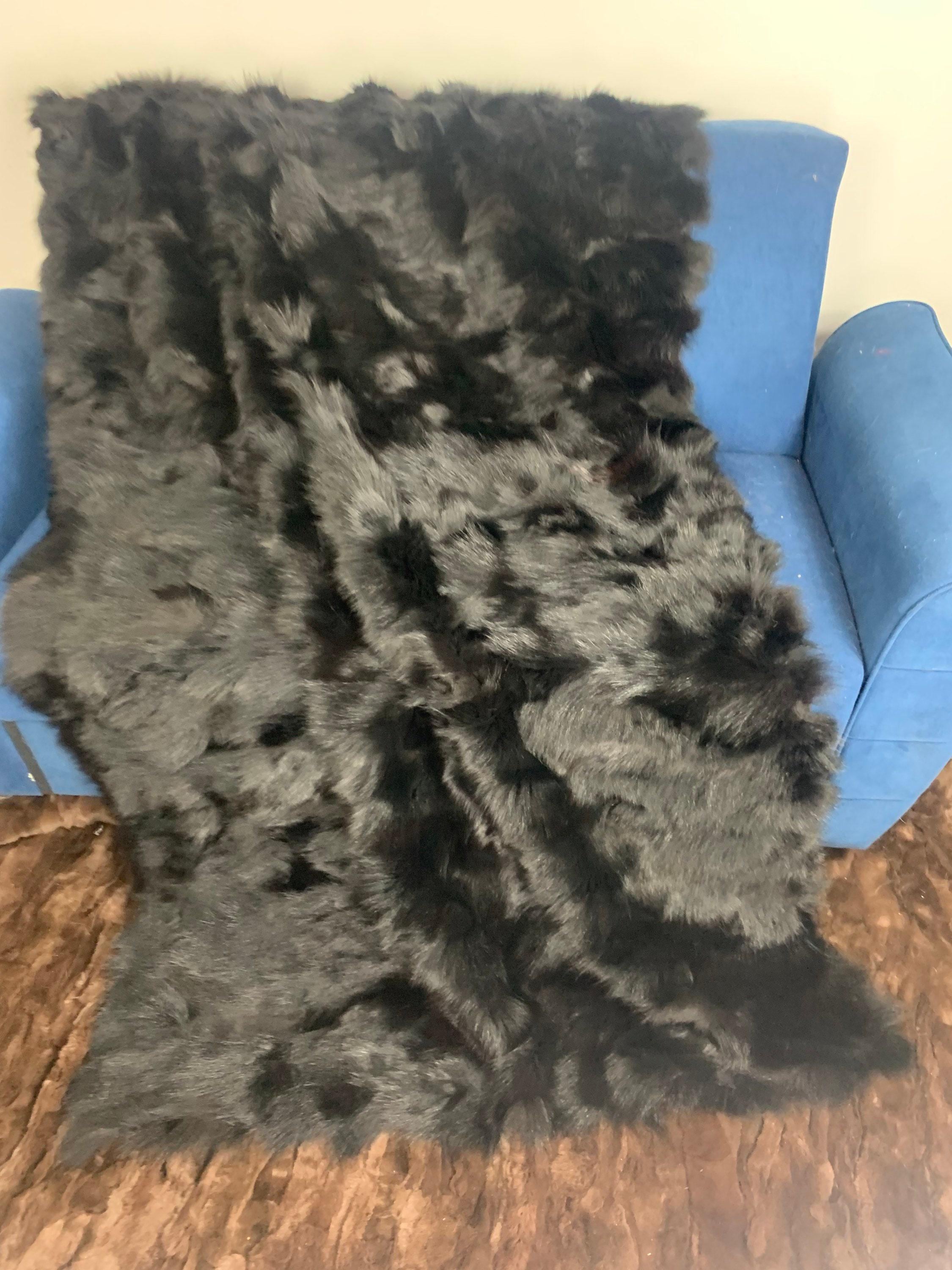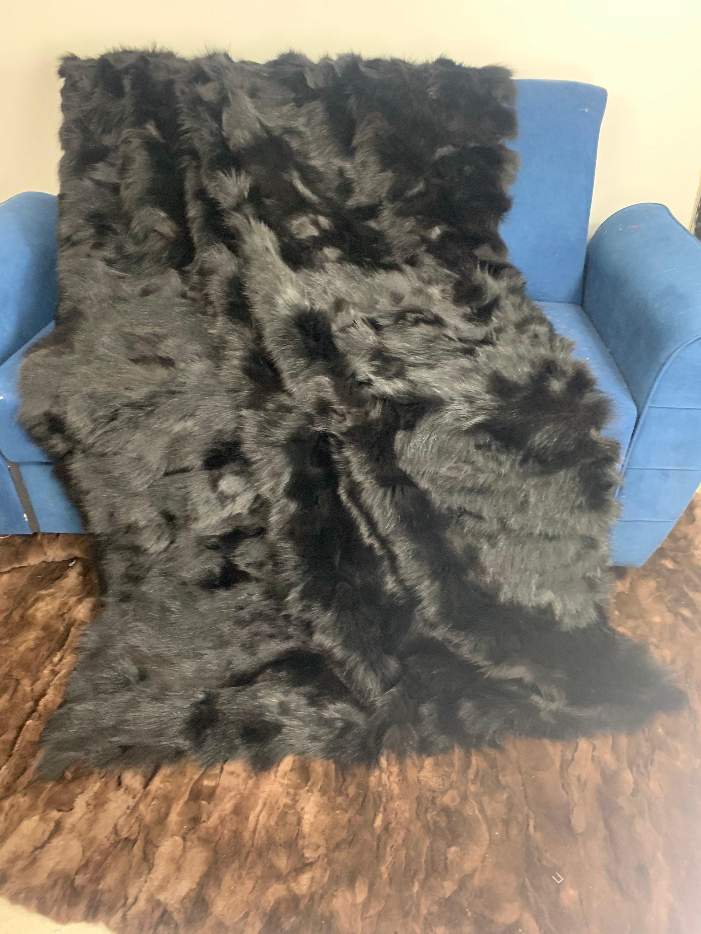 Create an opulent-looking space with our Genuine Fox Fur Blanket In Black Color.