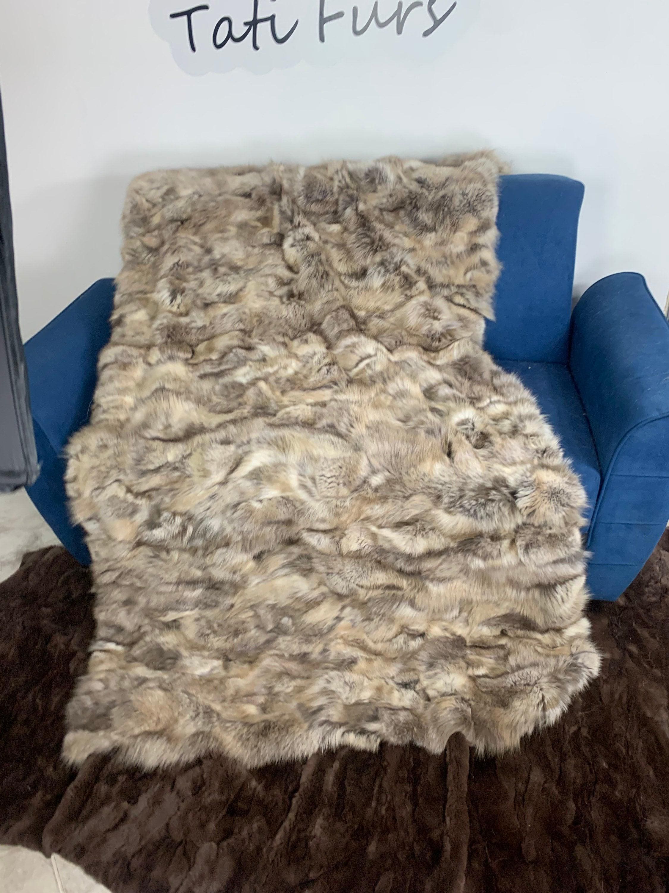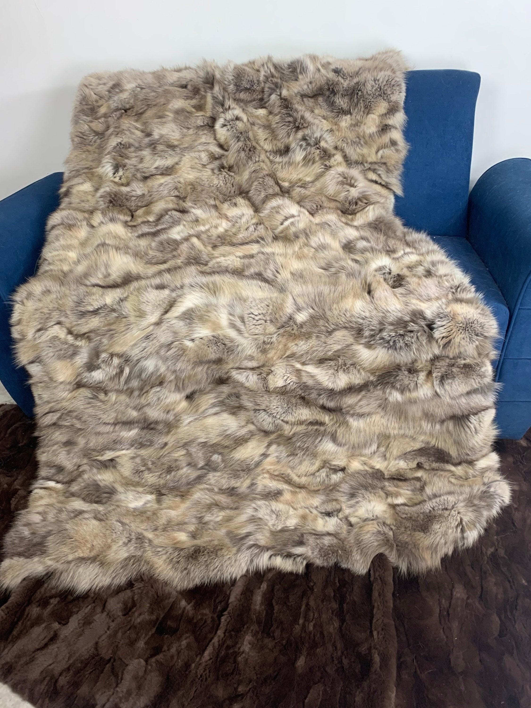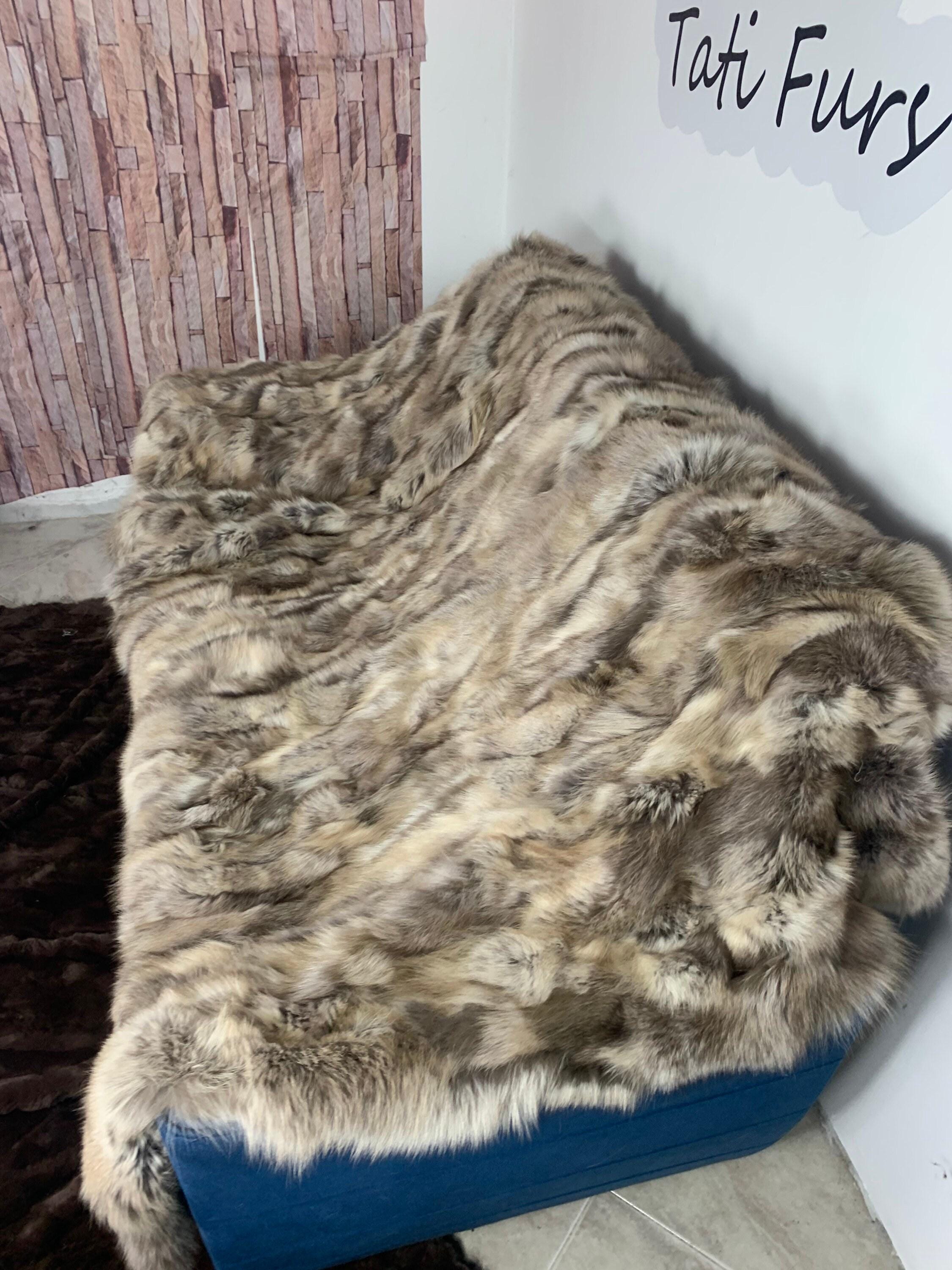 Real Fur Blanket • Personalized Fox Fur Blanket Throw • Handmade Genuine Fur Blanket • Fur Bedspread n Sofa Cover