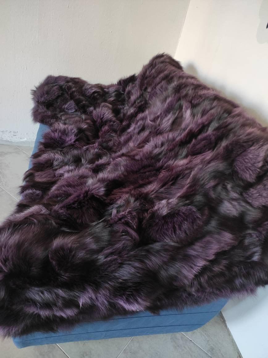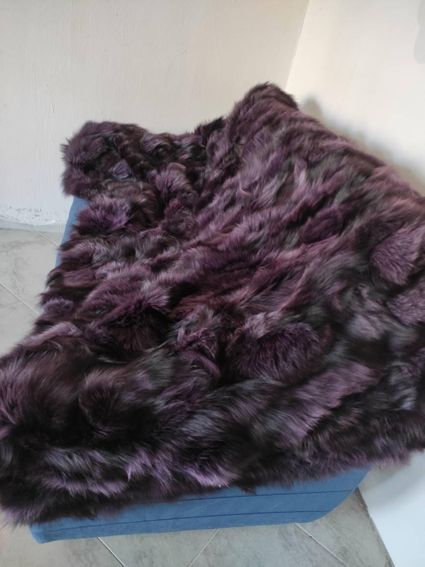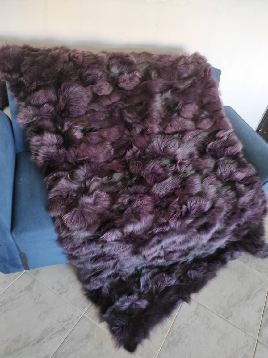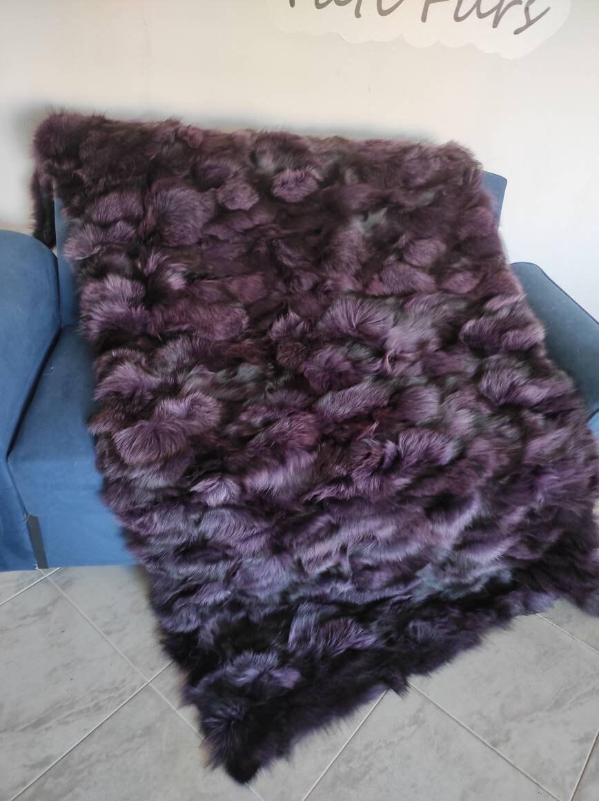 having given this Genuine Fox Fur Blanket In Black and Purple Colour!