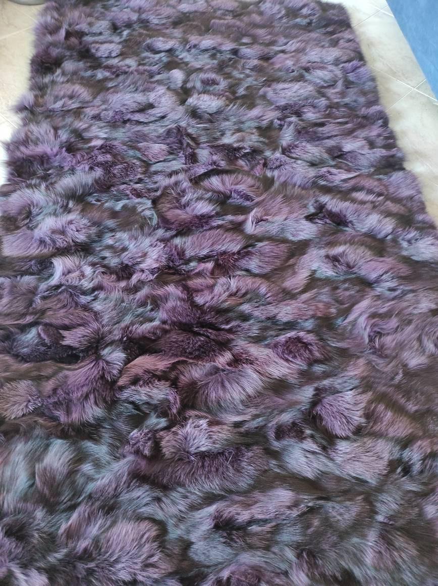 ● 1x Genuine Fox Fur Blanket In Black and Purple Color