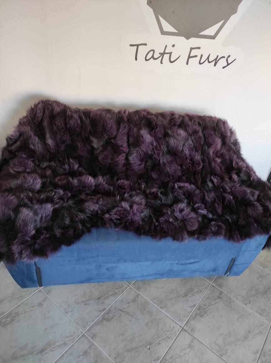 Create an opulent-looking space with our Genuine Fox Fur Blanket In Black and Purple Color.