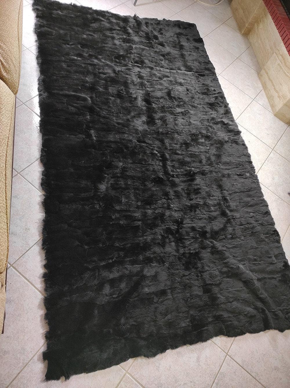 Handmade Real Black Rex Rabbit Fur Blanket that can be used as a throw as well. Perfect for Bedspread or Sofa Cover.