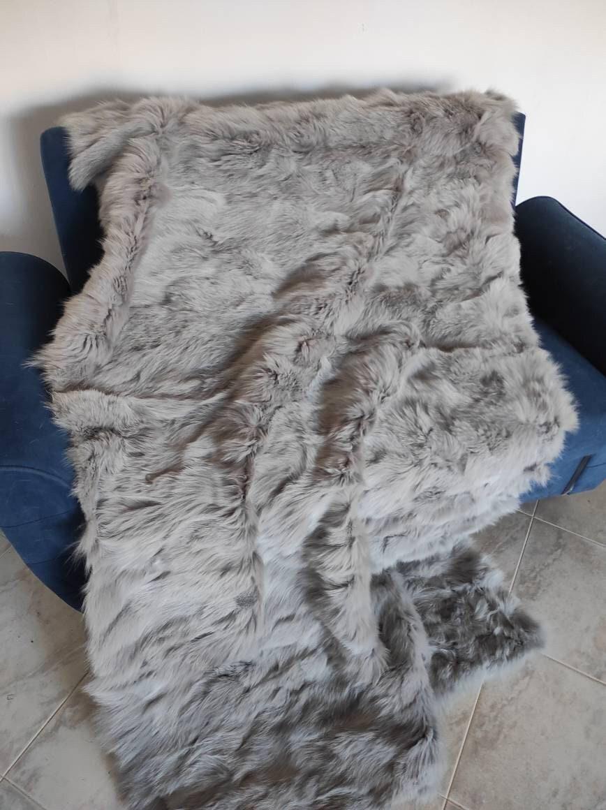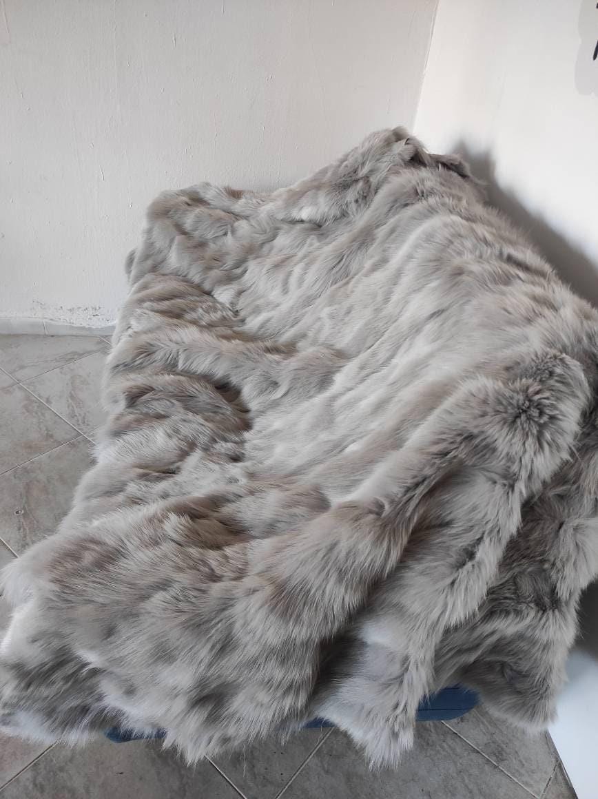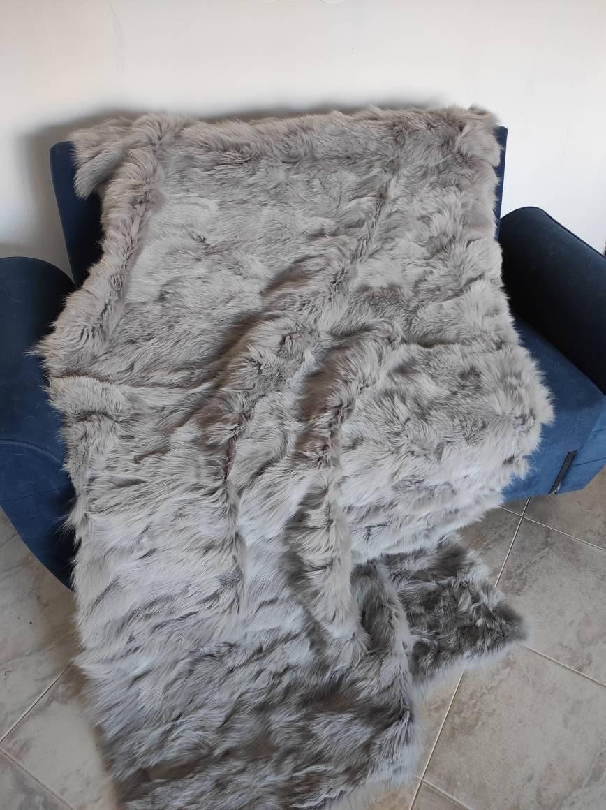 ● 1x Genuine Fox Fur Blanket In Gray Color