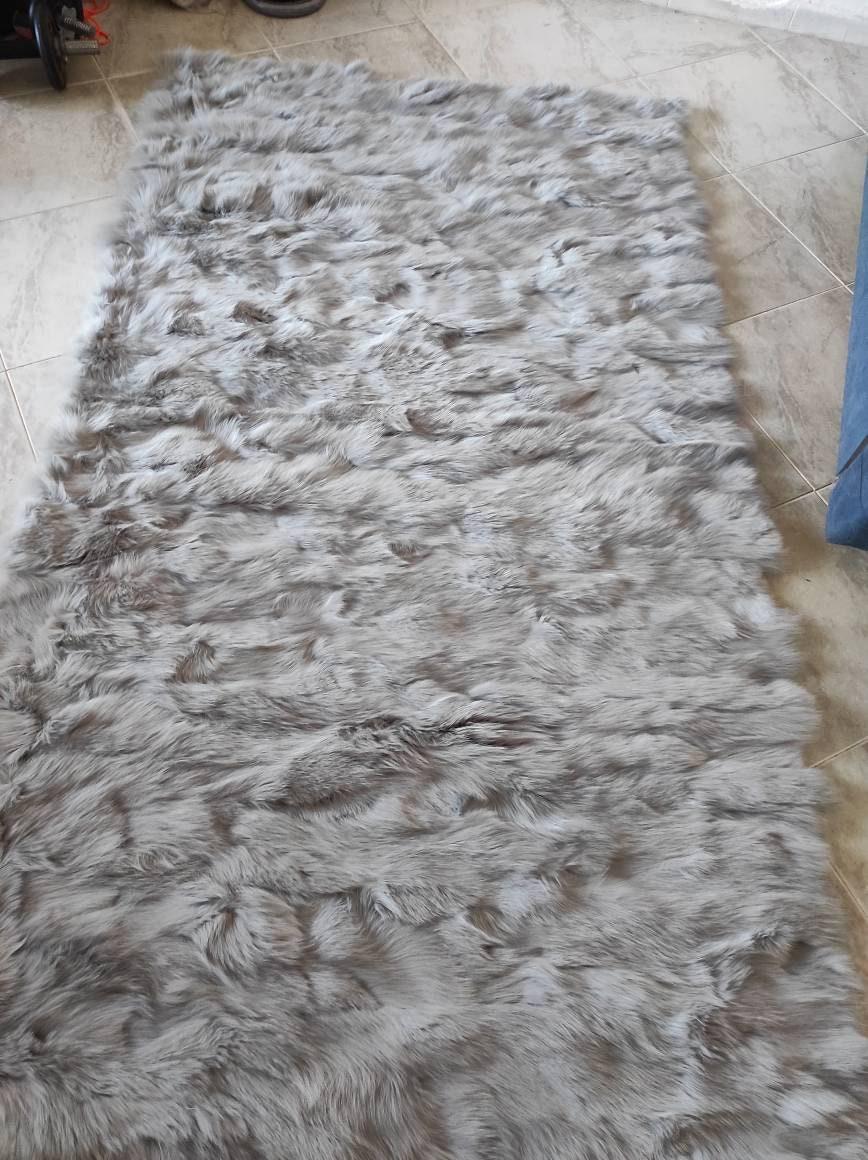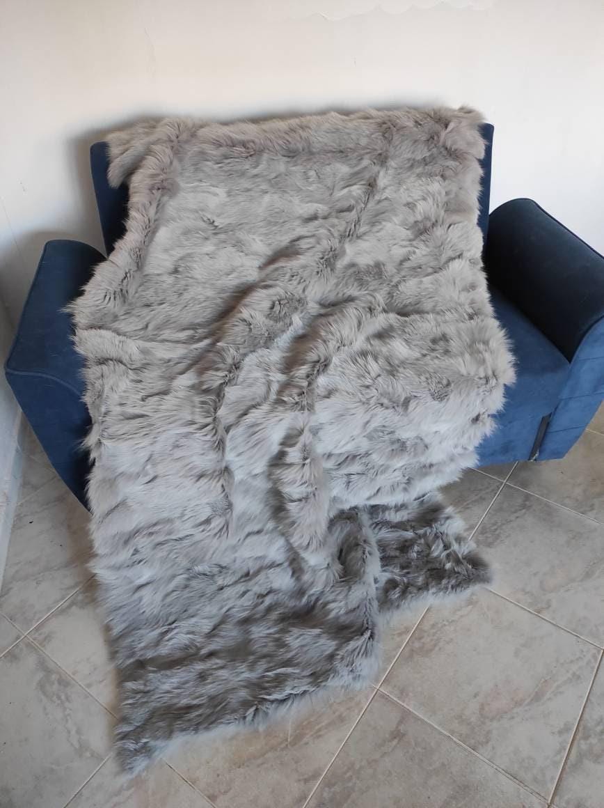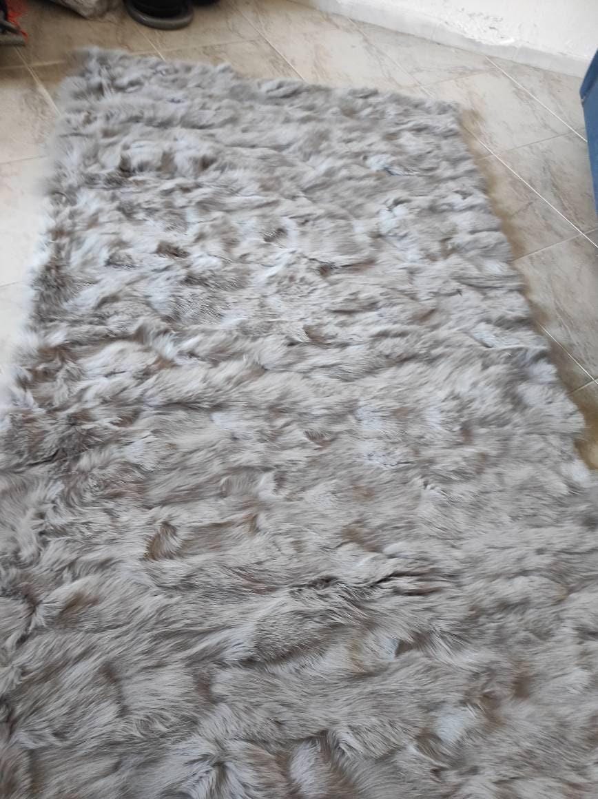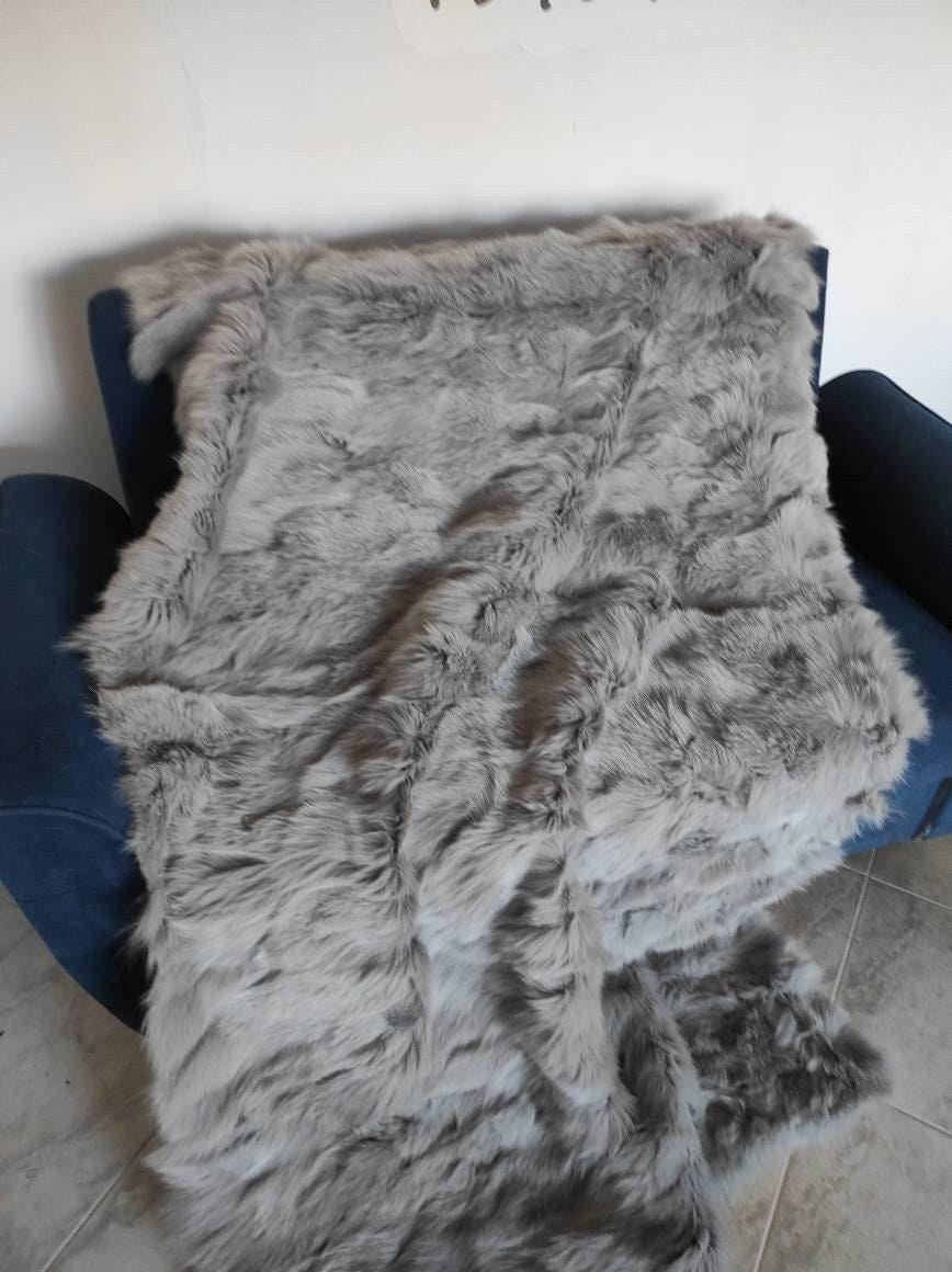 ● 1x Genuine Fox Fur Blanket In Gray Color