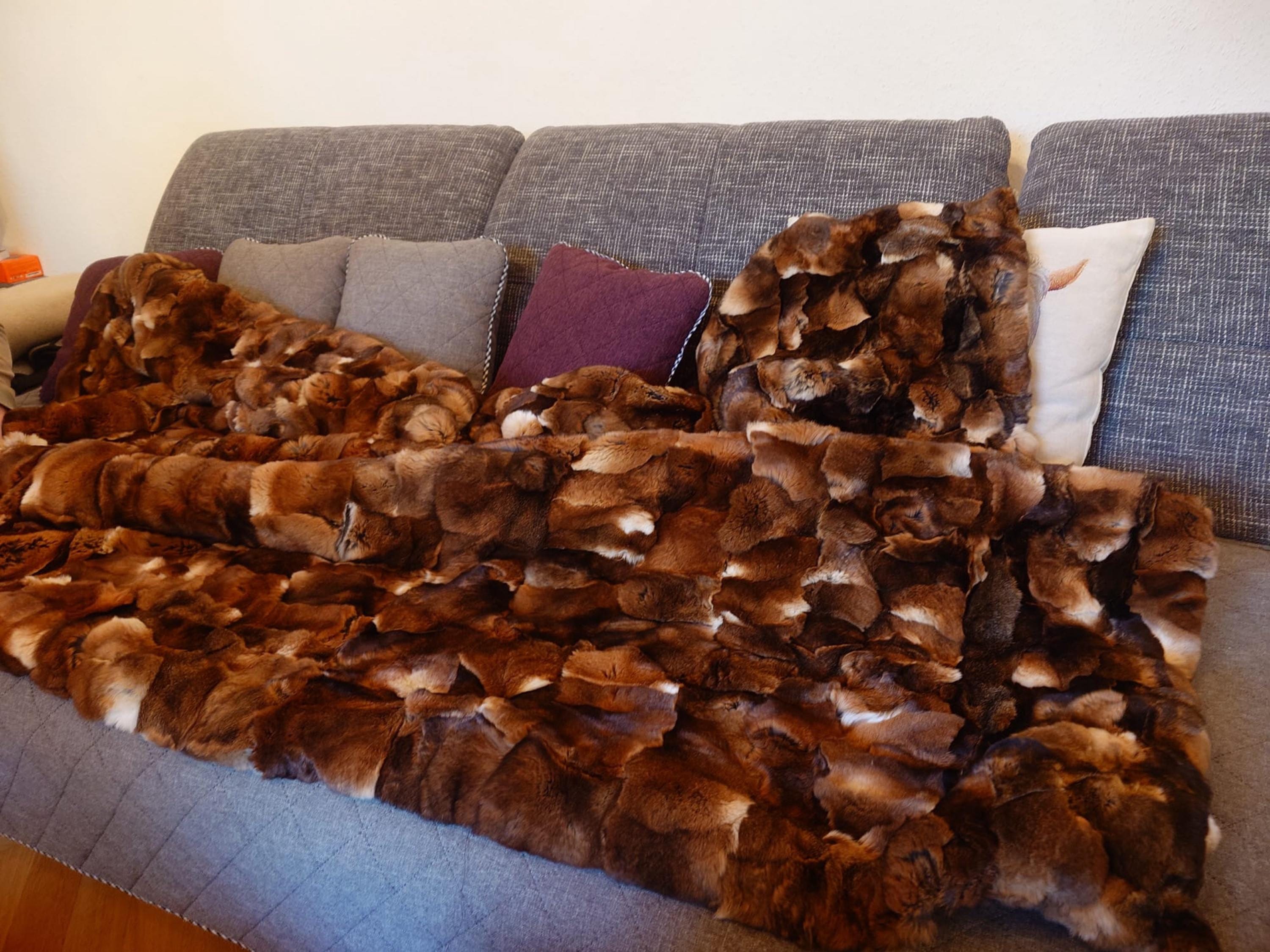 ● 1x Genuine Rex Rabbit Fur Blanket In Brown Orilax