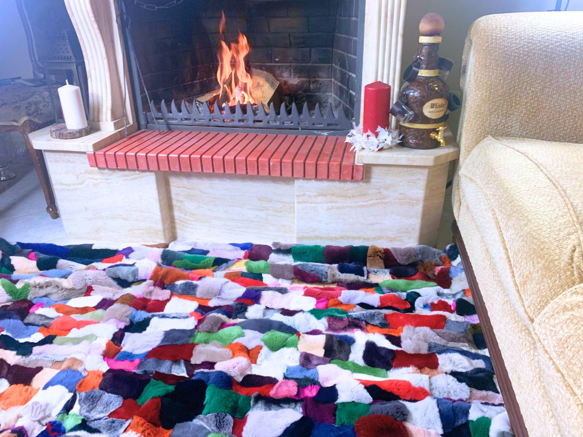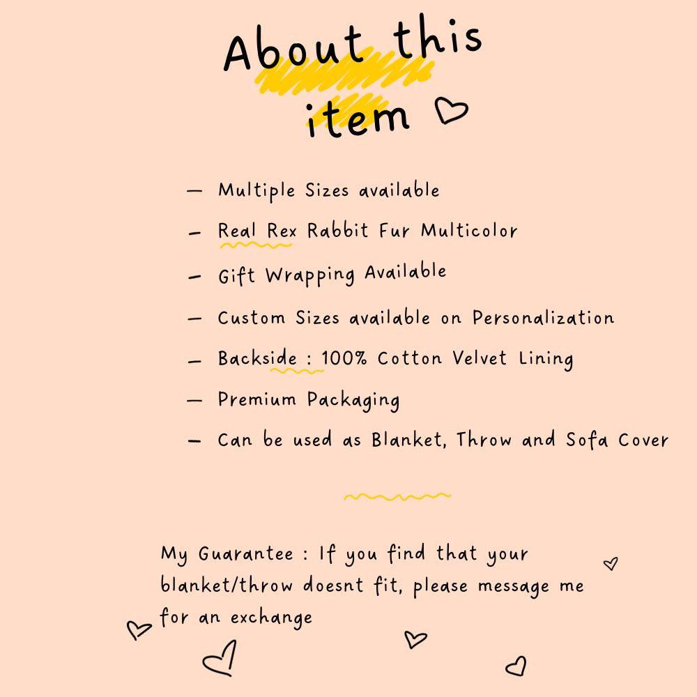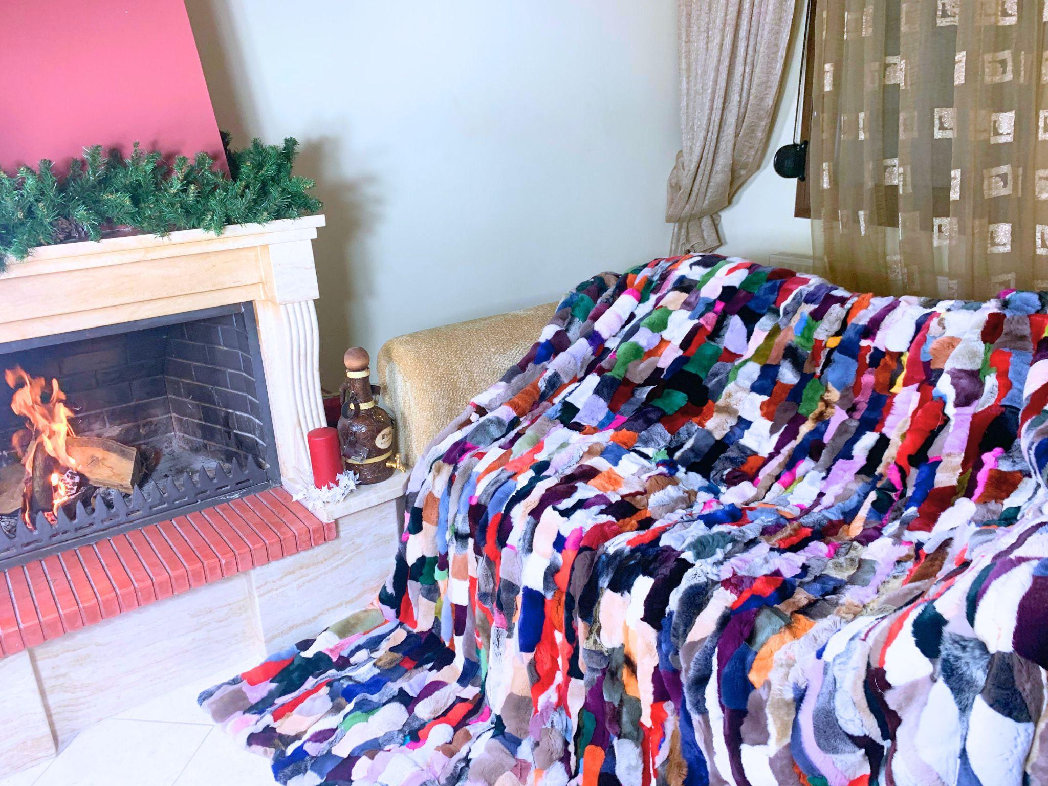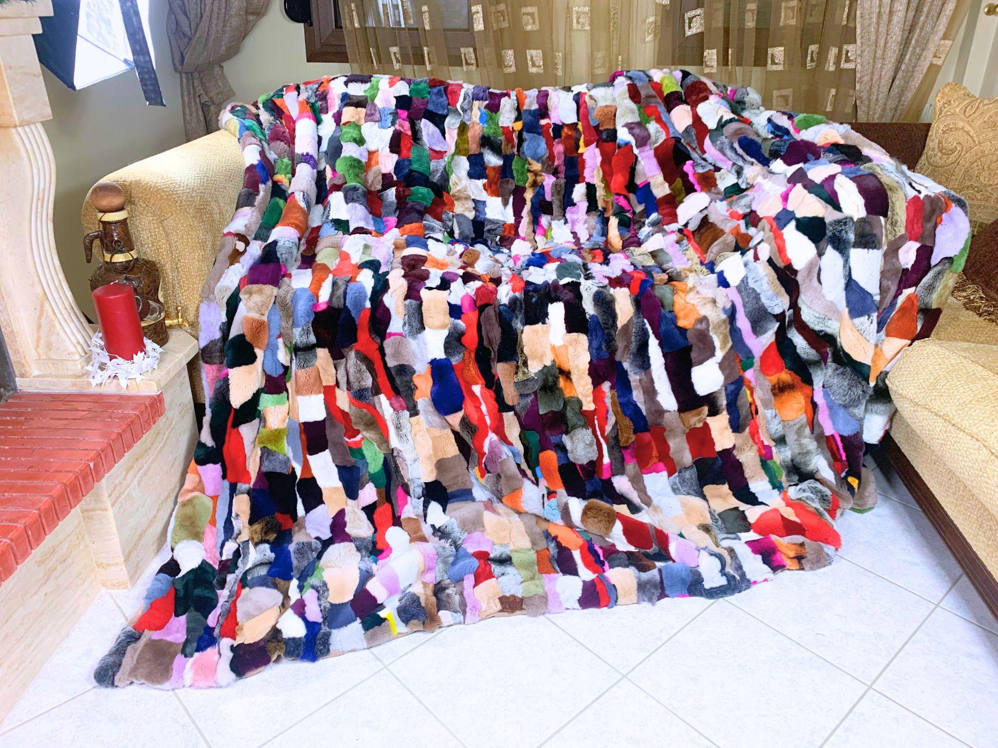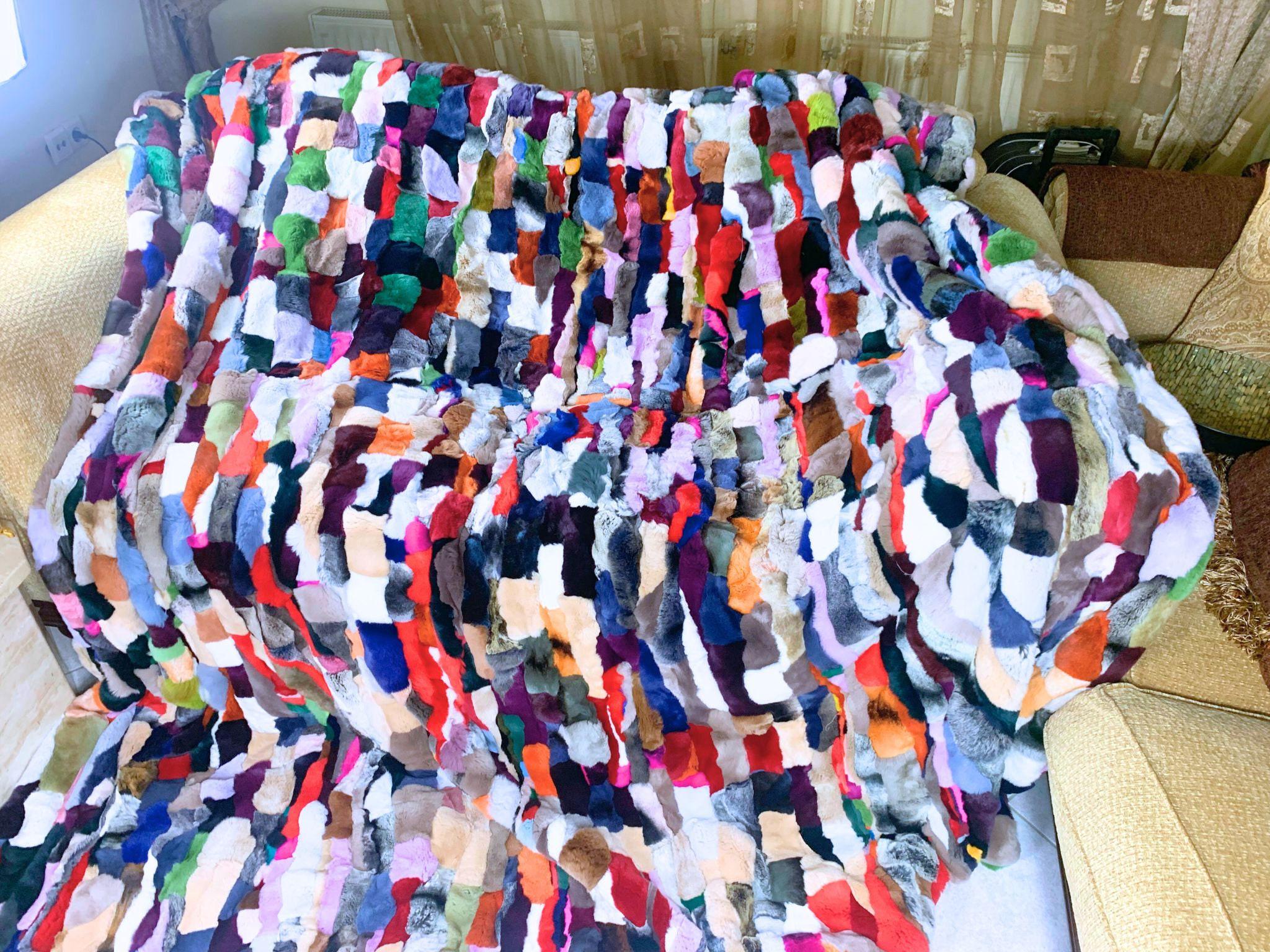 Handmade Real Multicolor Rex Rabbit Fur Real Blanket Throw.