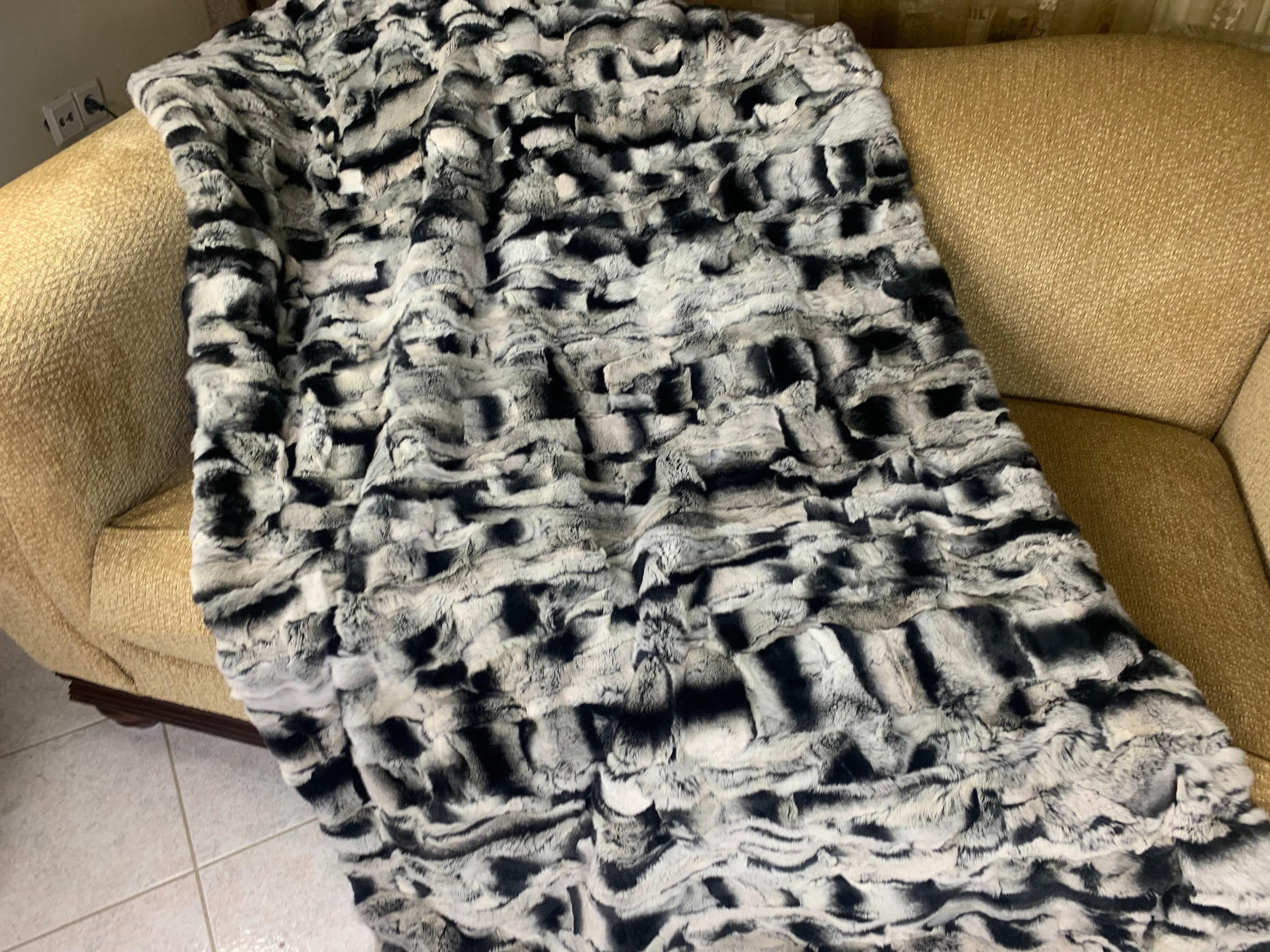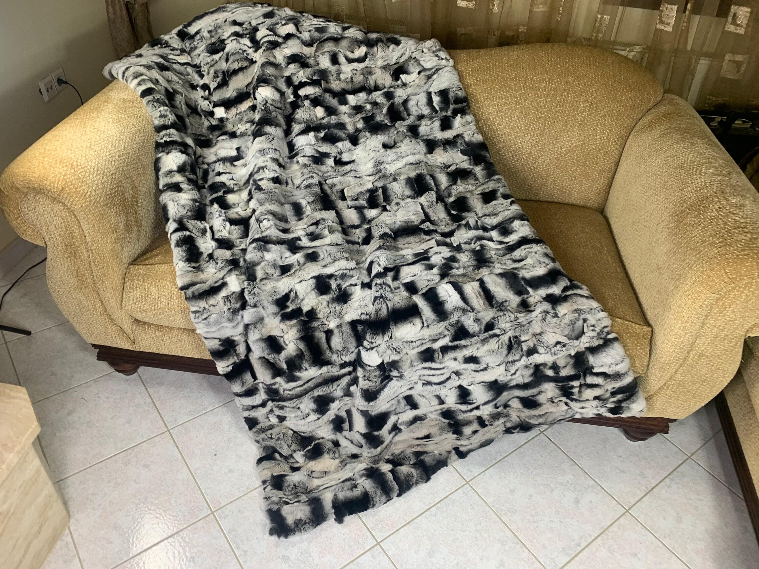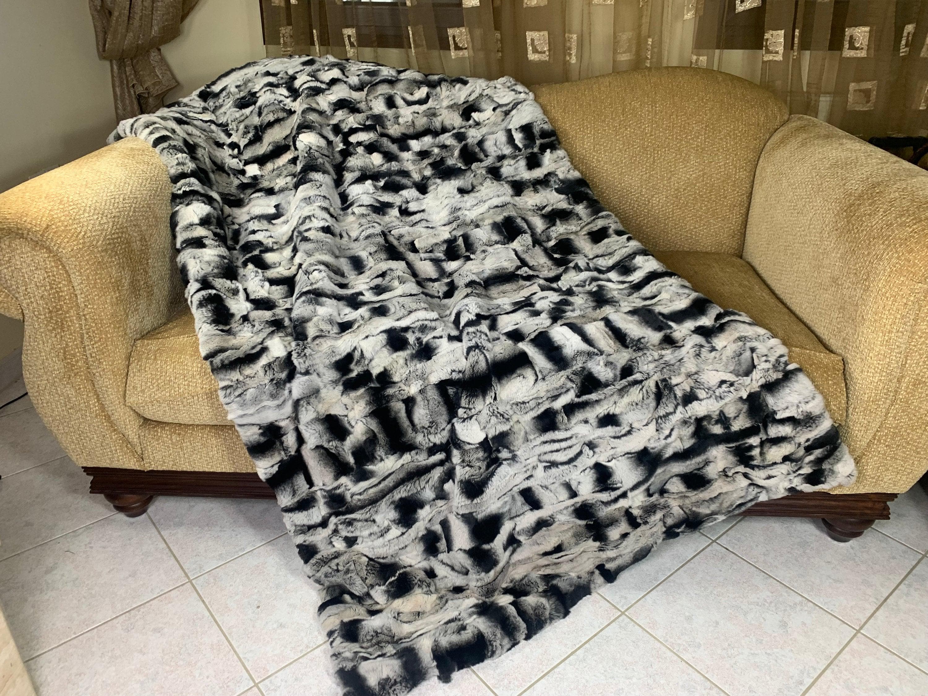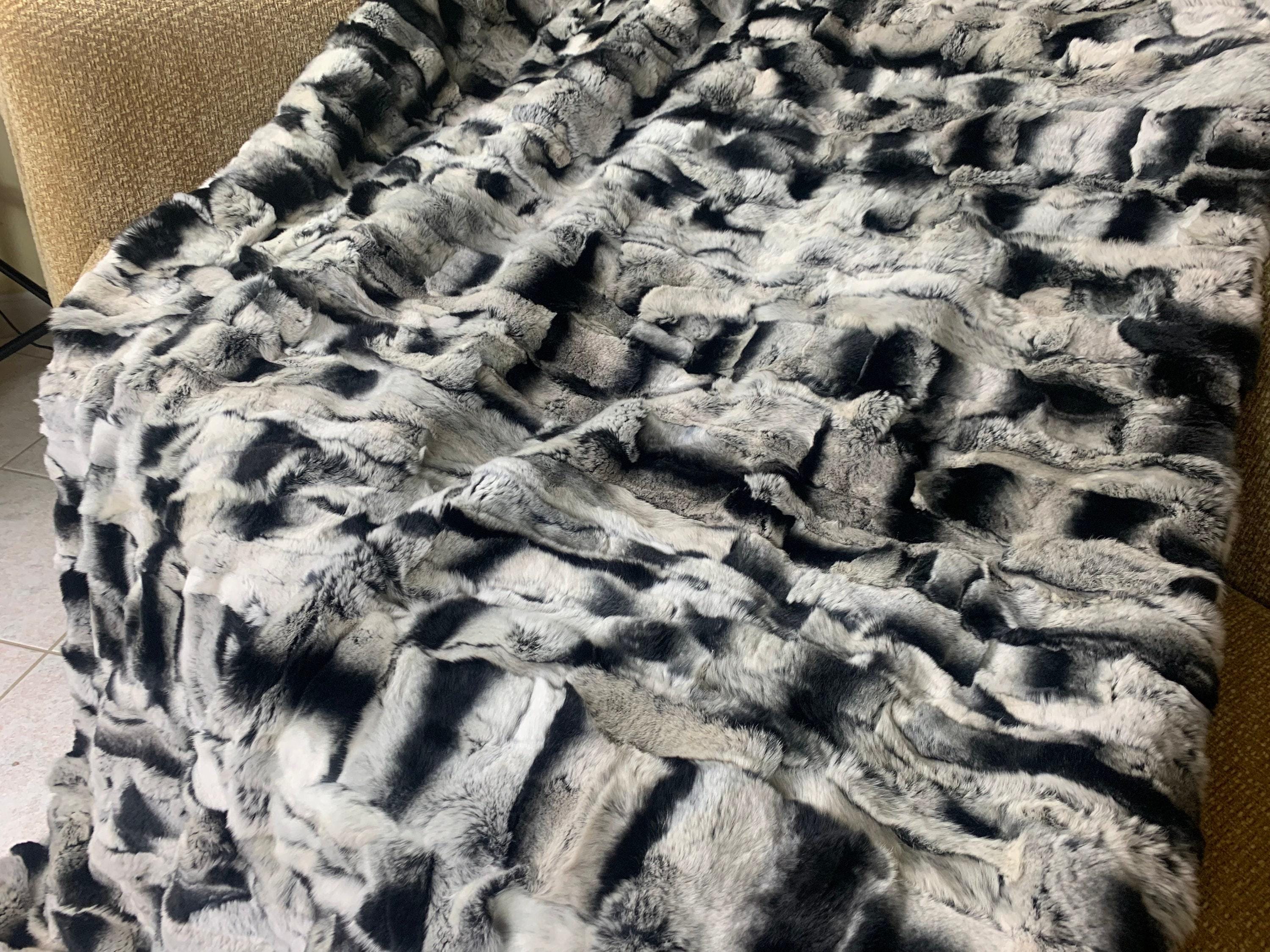 Handmade Real Rex Rabbit Fur Real Blanket Throw.