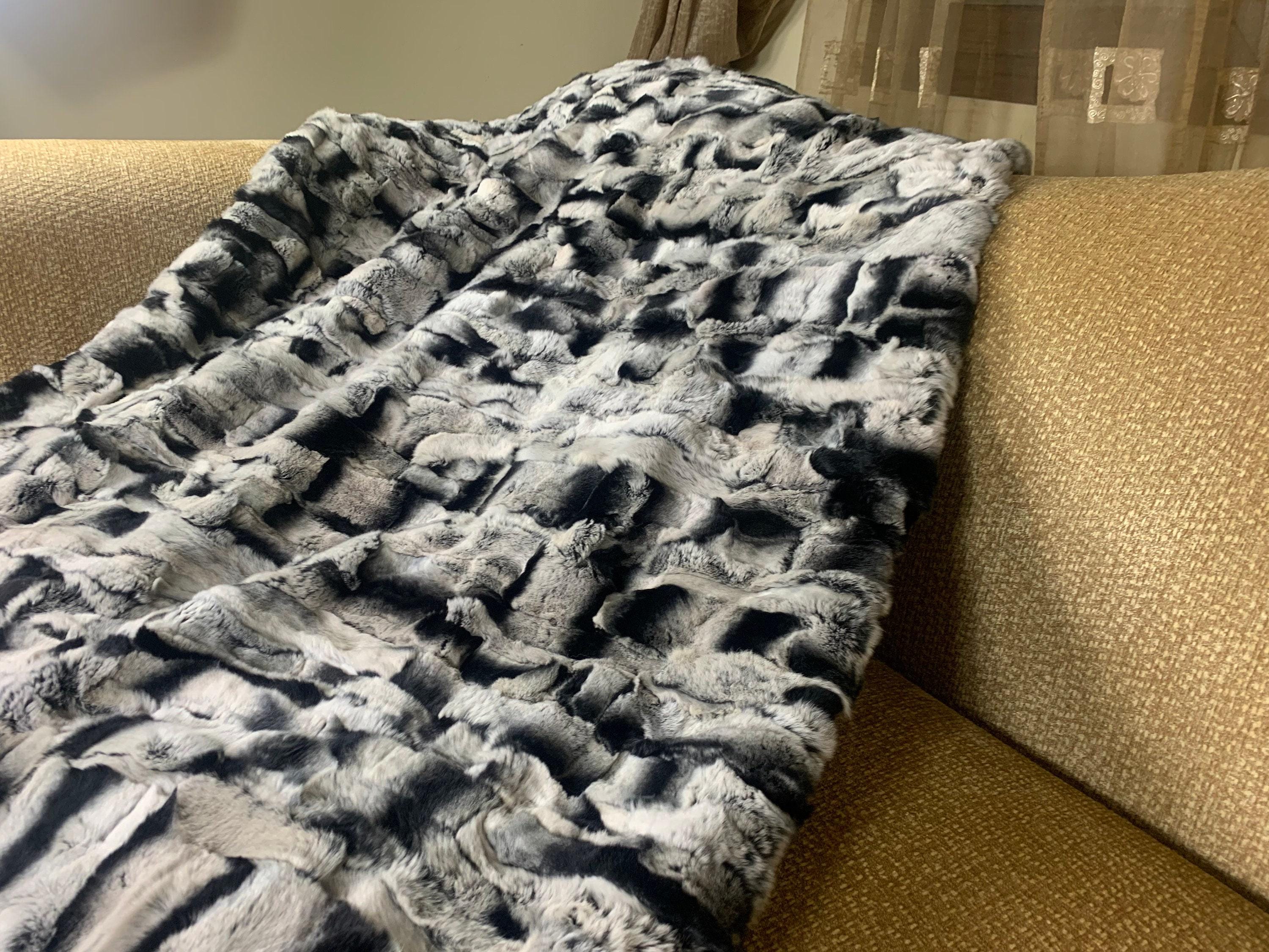 Lovingly crafted by hand, this silver real rex rabbit fur blanket throw was created with chilly days in mind.