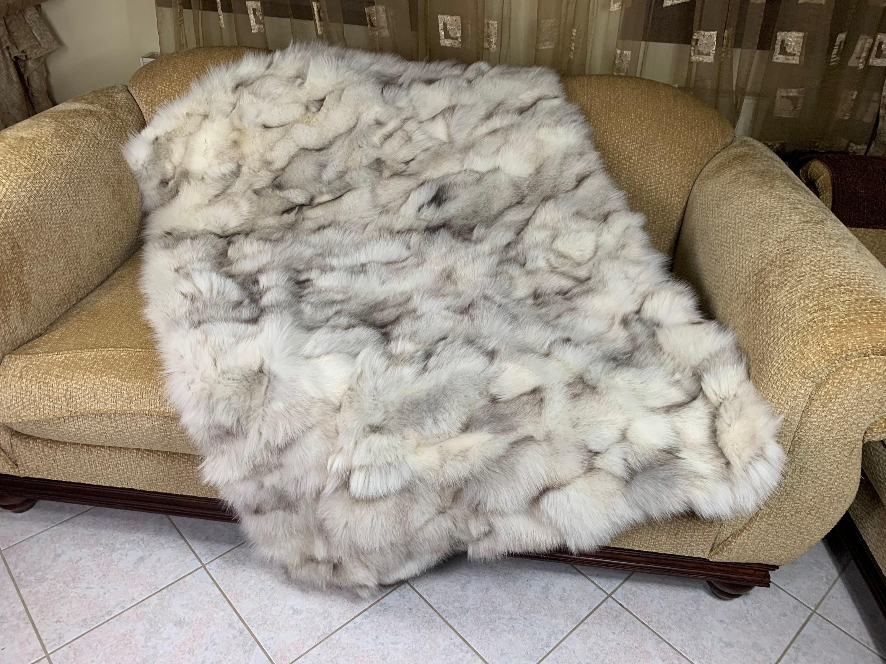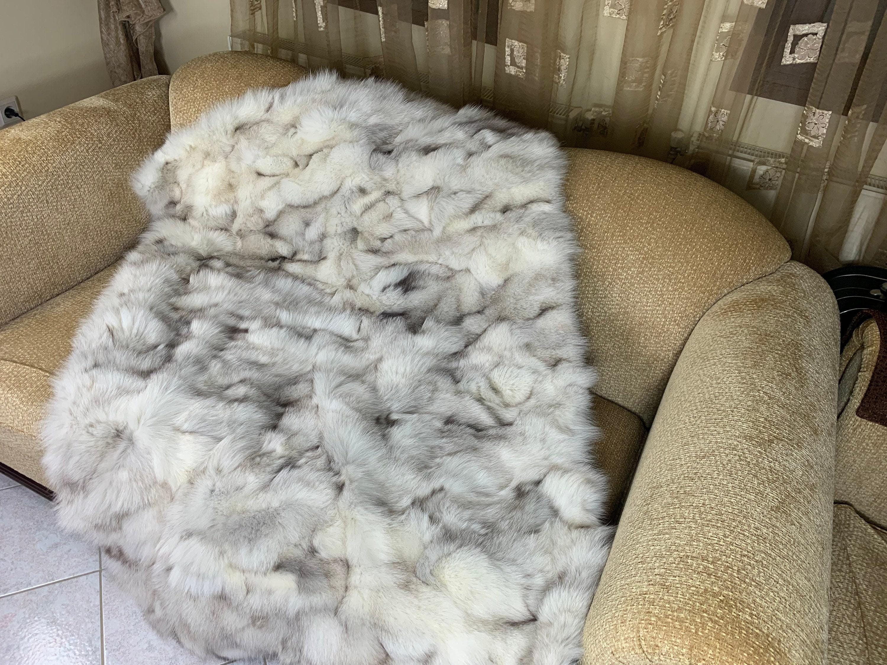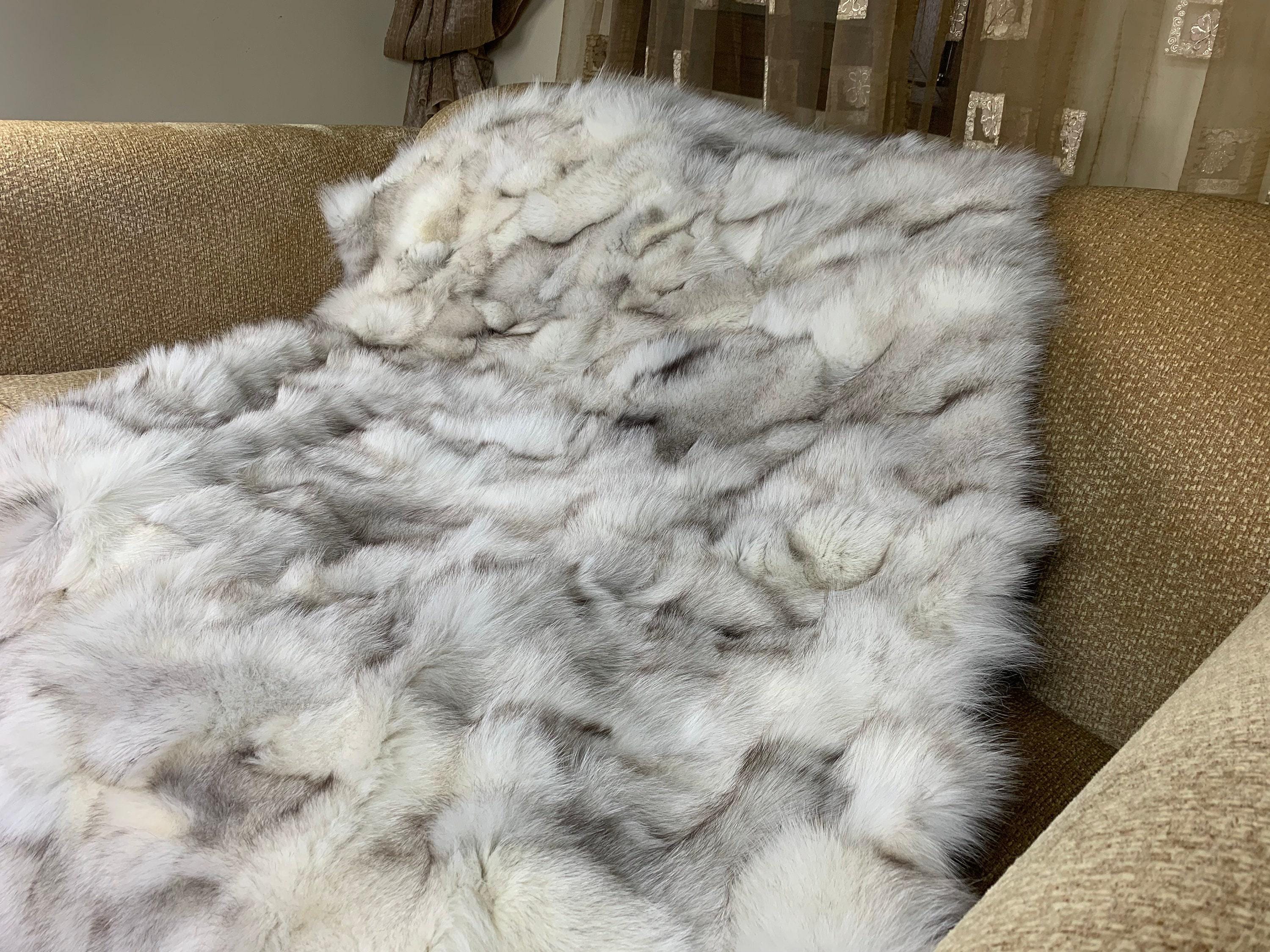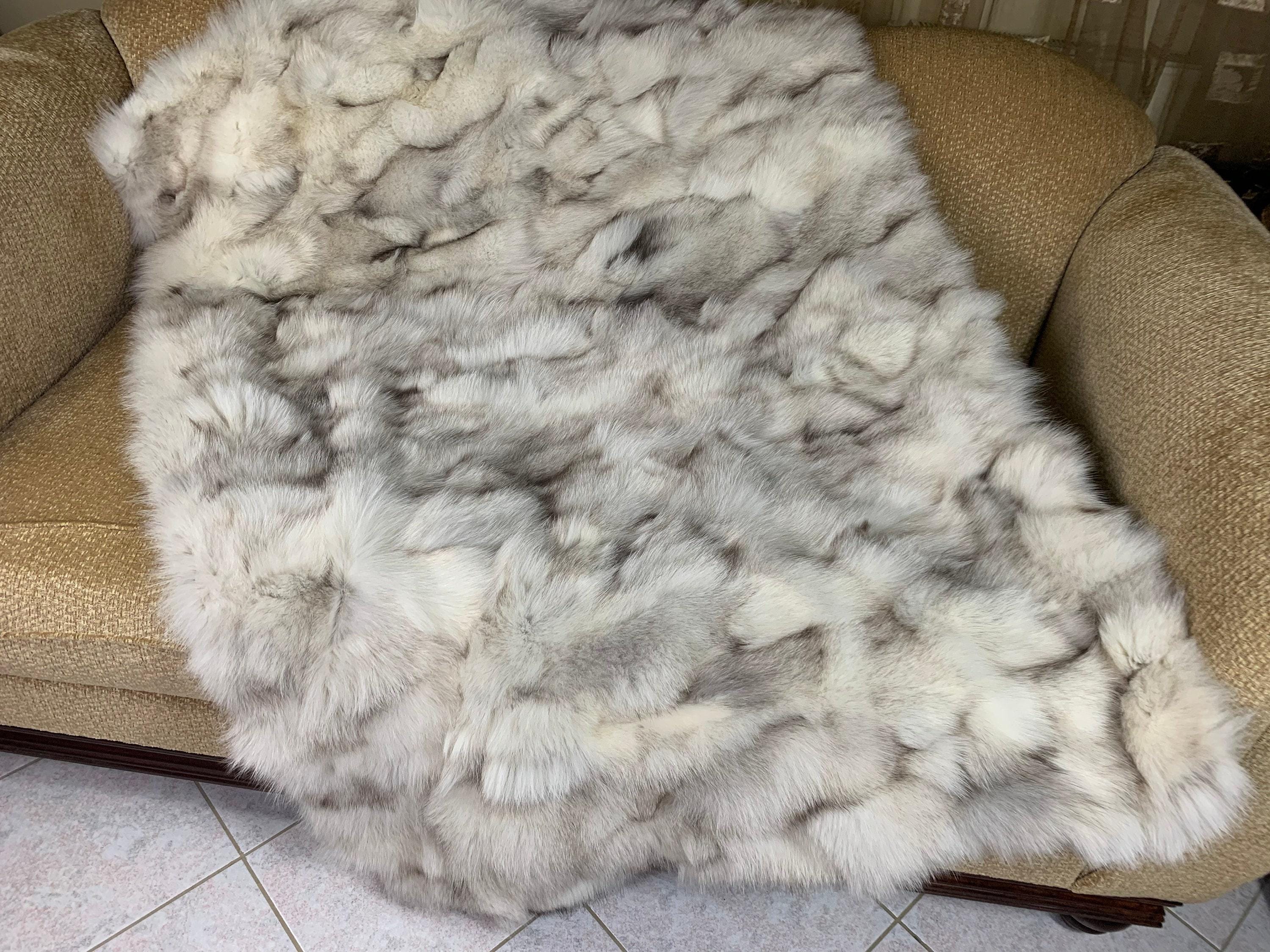 Lovingly crafted by hand, this silver real fox fur blanket throw was created with chilly days in mind.