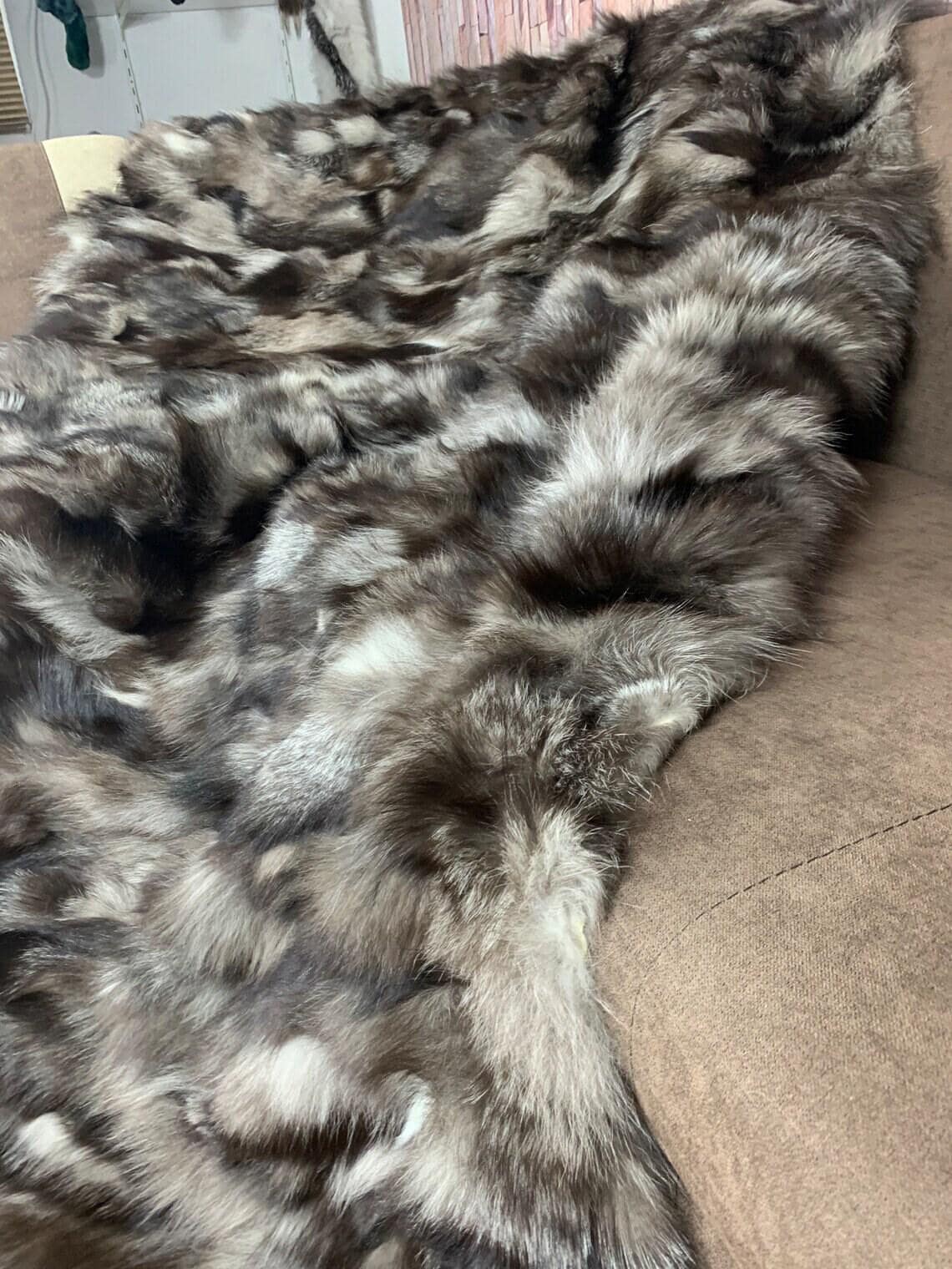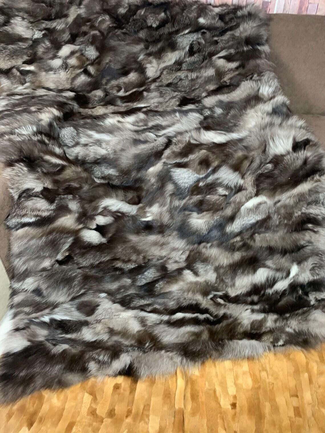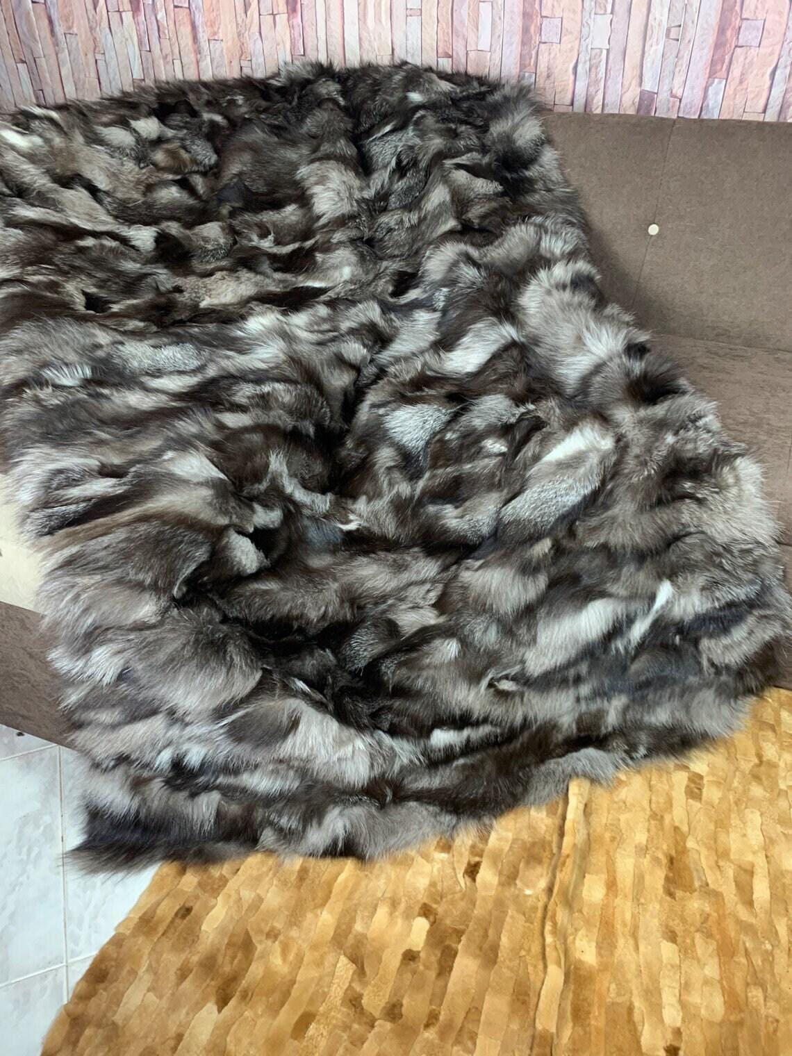 Lovingly crafted by hand, this silver real fox fur blanket throw was created with chilly days in mind.