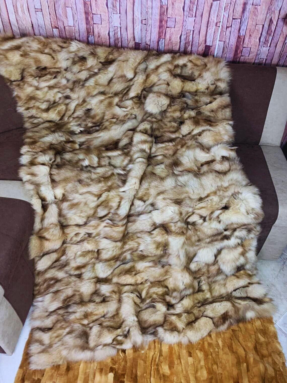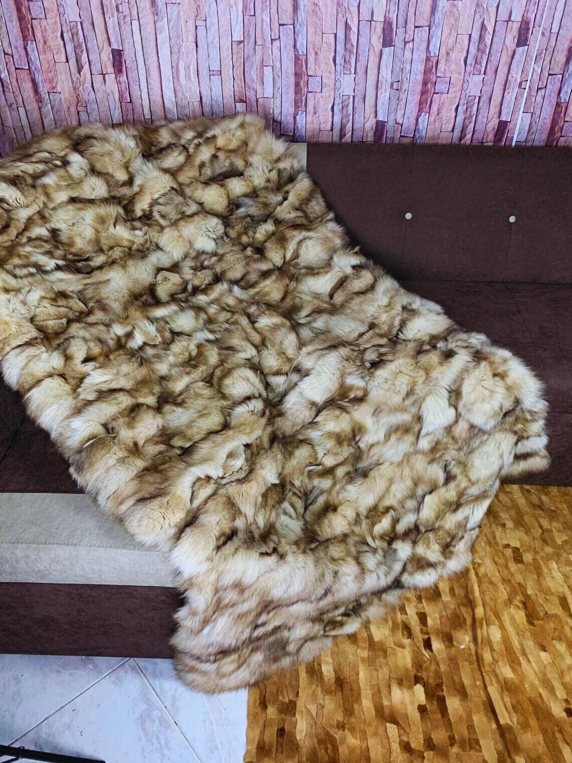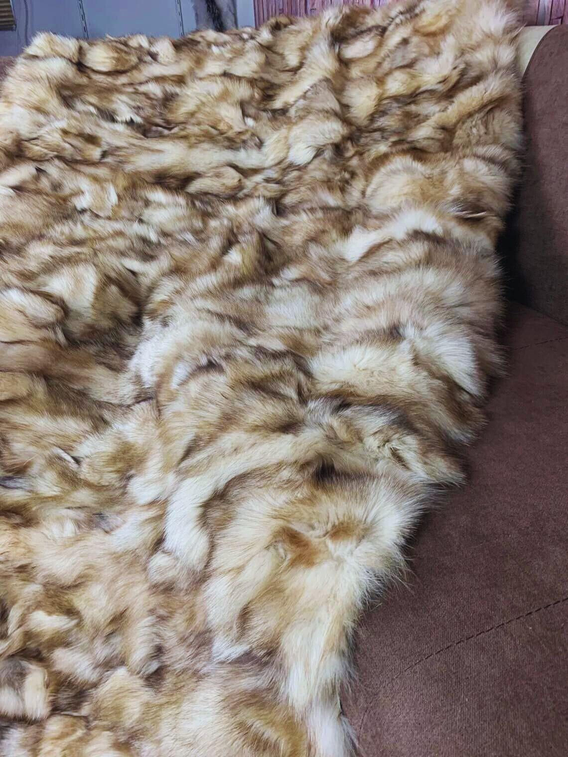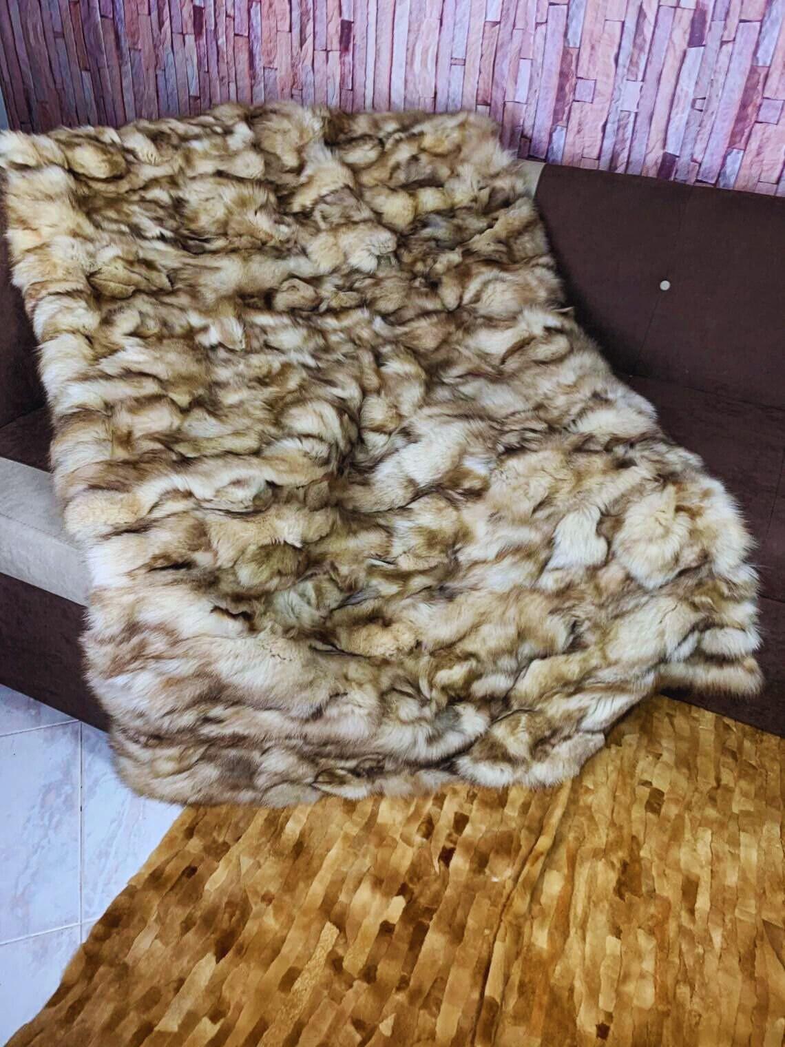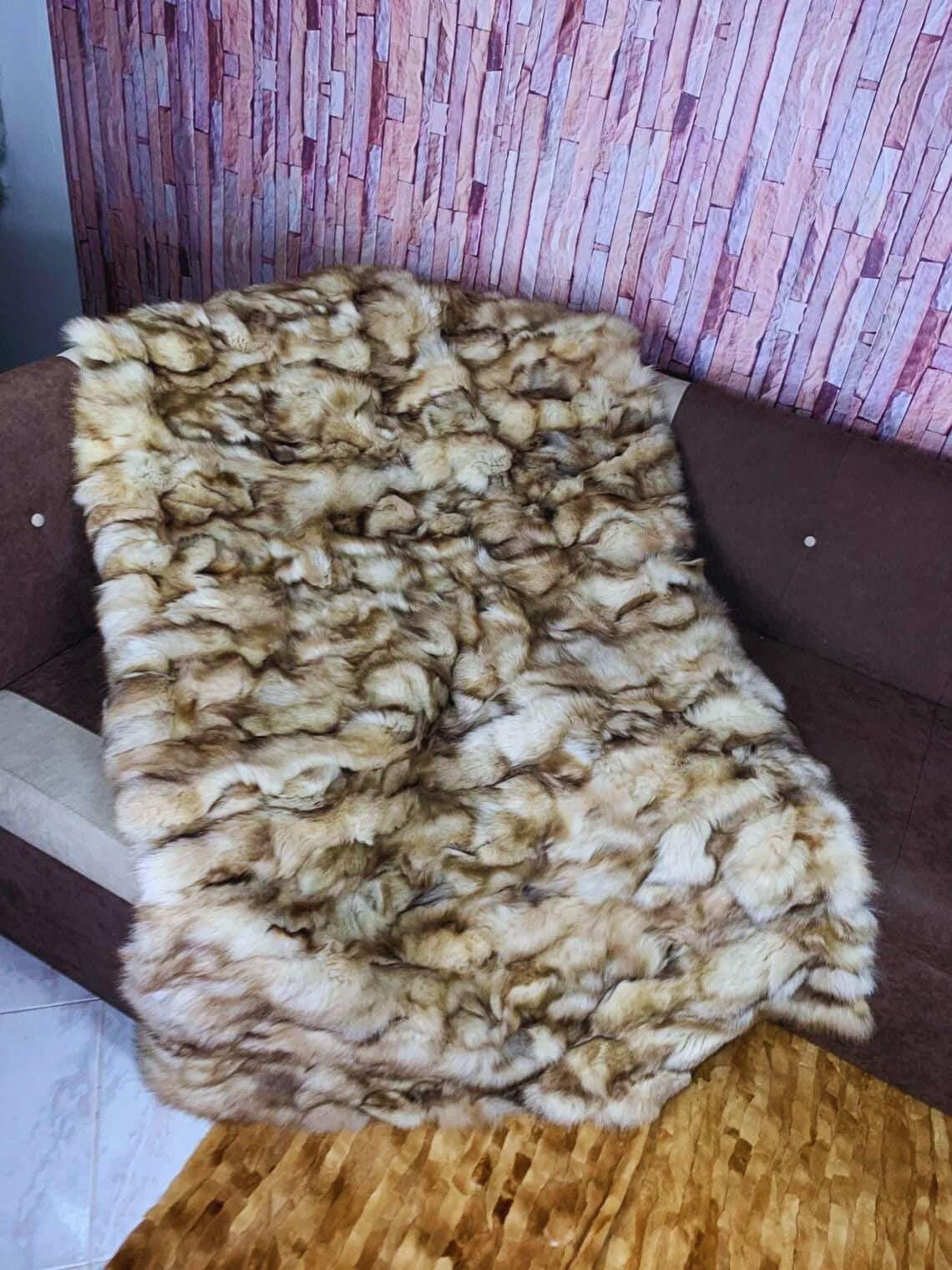 Handmade Beige Real Fox Fur Blanket that can be used as a throw as well. Perfect for Bedspread or Sofa Cover.