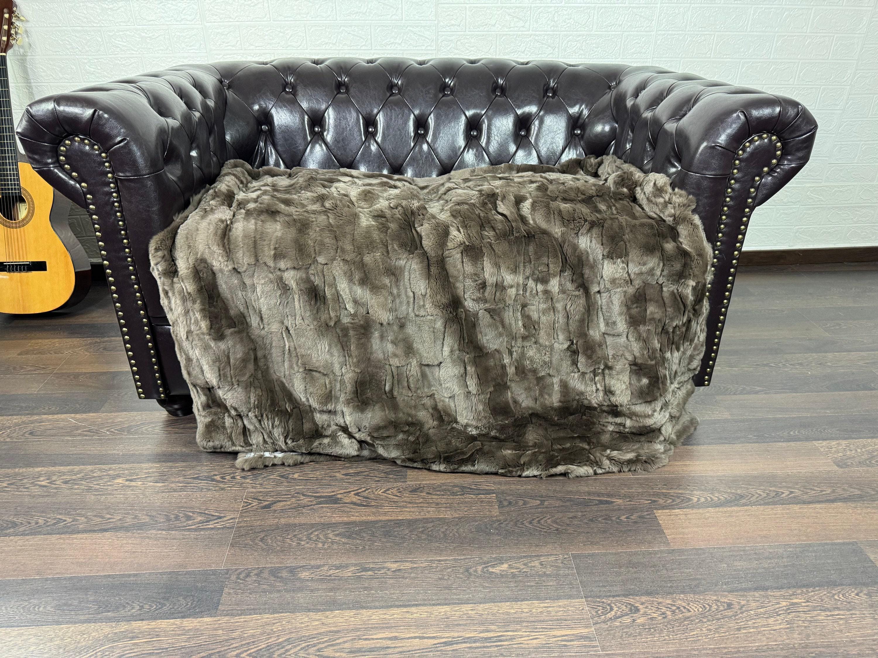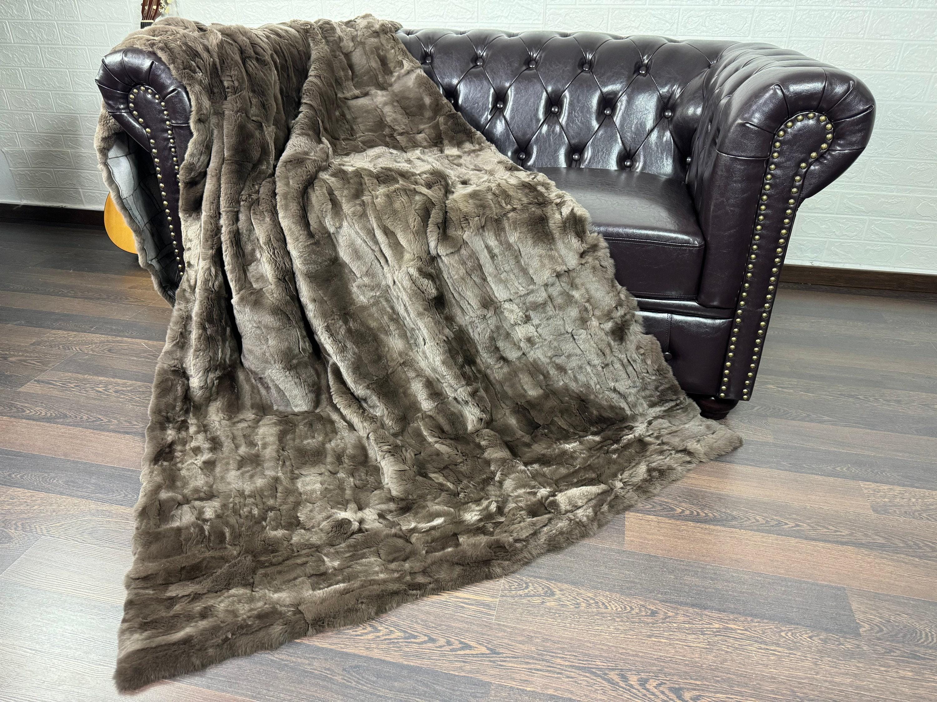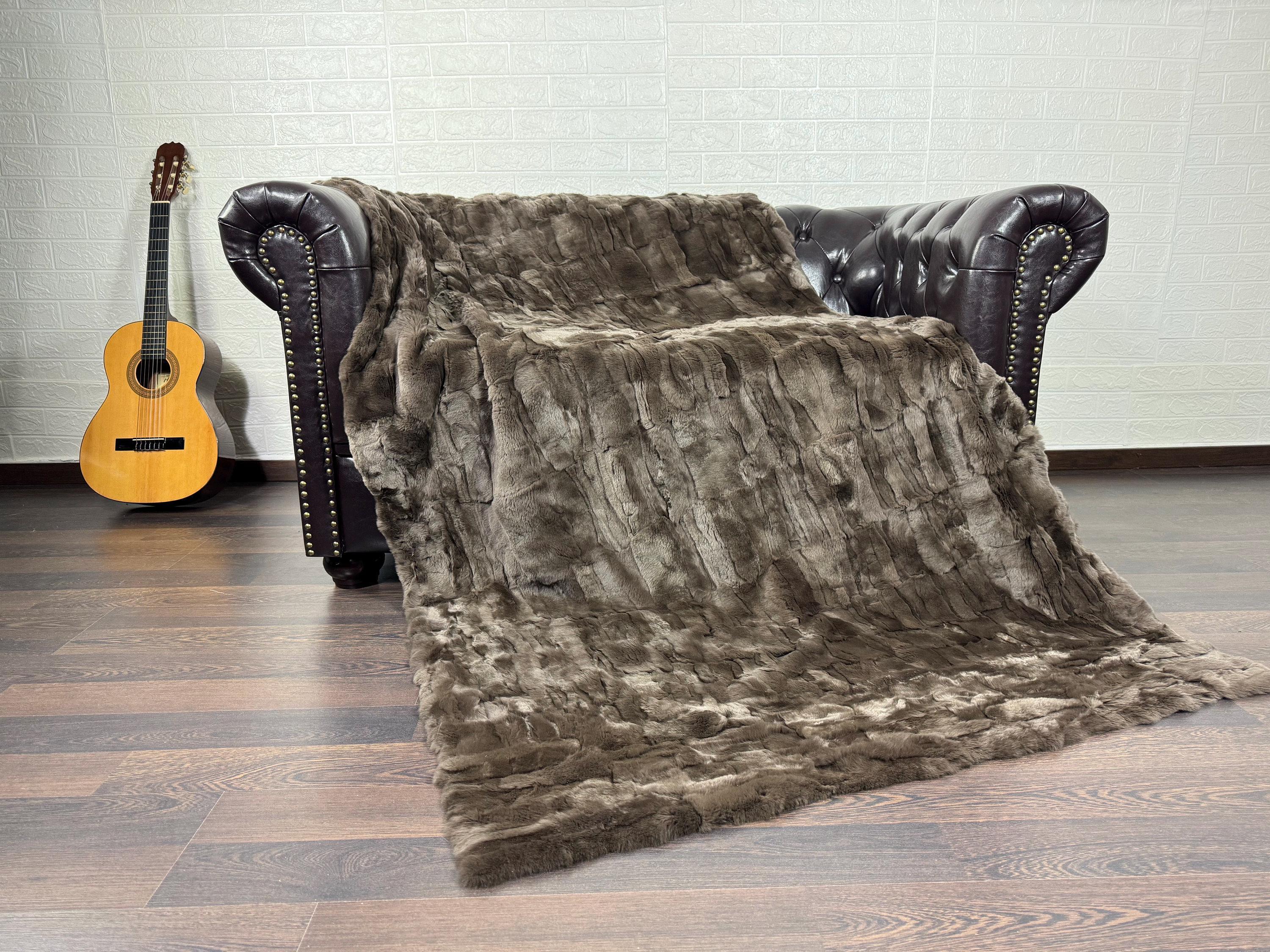 ● 1x Genuine Rex Rabbit Fur Blanket In Brown Colour