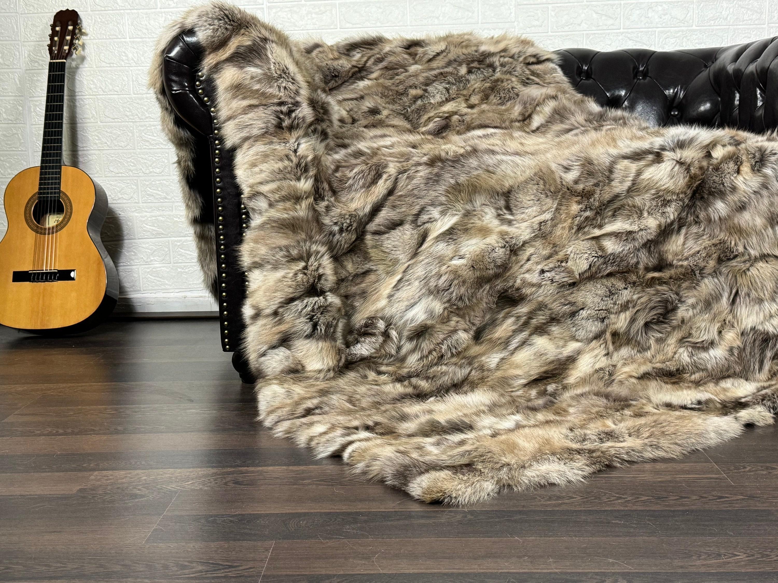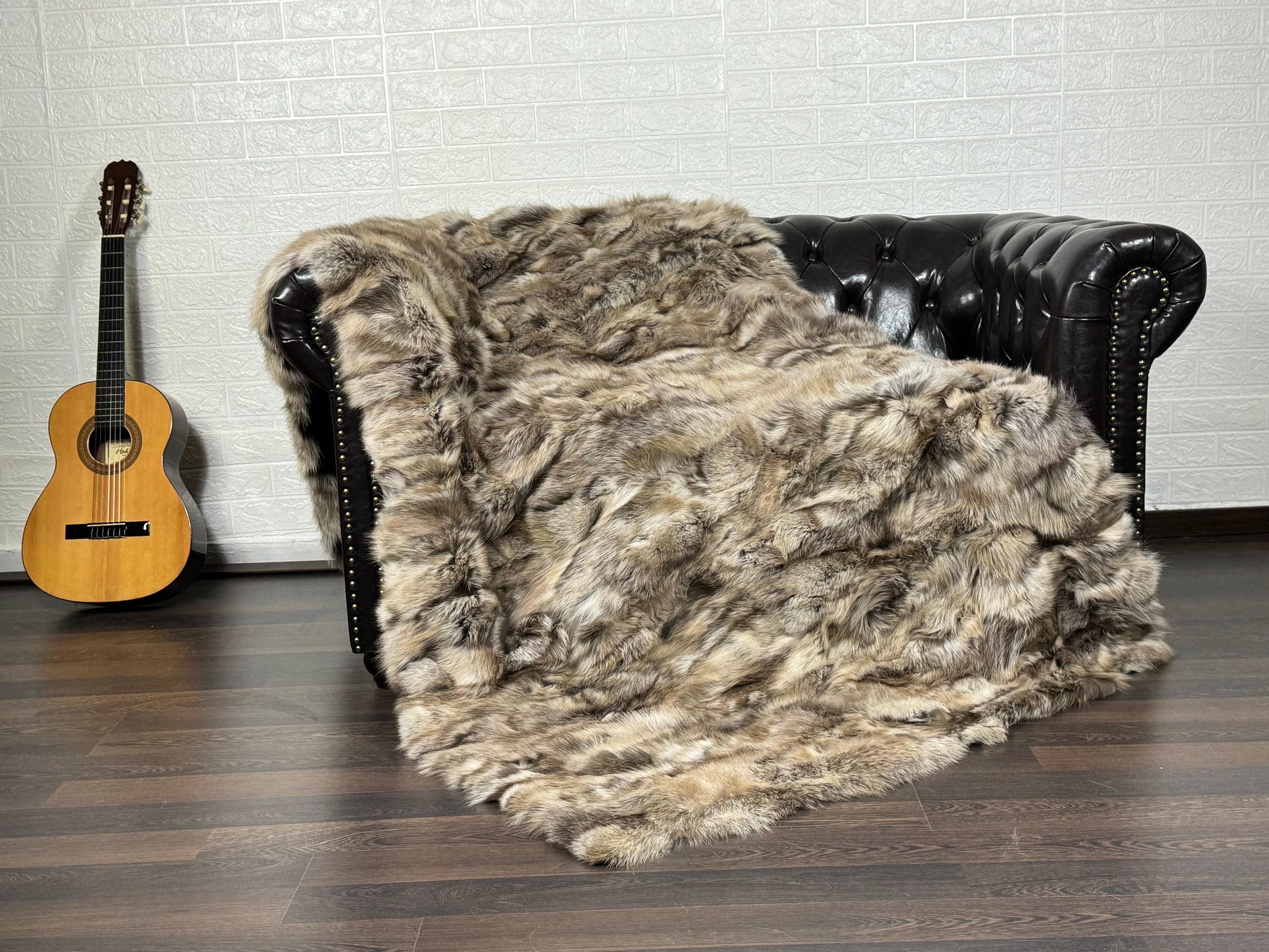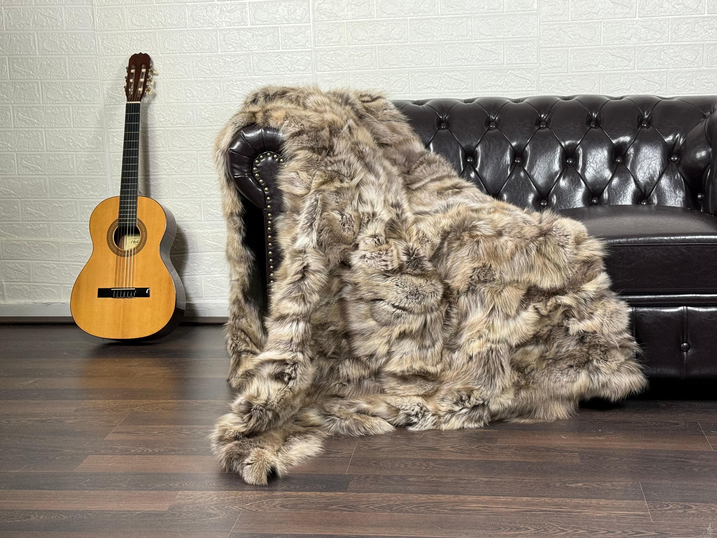Lovingly crafted by hand, this silver real fox fur blanket throw was created with chilly days in mind.