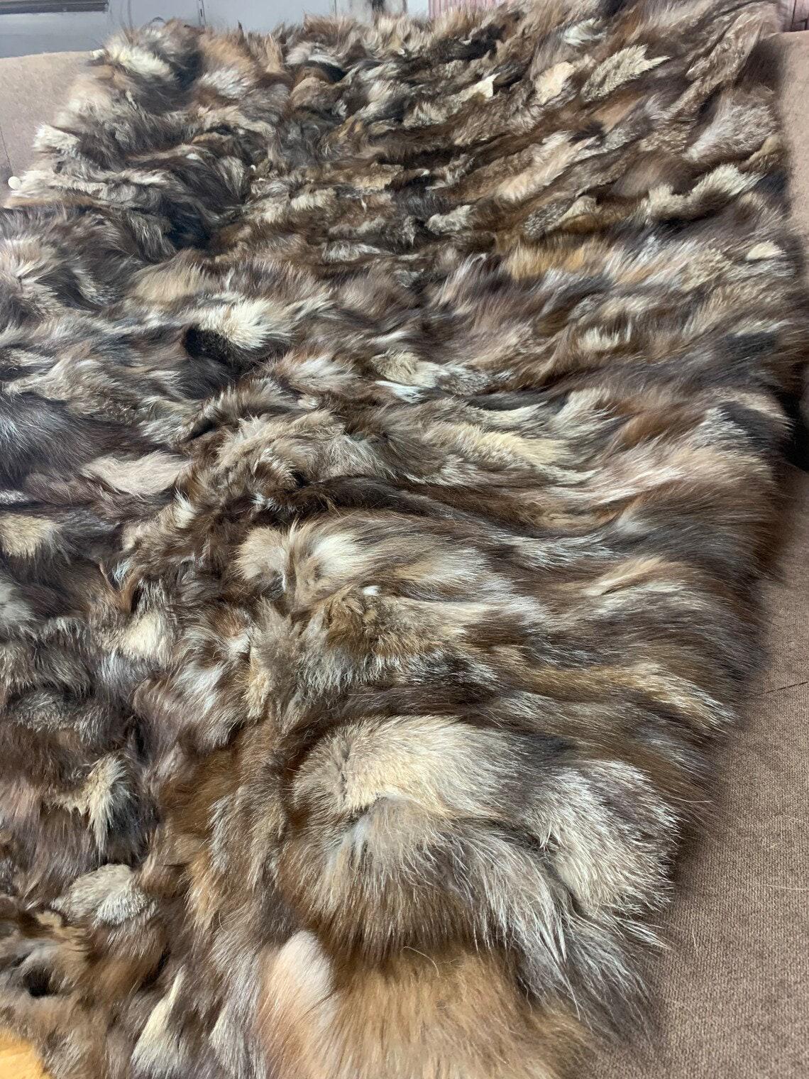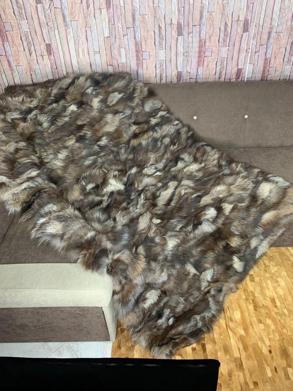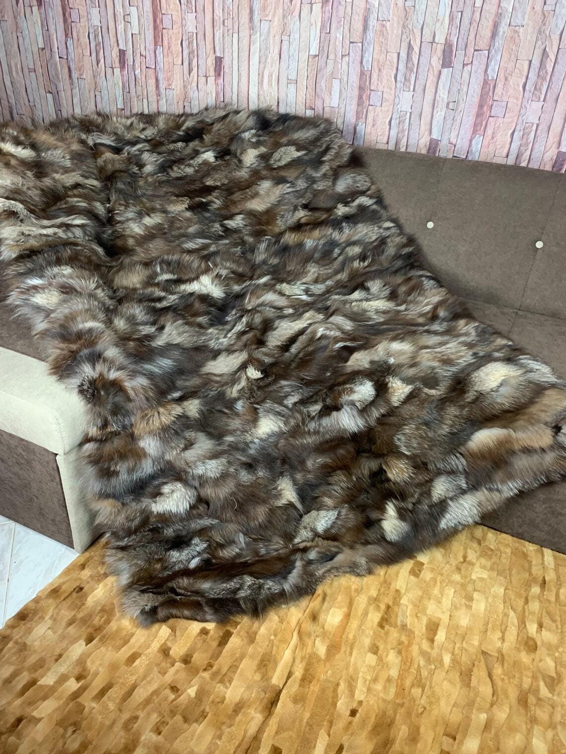 Lovingly crafted by hand, this silver real fox fur blanket throw was created with chilly days in mind.