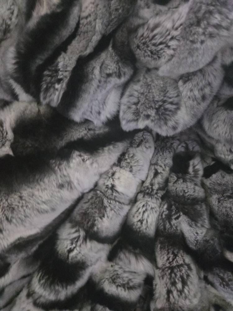 ● 1x Genuine Rex Rabbit Fur Blanket In Chinchilla Color