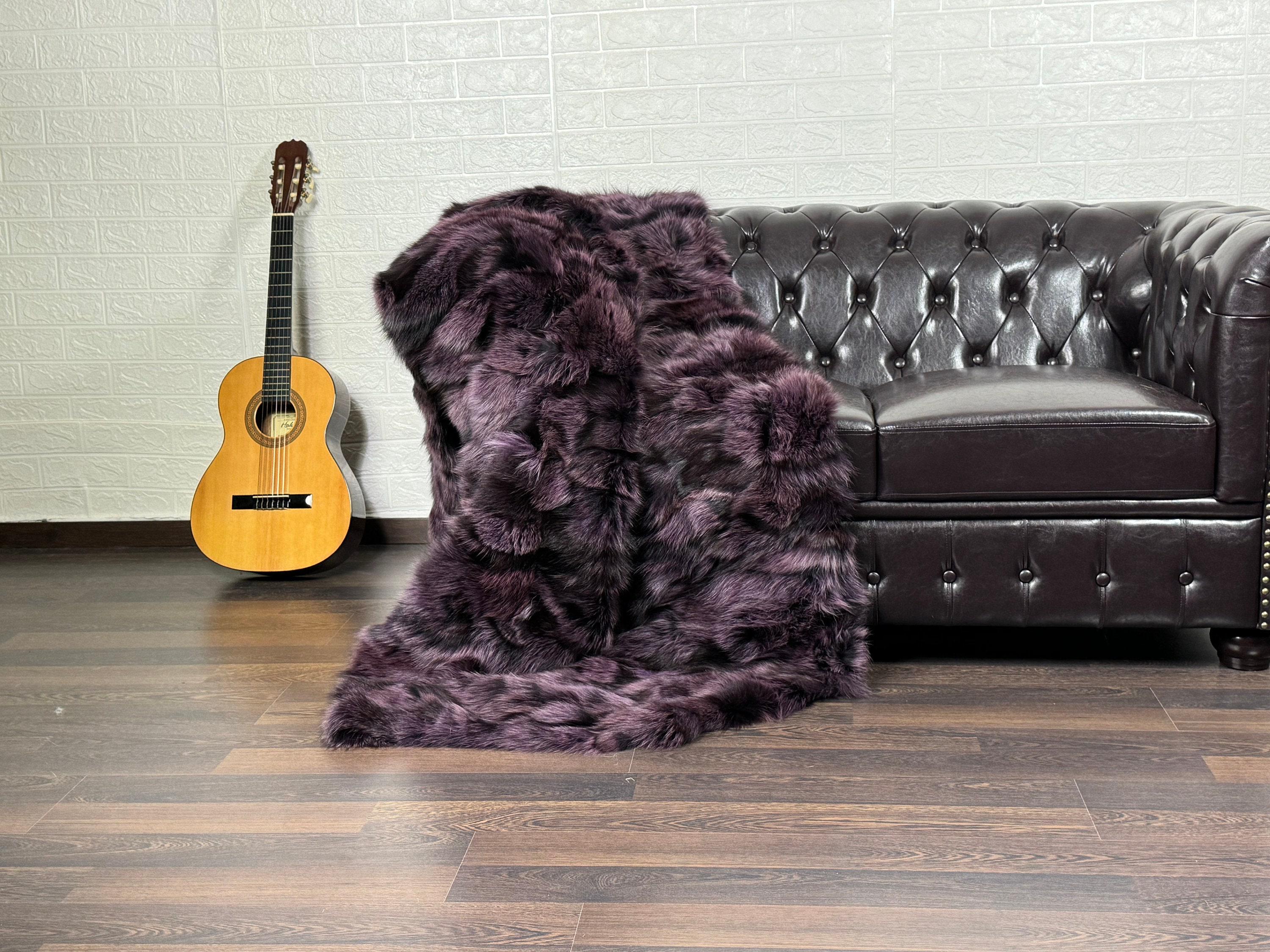 ● 1x Genuine Fox Fur Blanket In Dyed Purple Black Colour
