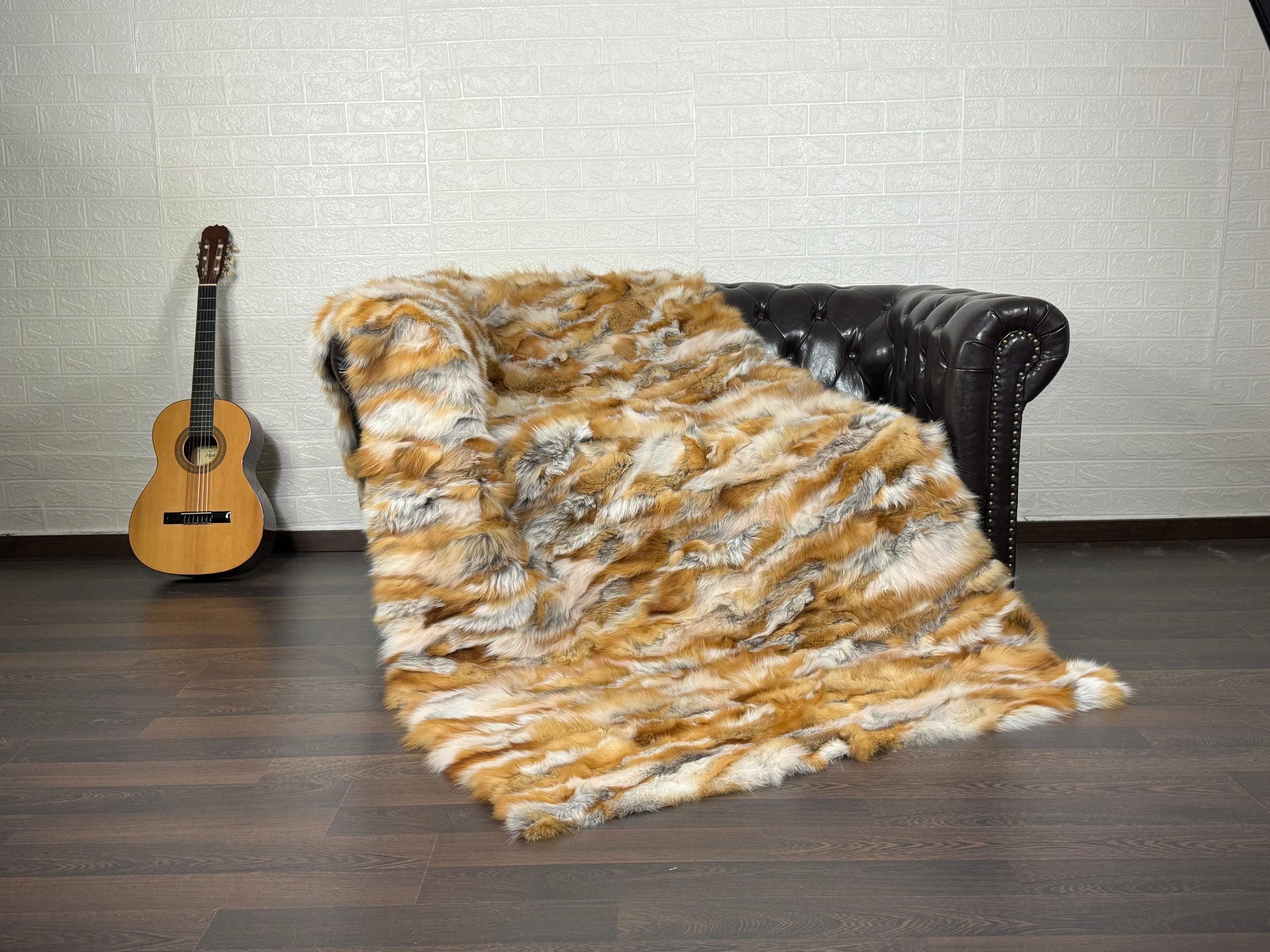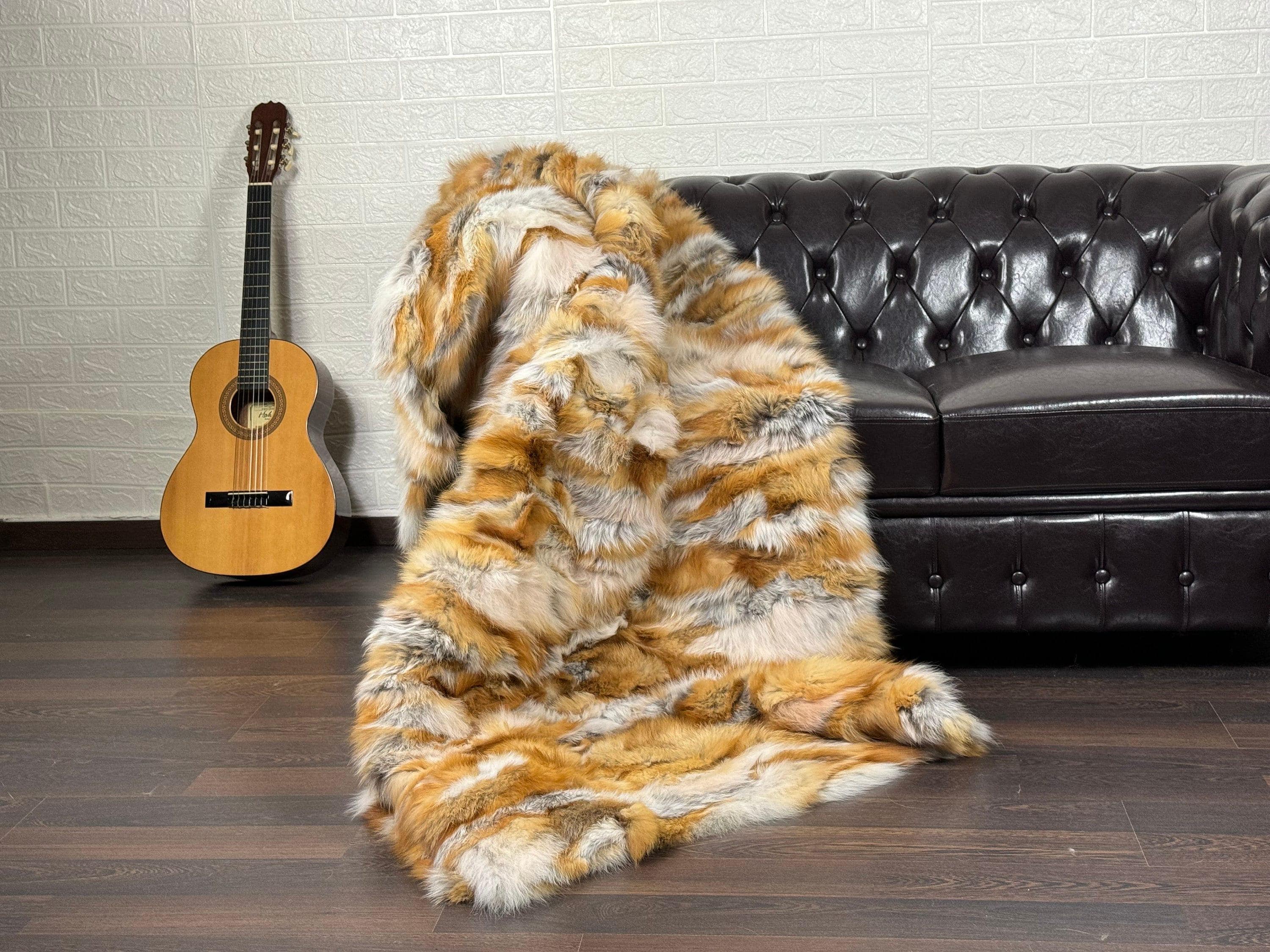 ● 1x Genuine Fox Fur Blanket In Red Canadian Natural color