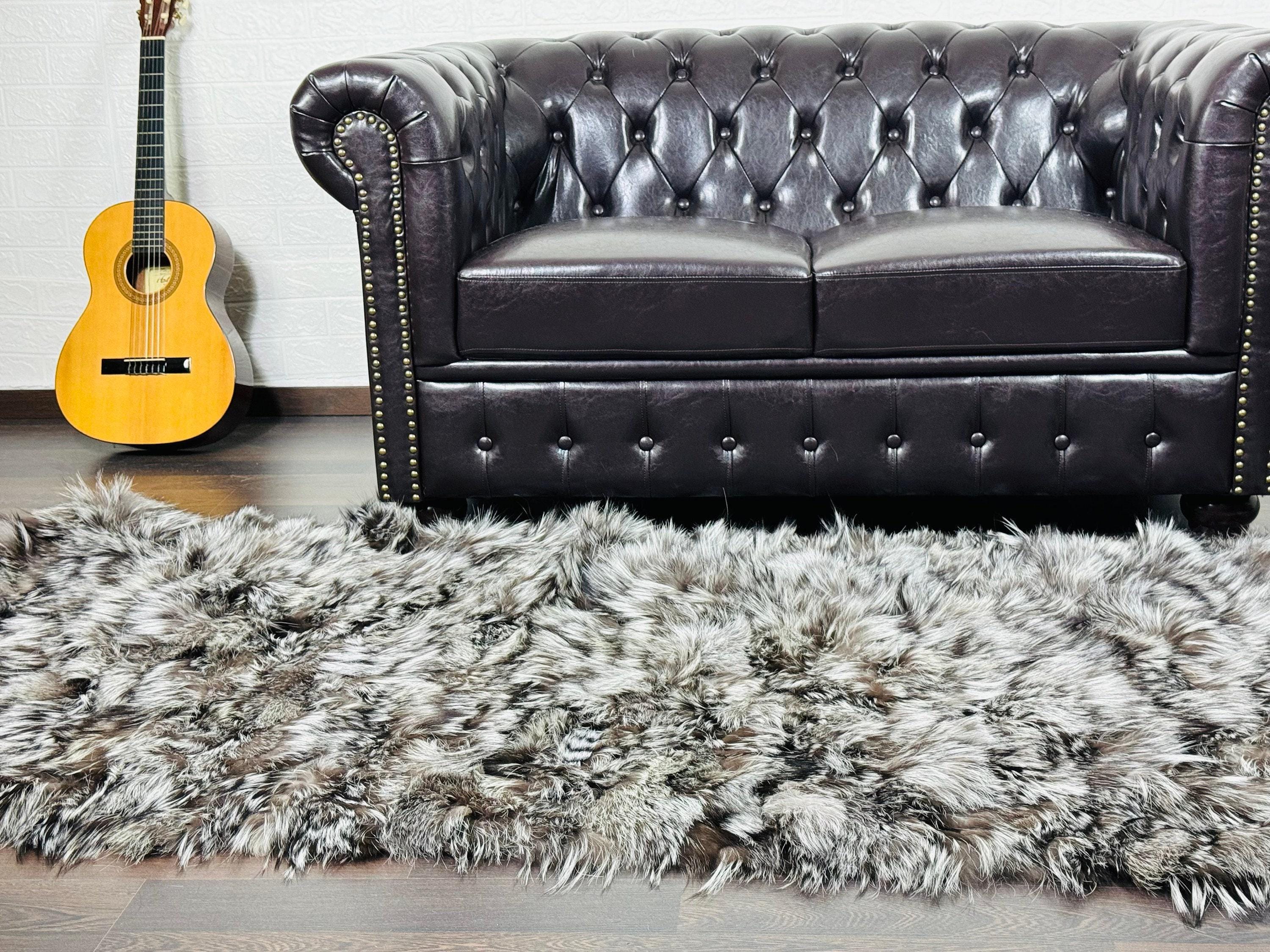 Handmade Real Silver Fox Fur Throw Blanket Throw. Perfect for Bedspread or Sofa Cover.